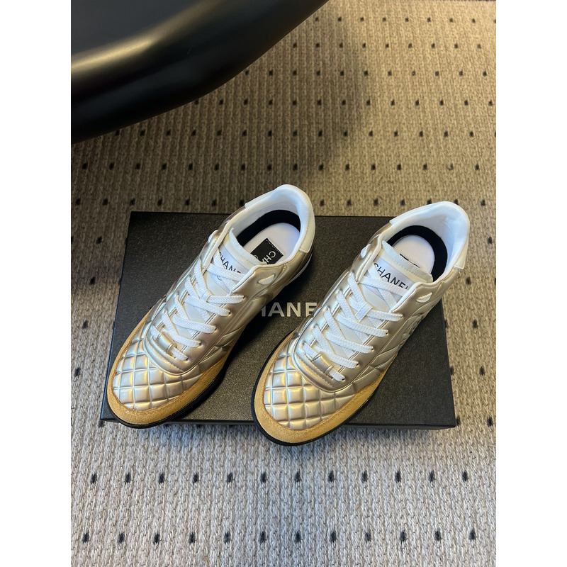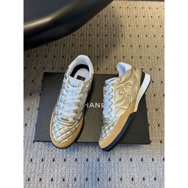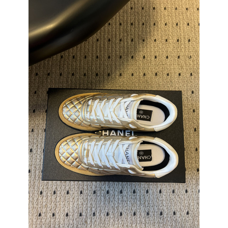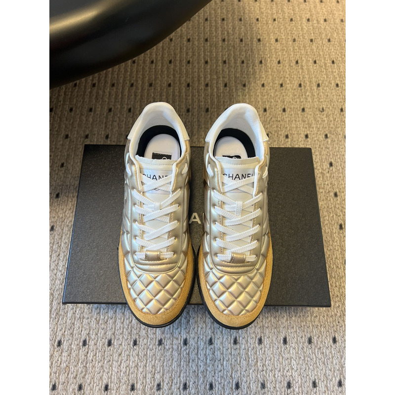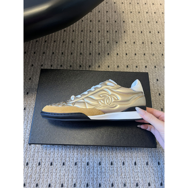 Chanel Trainers Lambskin & Suede Gold & Beige