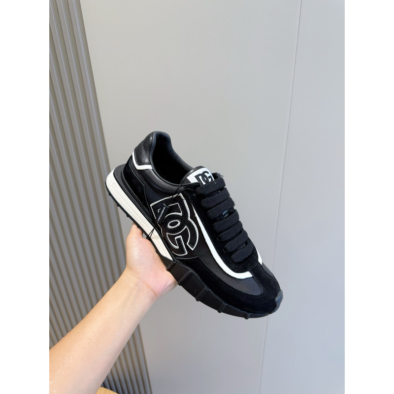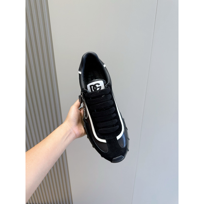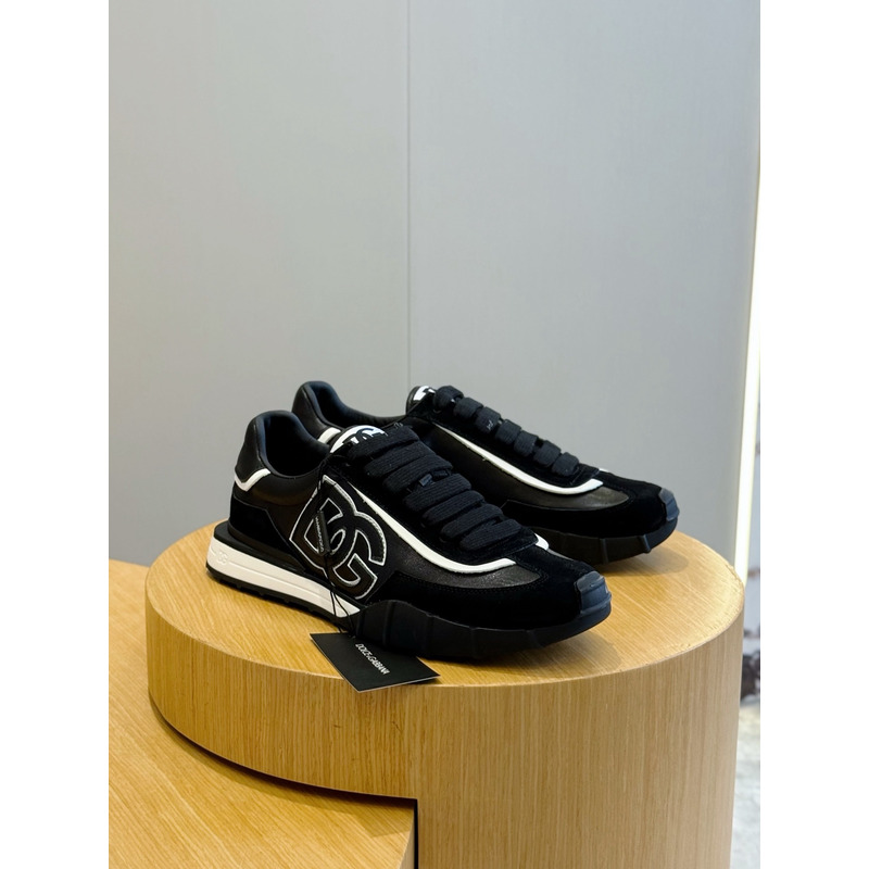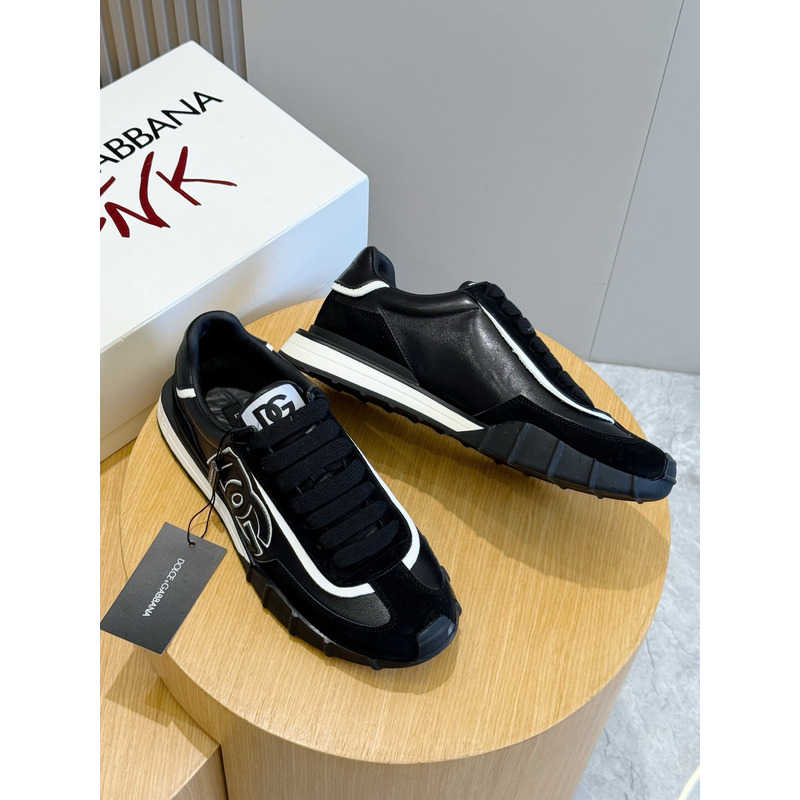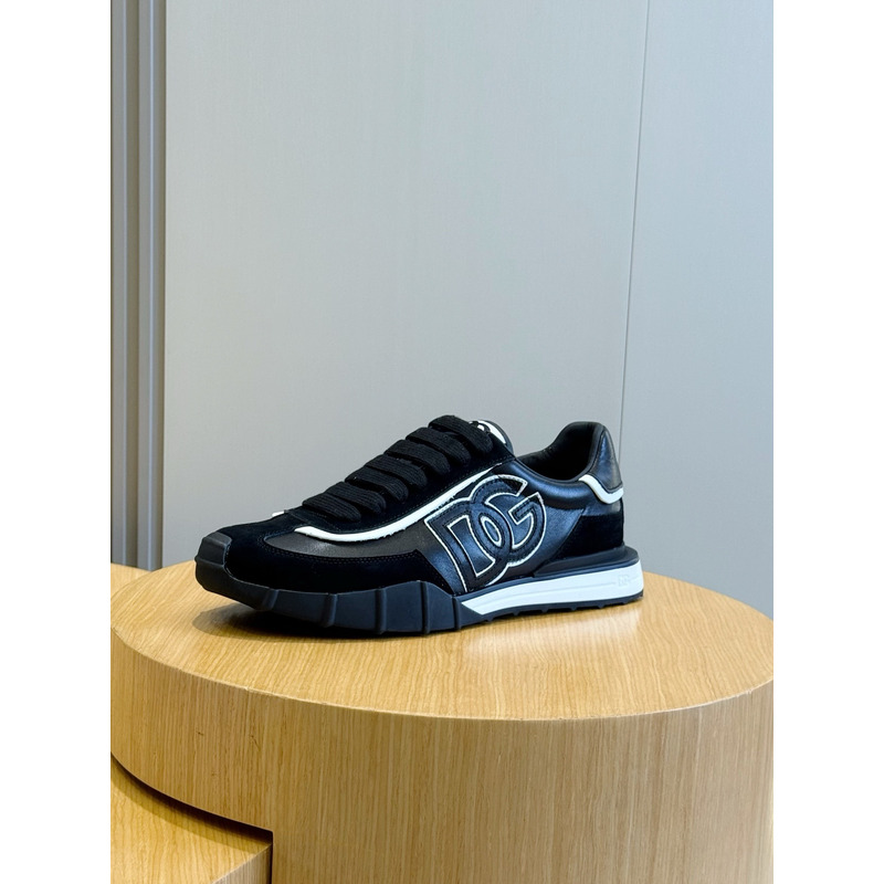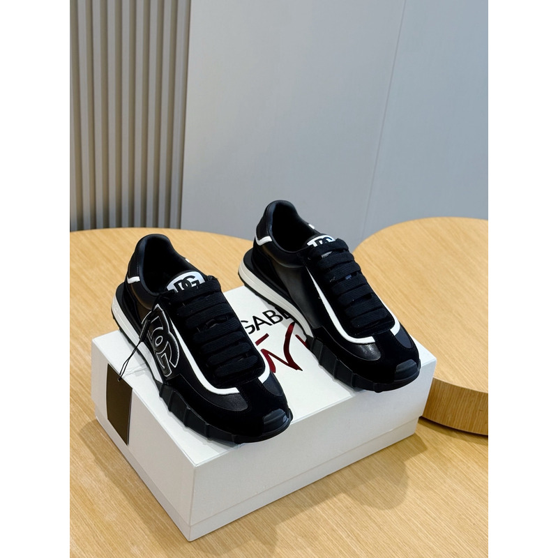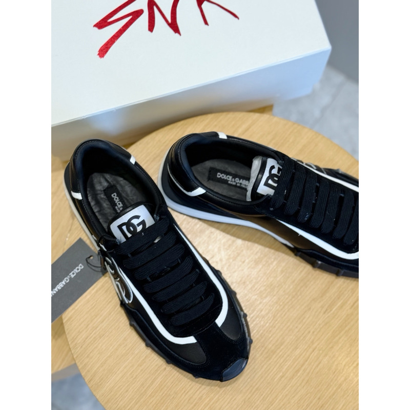 Dolce & Gabbana Black Leather With White Accents Sneakers