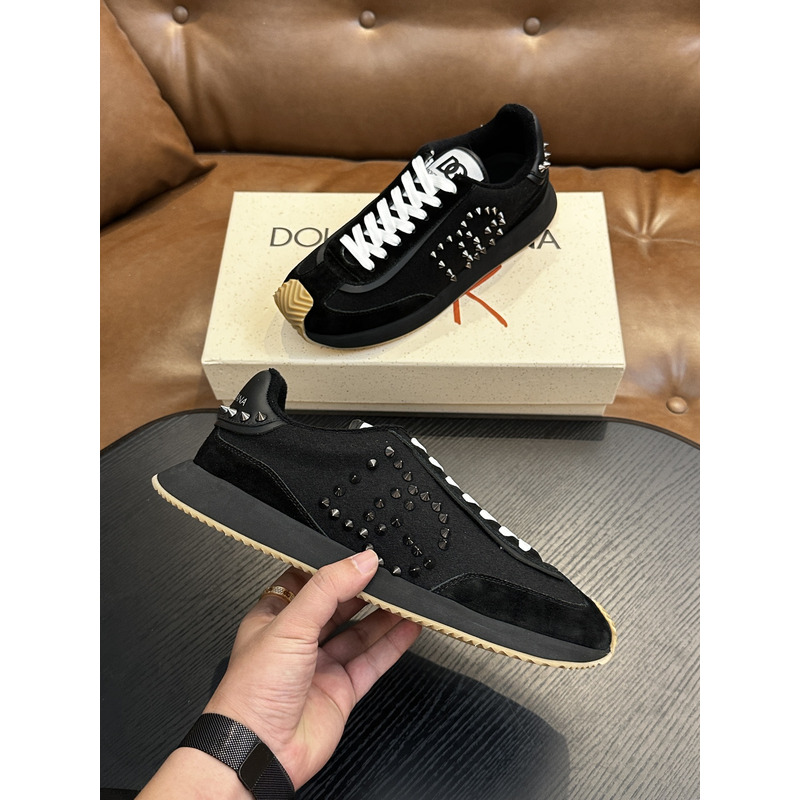 Dolce & Gabbana Running Sneakers In Black Suede With Stud Embellishments