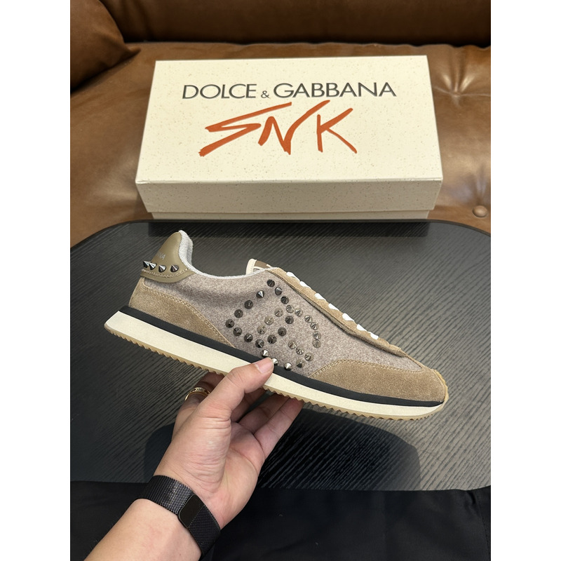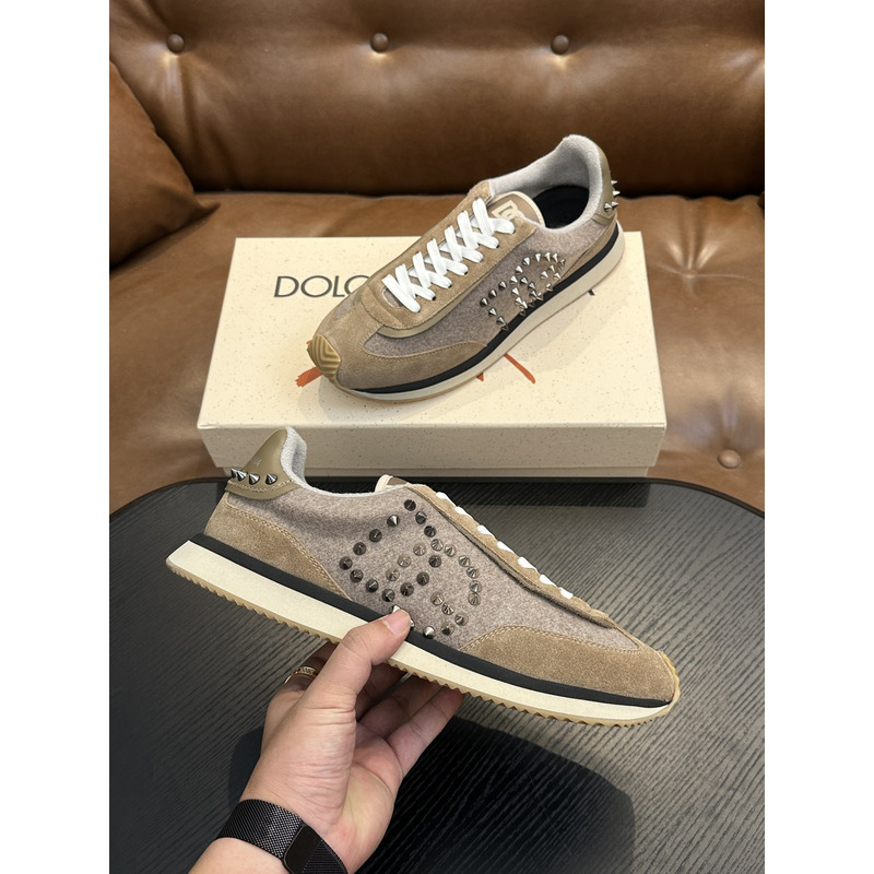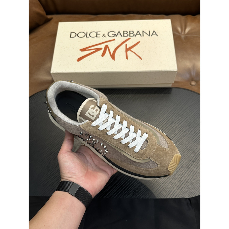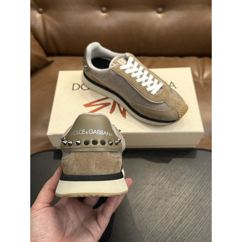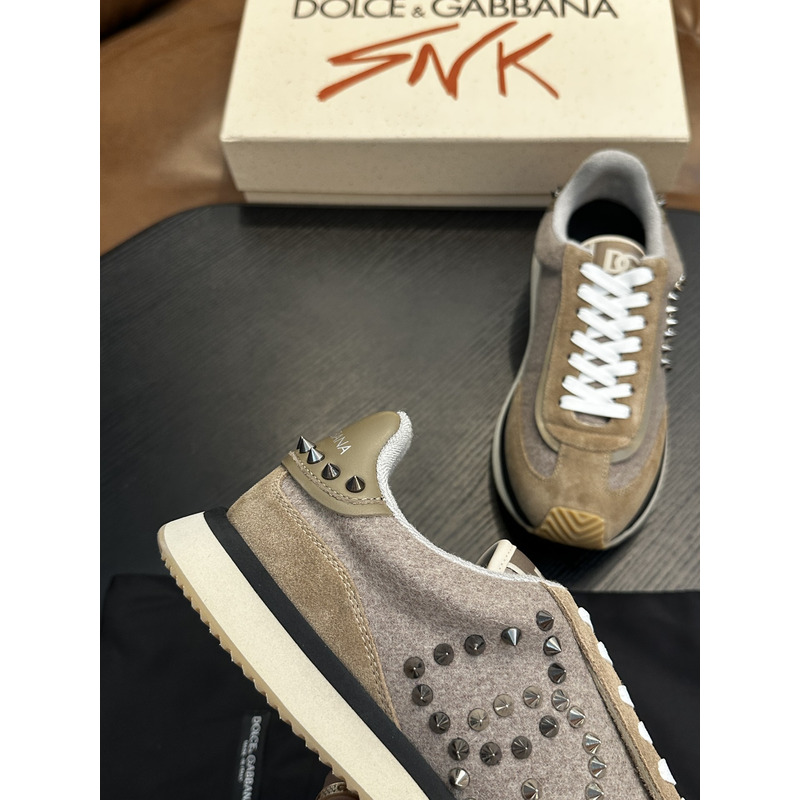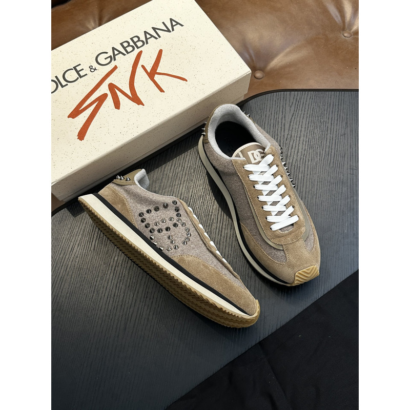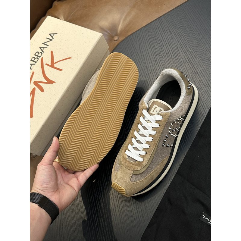 Dolce & Gabbana Running Sneakers In Brown Suede With Stud Embellishments