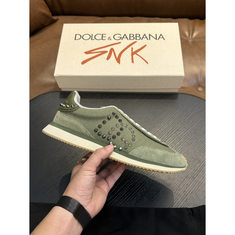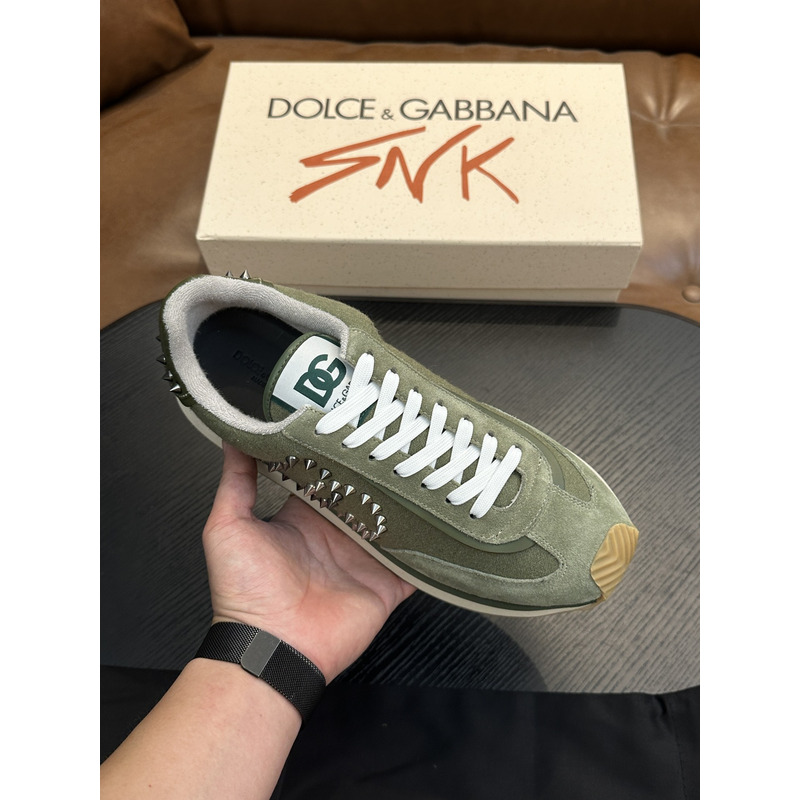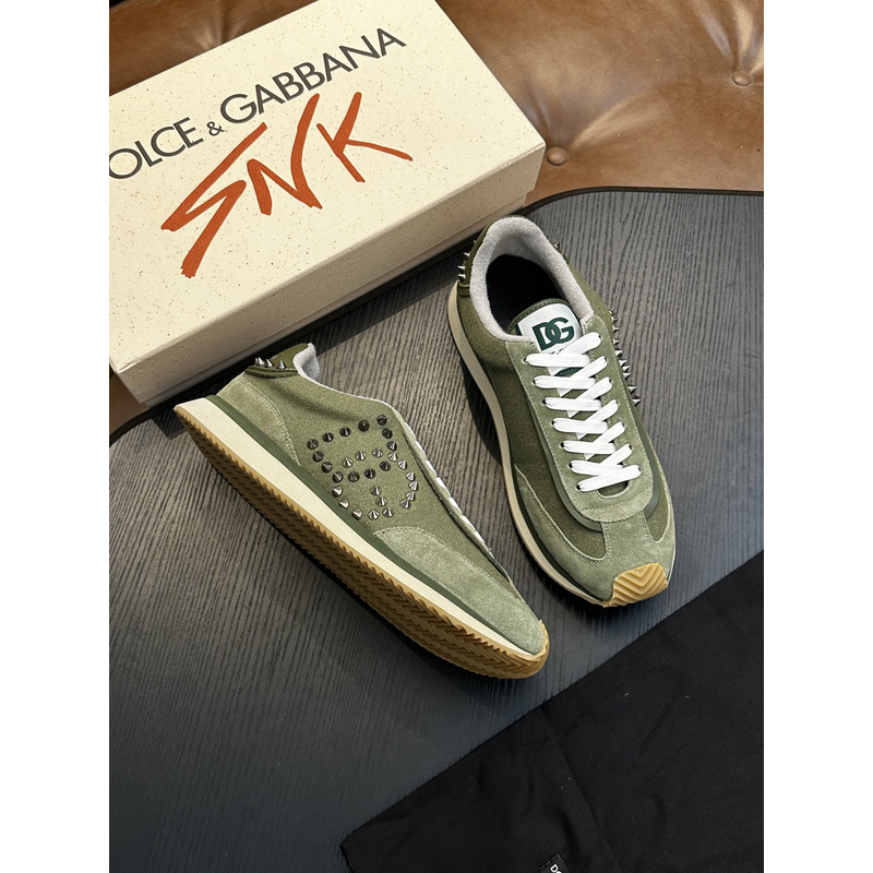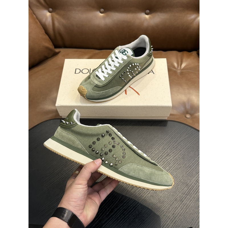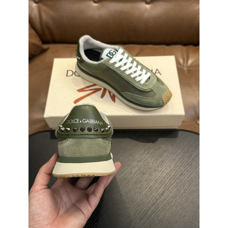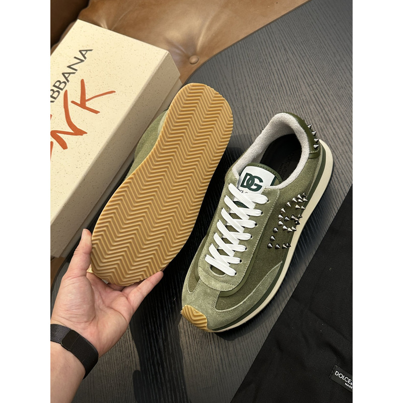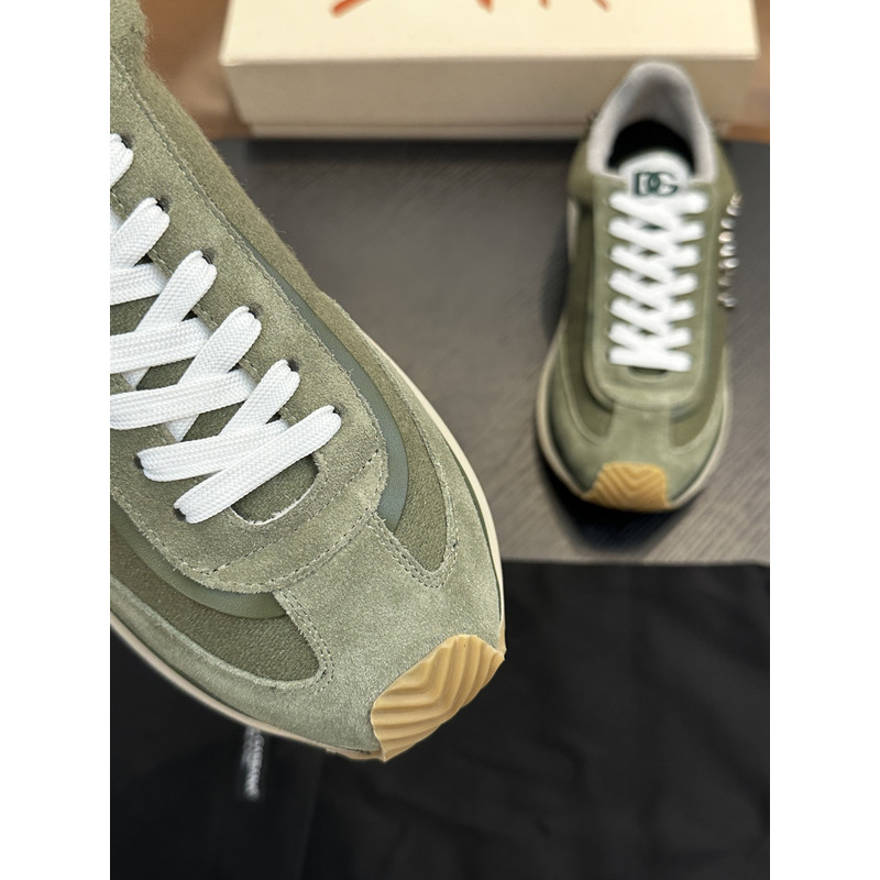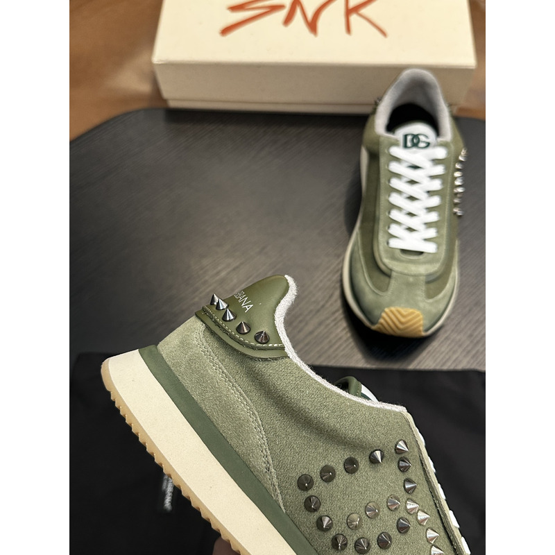 Dolce & Gabbana Running Sneakers In Green Suede With Stud Embellishments