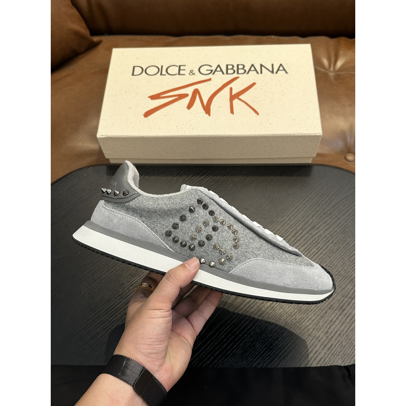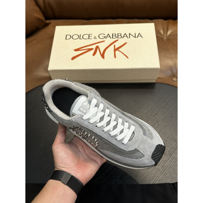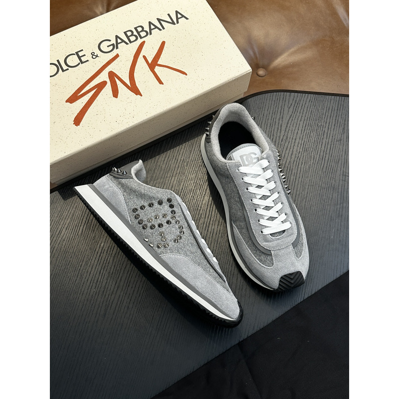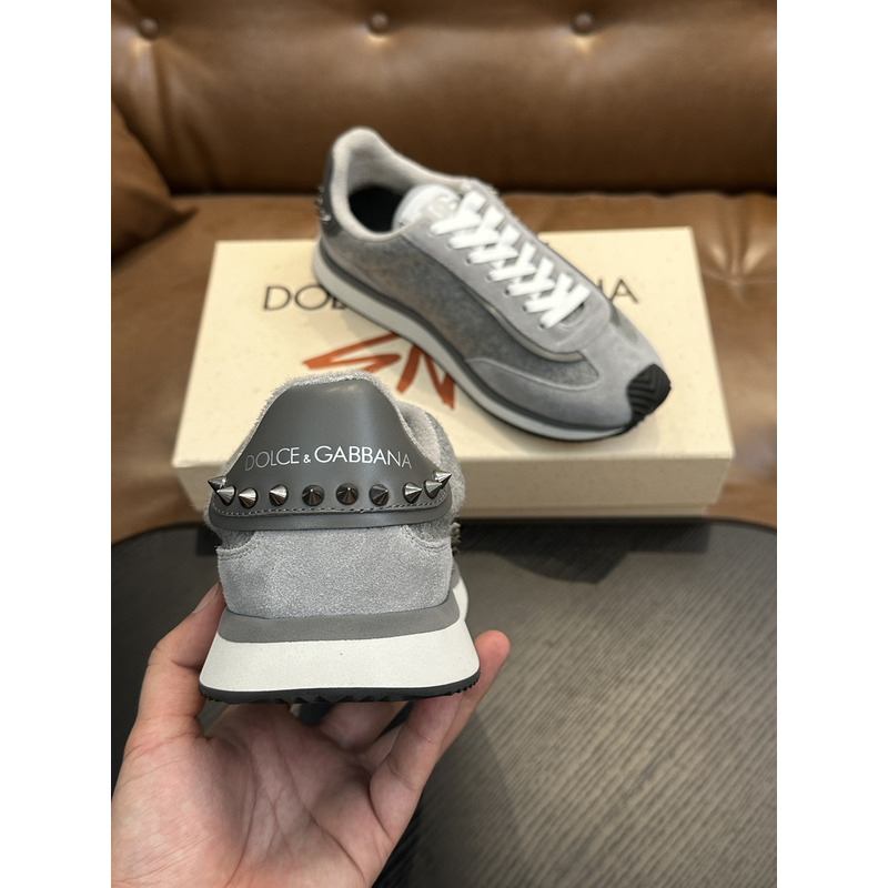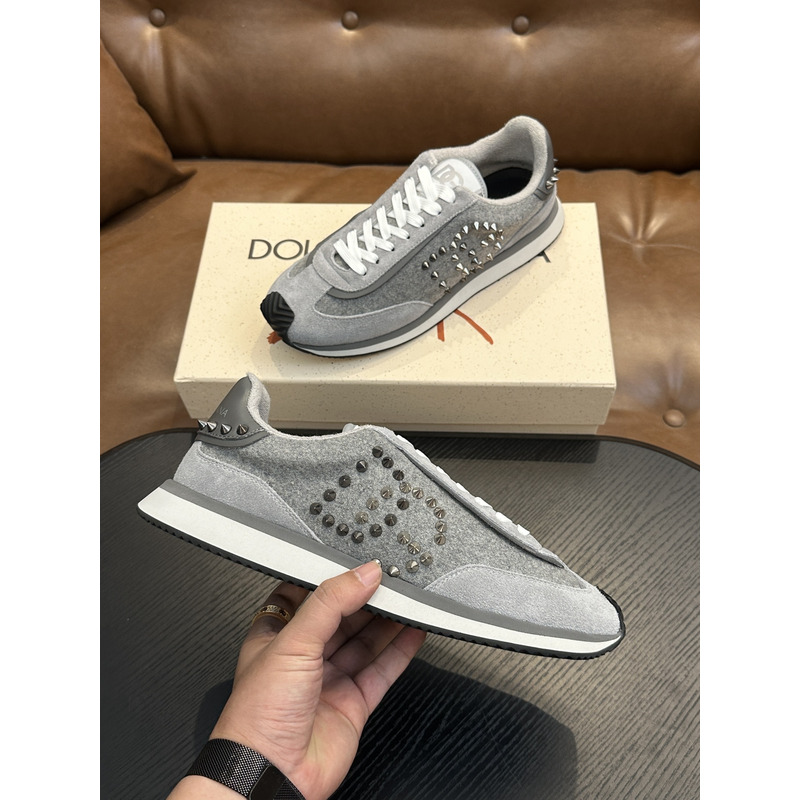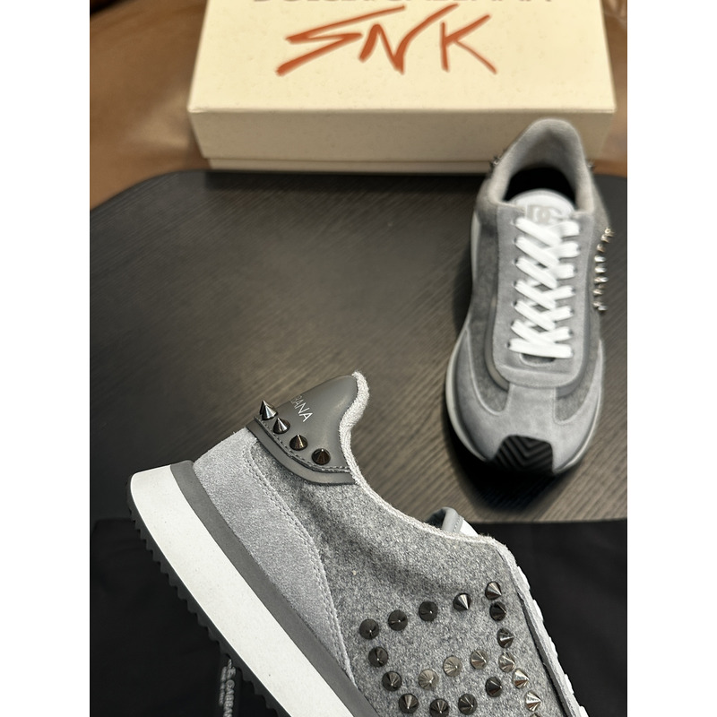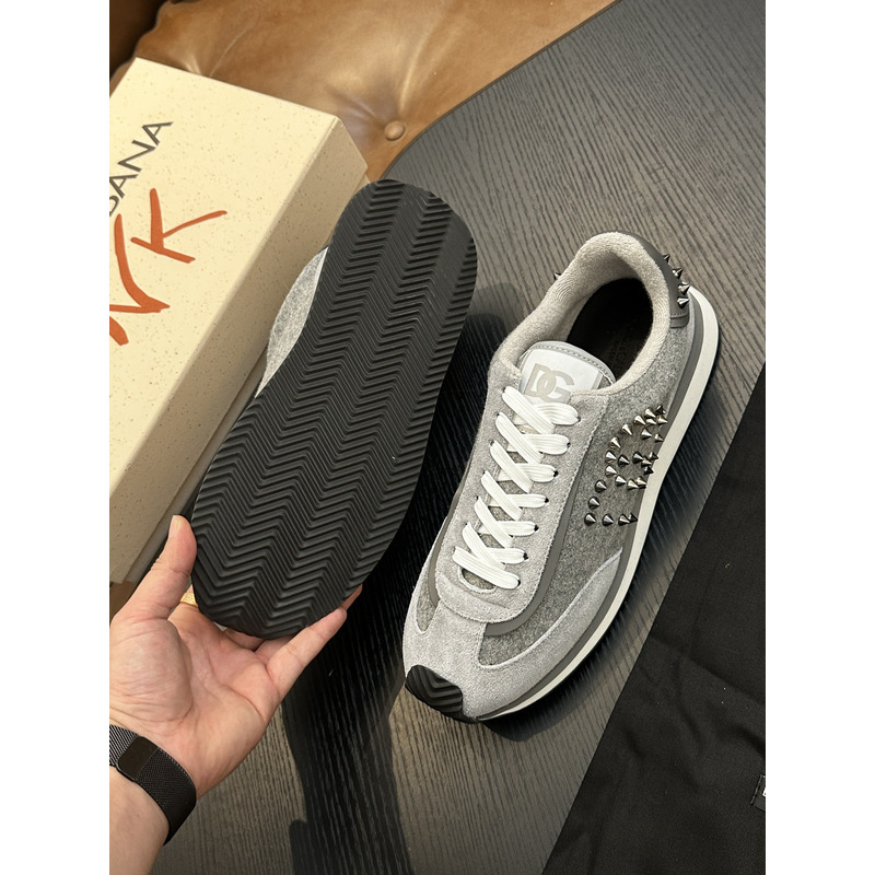 Dolce & Gabbana Running Sneakers In Grey Suede With Stud Embellishments