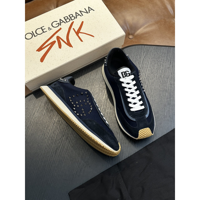 Dolce & Gabbana Running Sneakers In Suede With Stud Embellishments Black