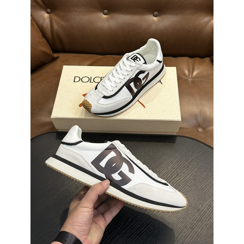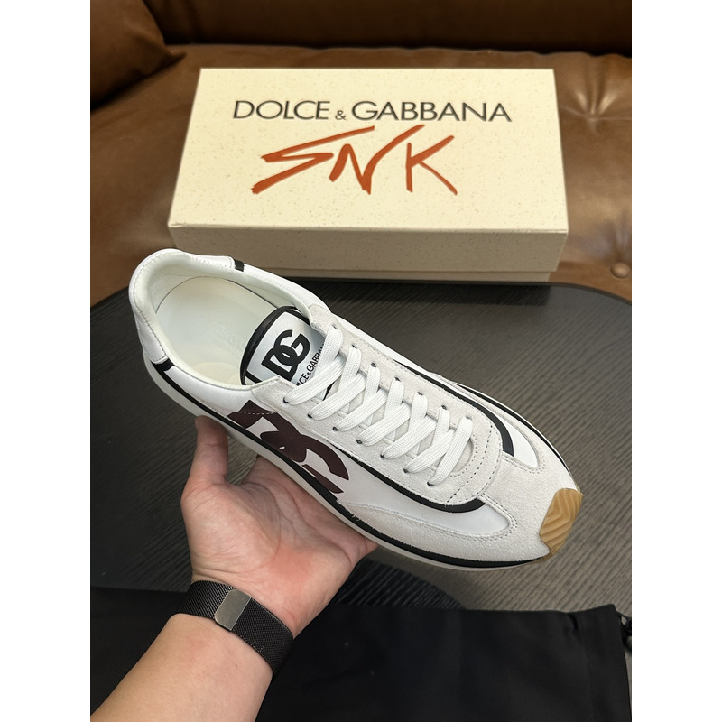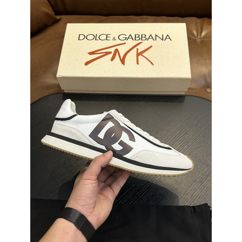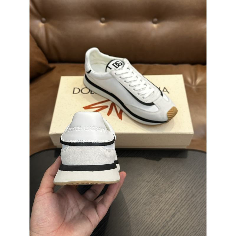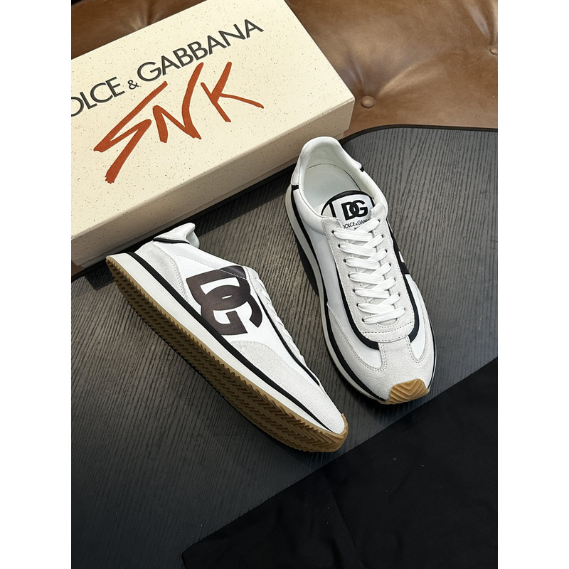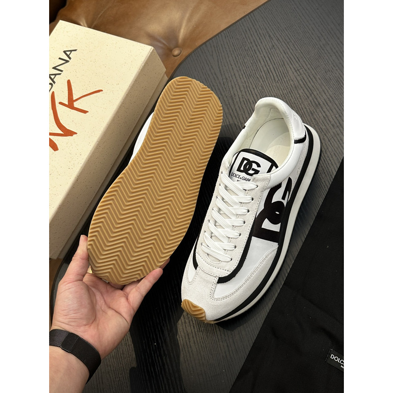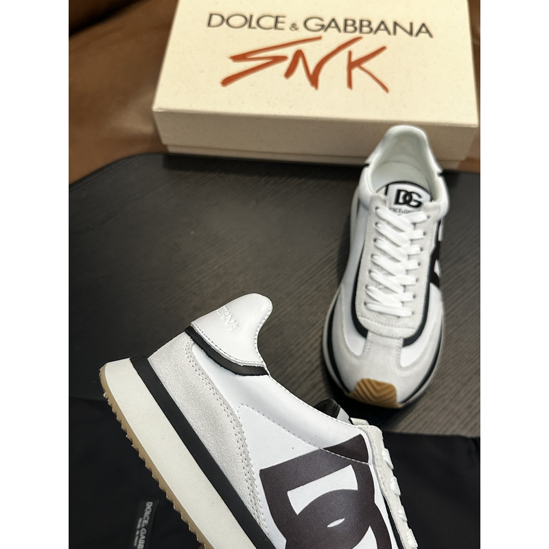 Dolce & Gabbana Running Sneakers In White with Black Accents And DG Logo
