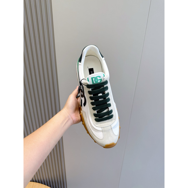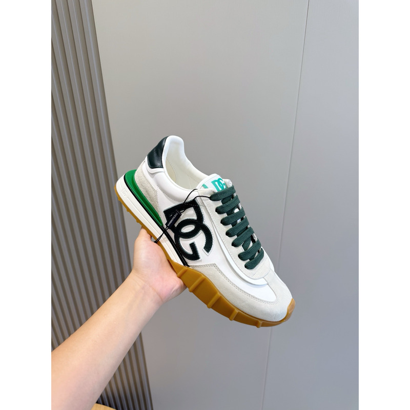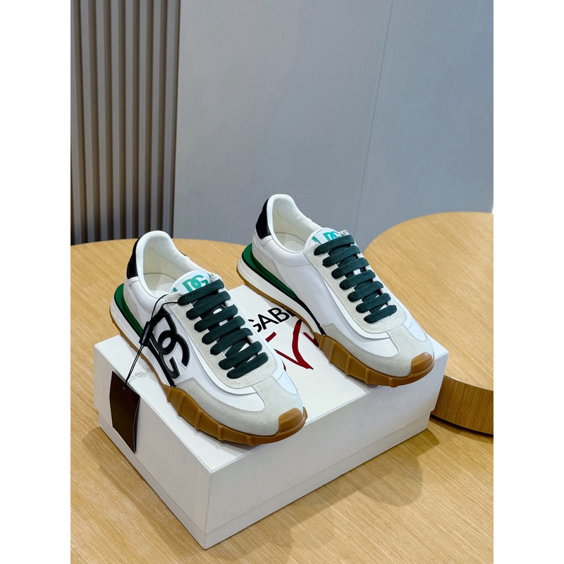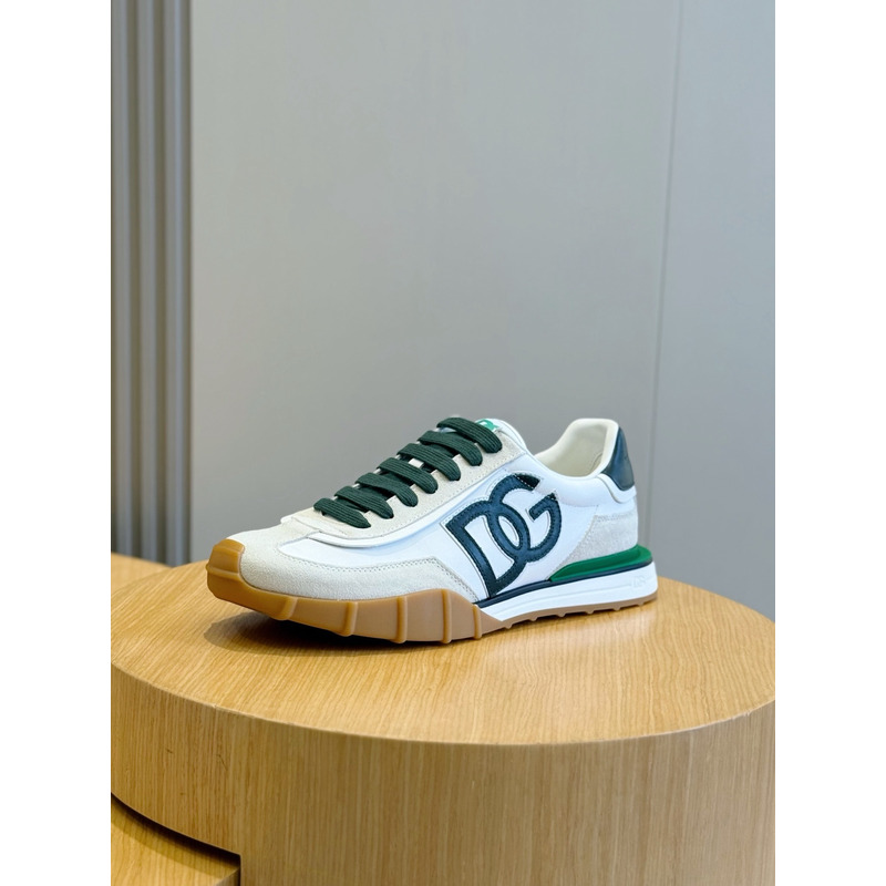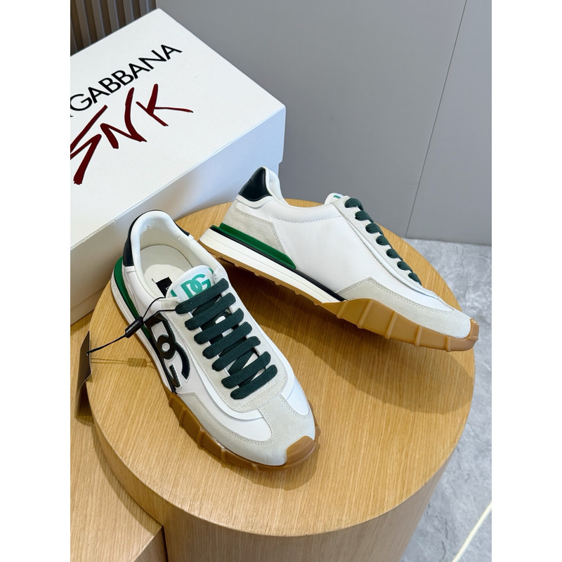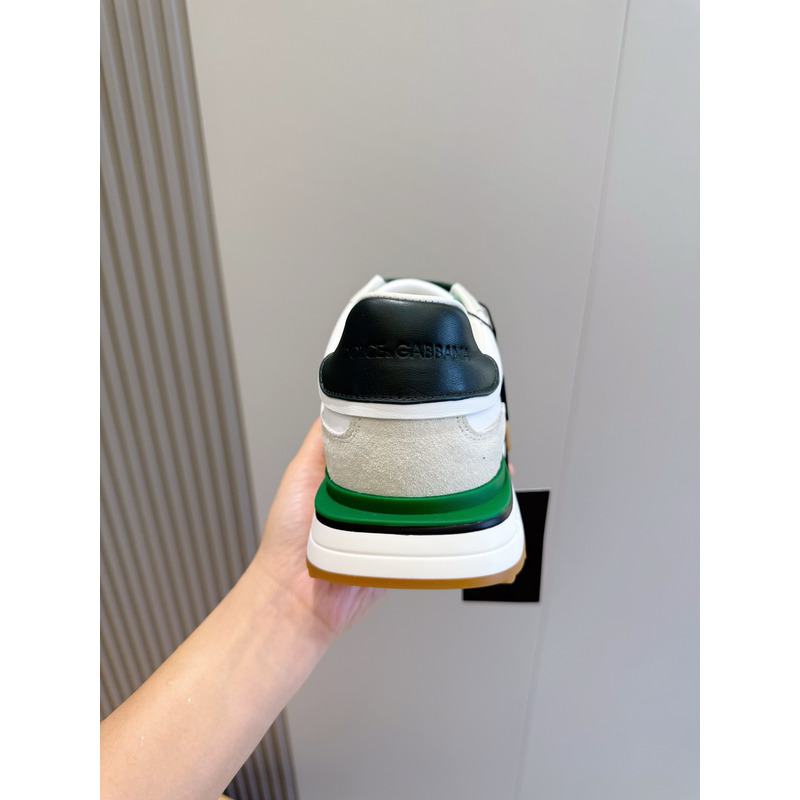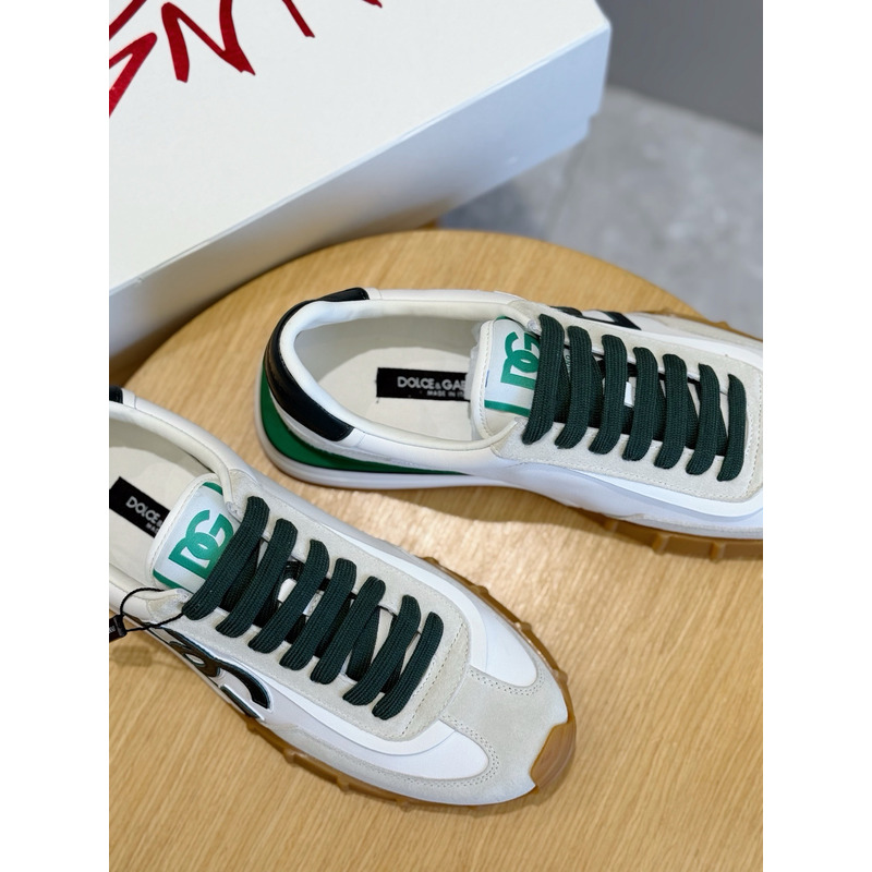 Dolce & Gabbana White And Green Leather With Suede Accents Sneakers
