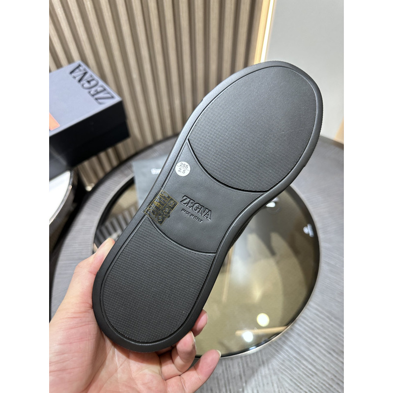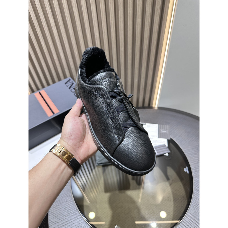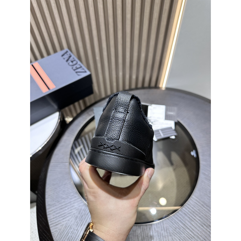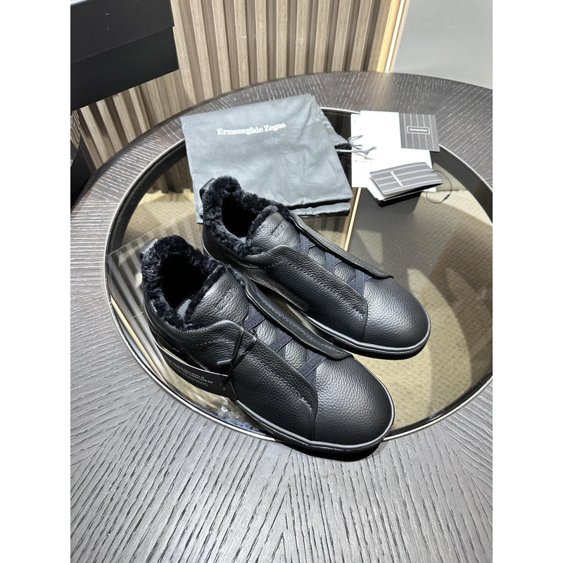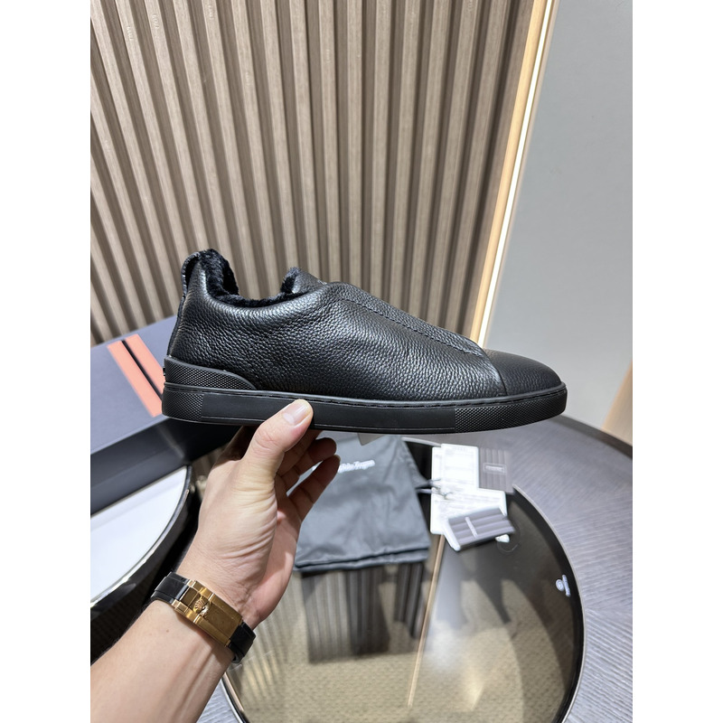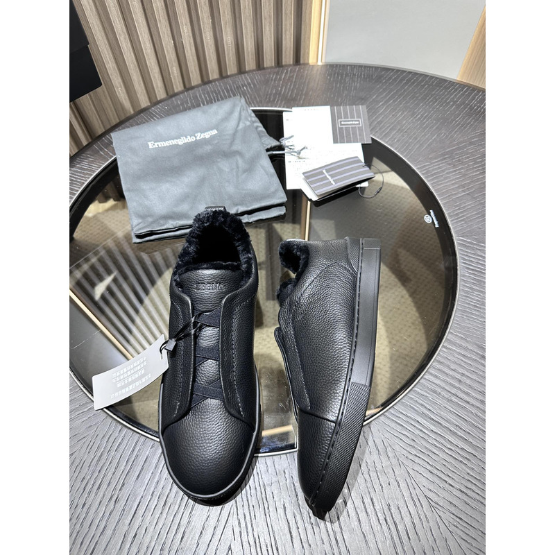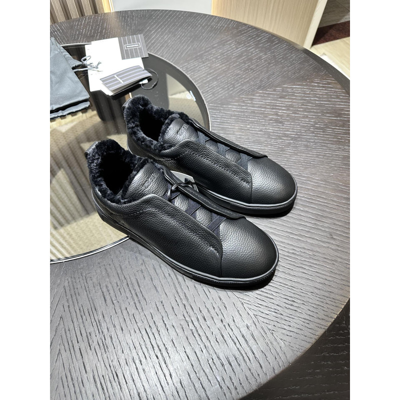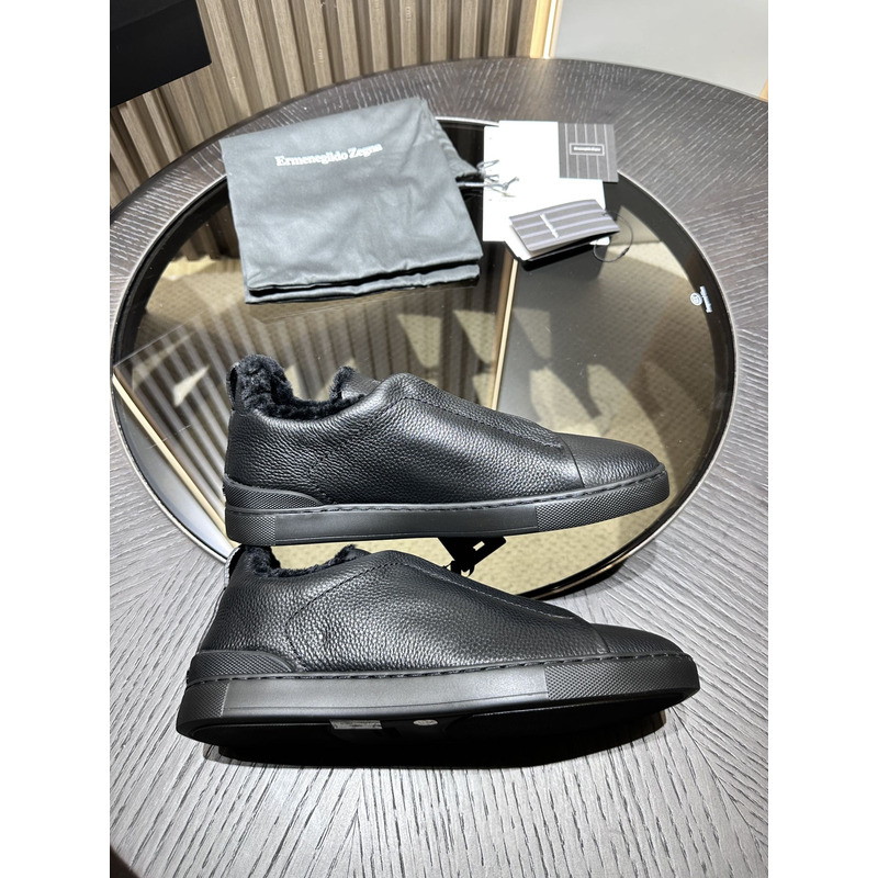 Ermenegildo Zegna Black Smooth Leather Shearling-Lined Slip-On Sneakers