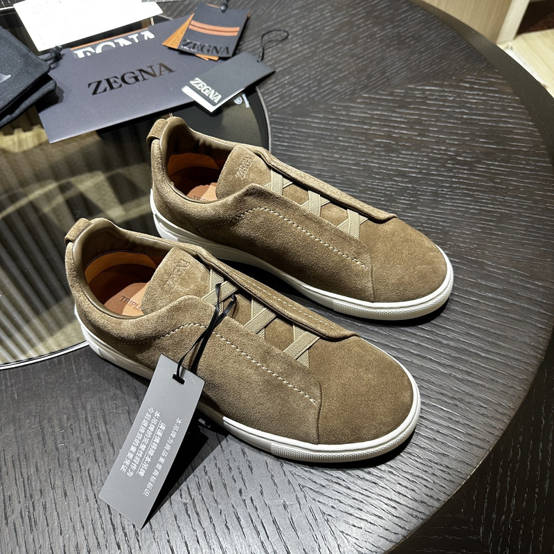Ermenegildo Zegna Light Taupe Suede Triple Stitch™ Sneakers