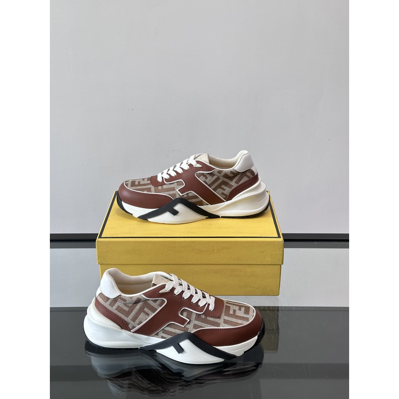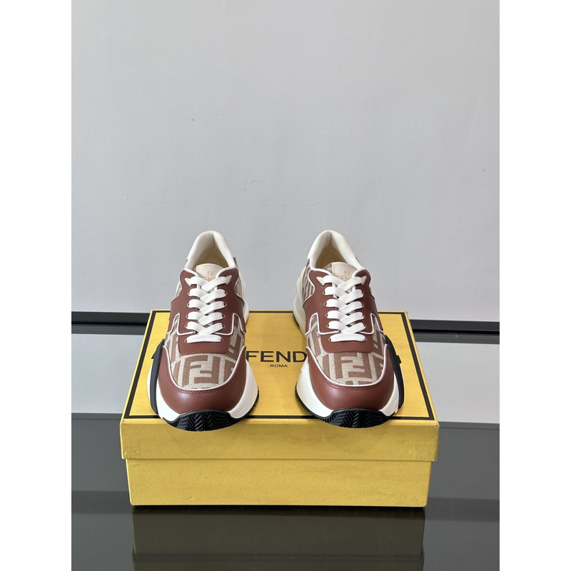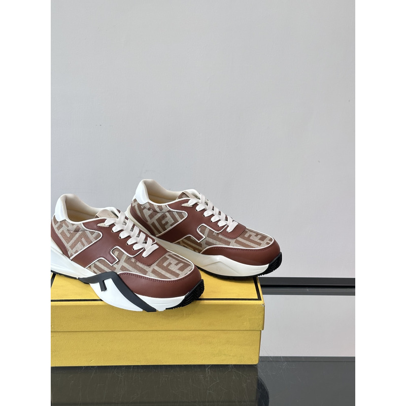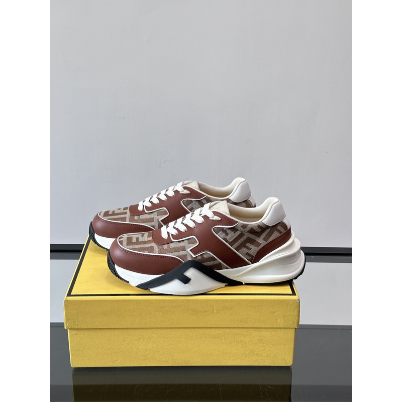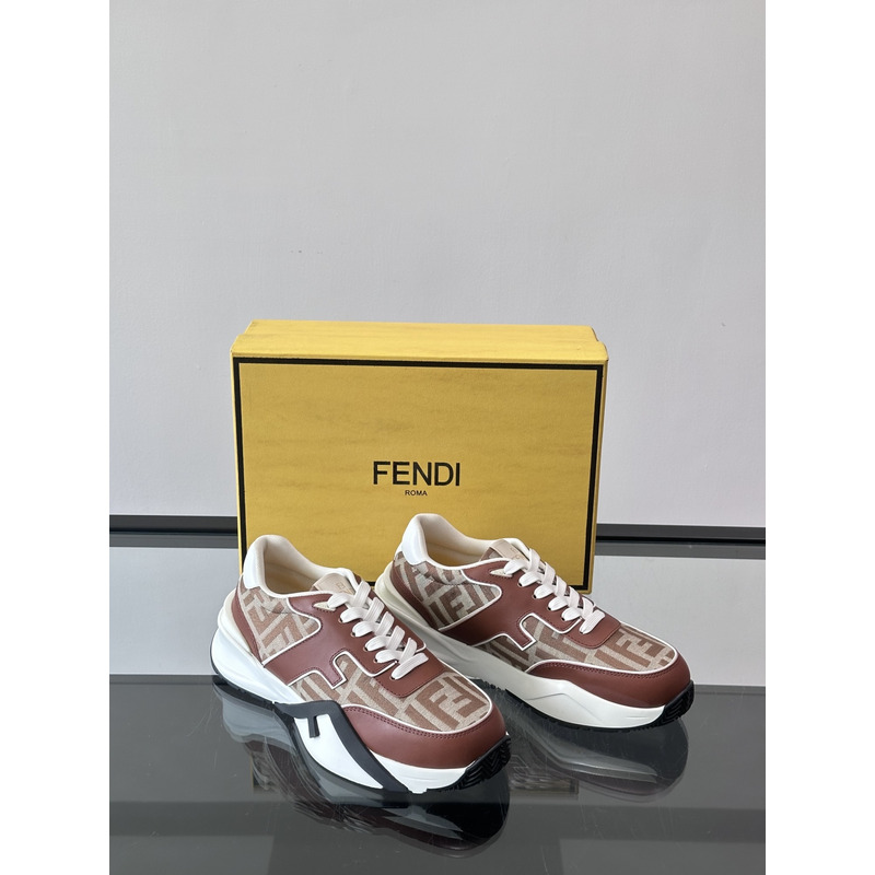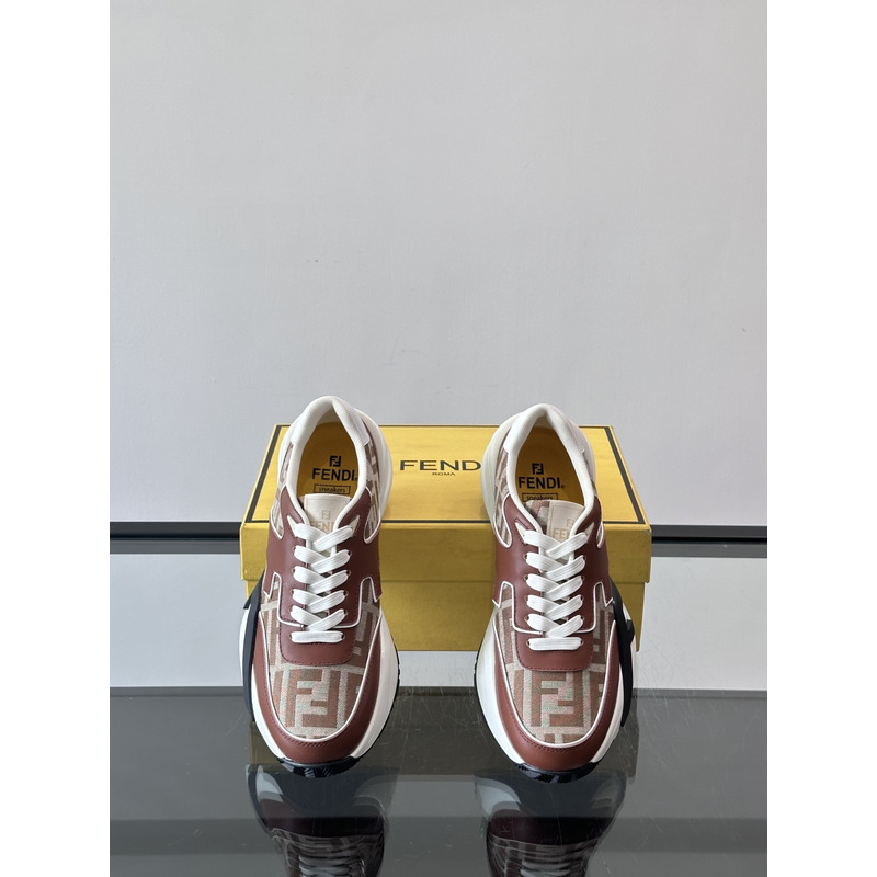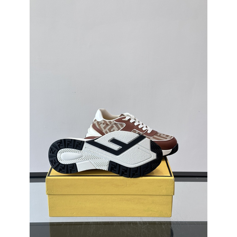 Fendi Flow Sneakers In Brown FF Motif Fabric And Leather