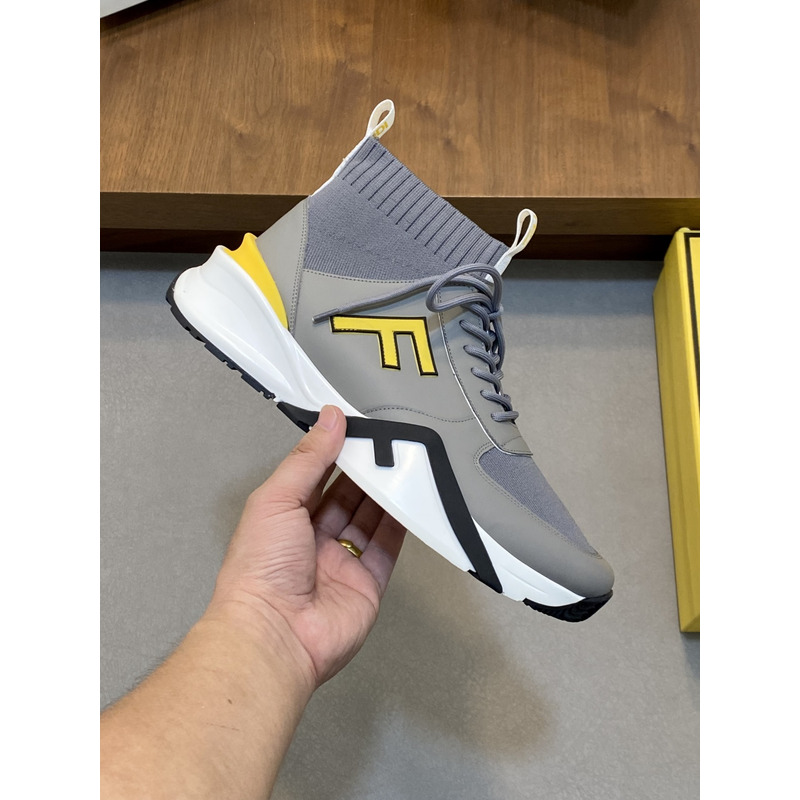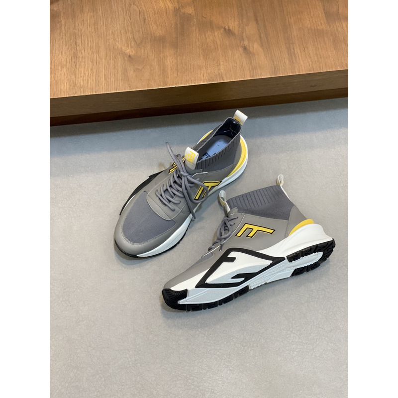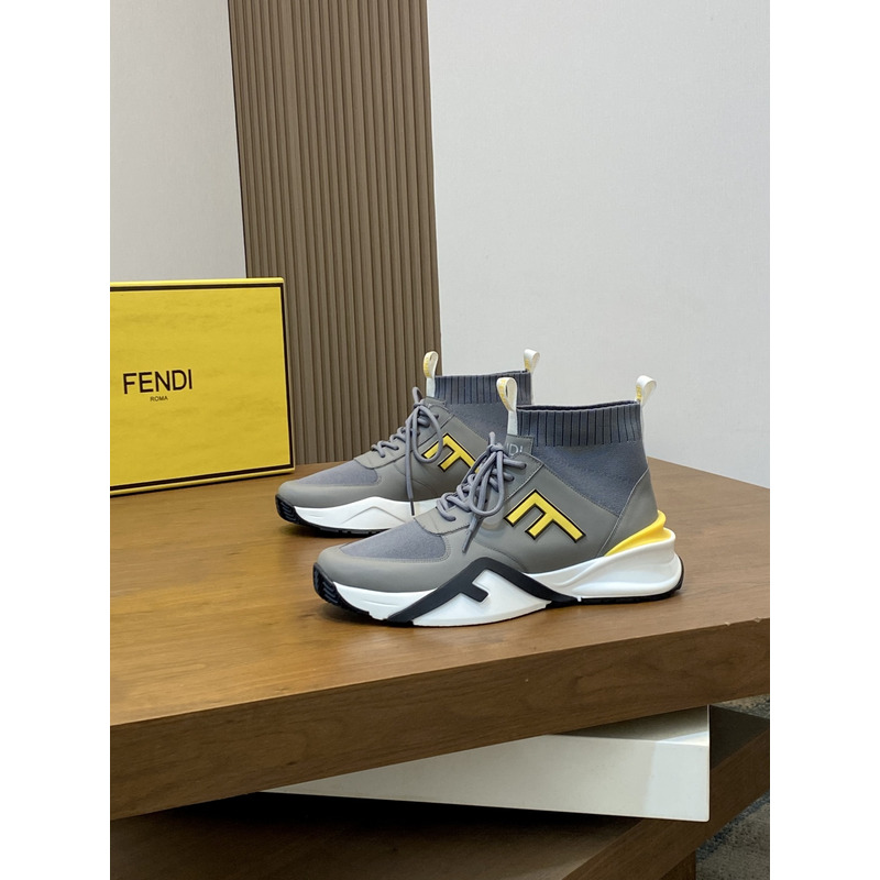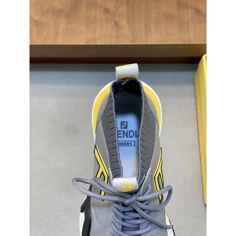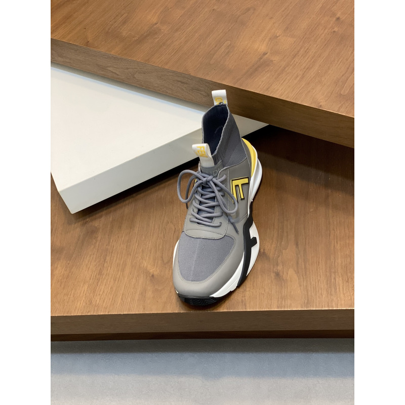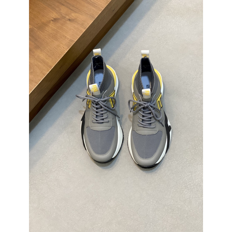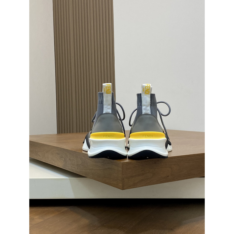 Fendi Grey High - Top Sneakers With Yellow Accents