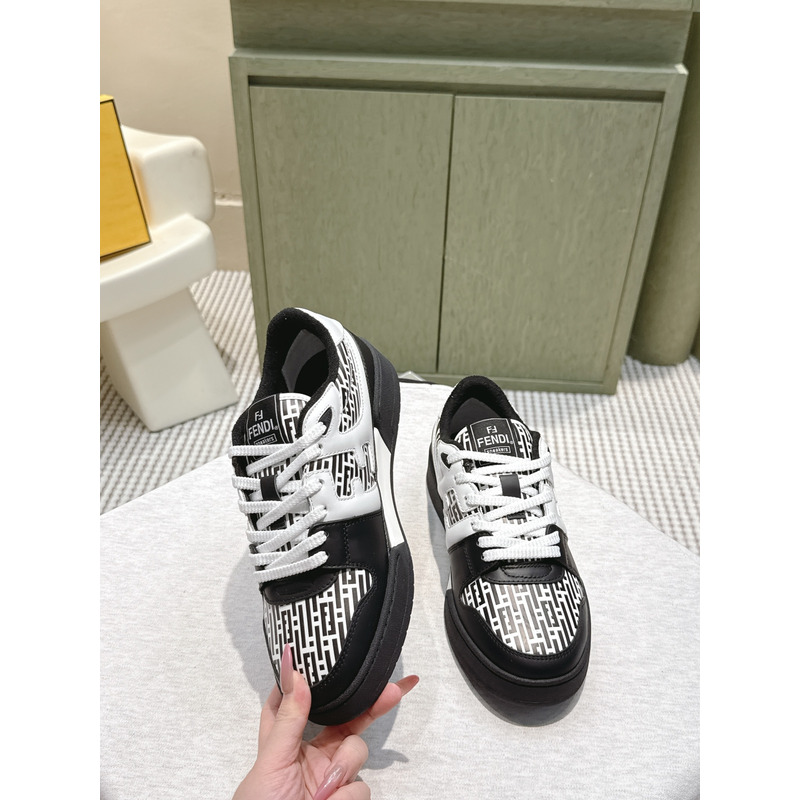 Fendi Match Sneakers Black FF Leather Low-Tops