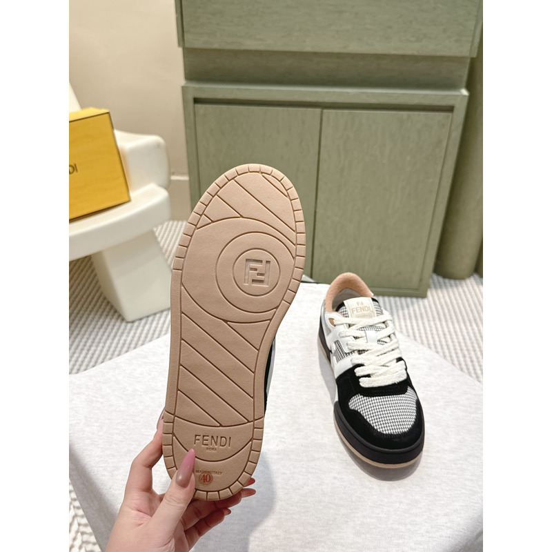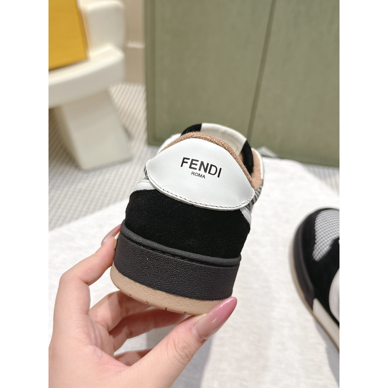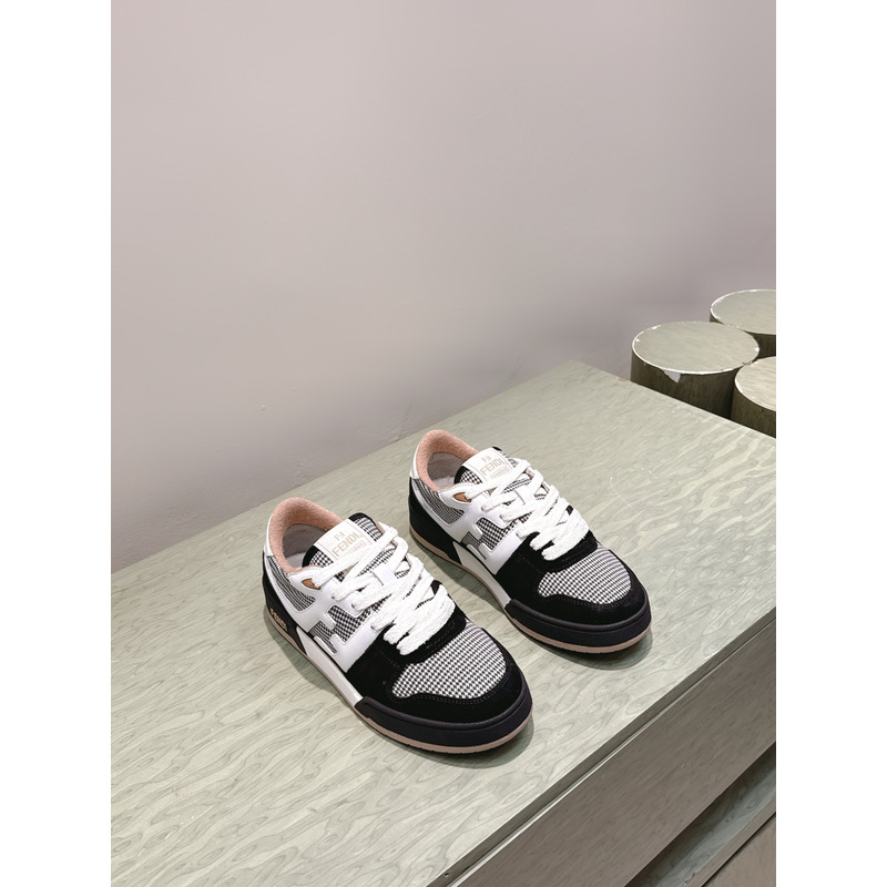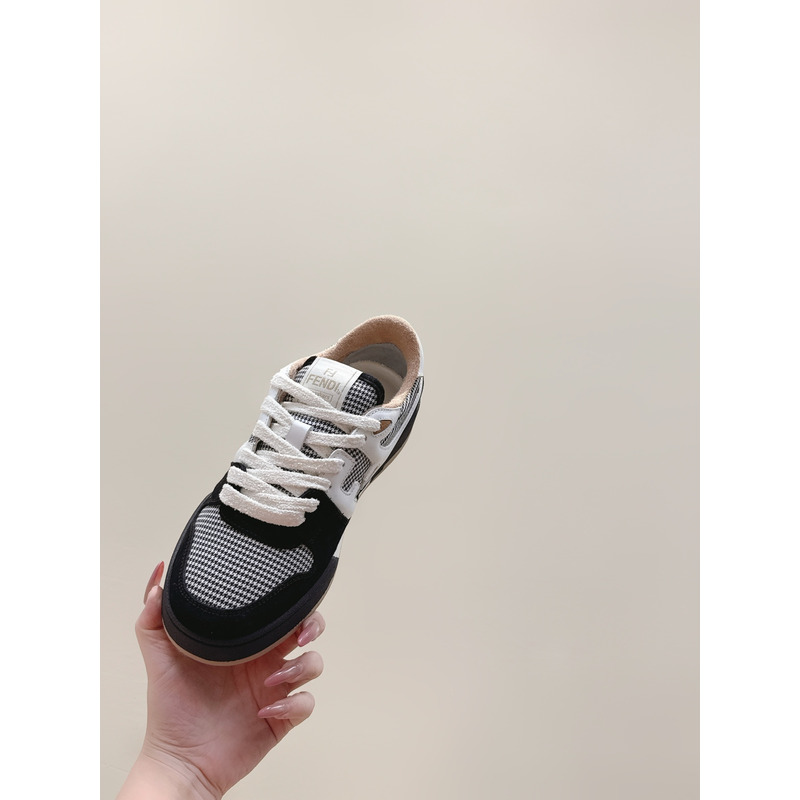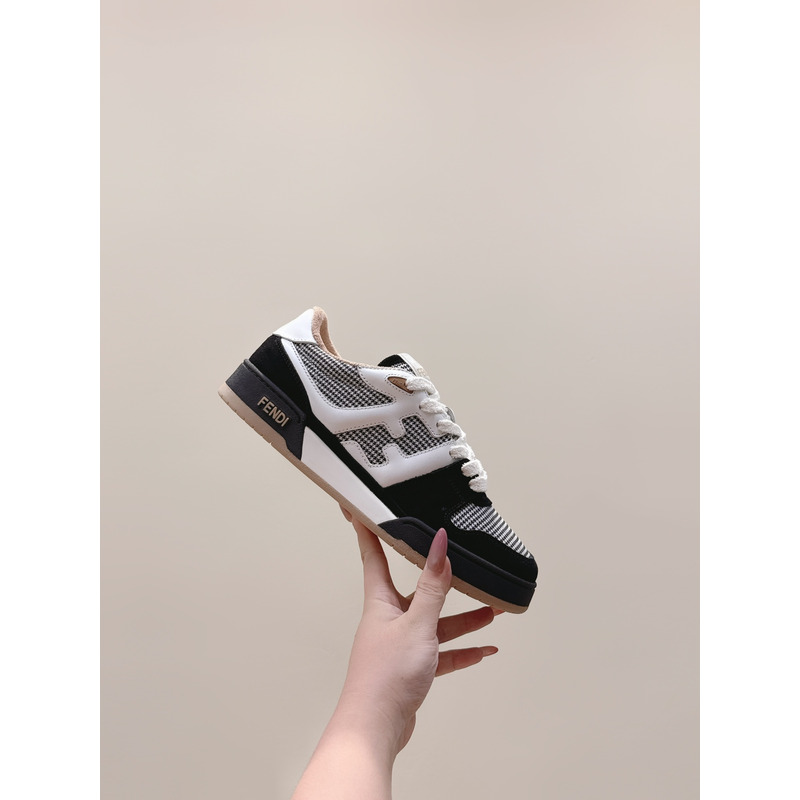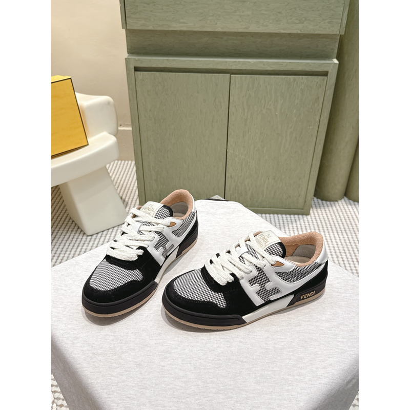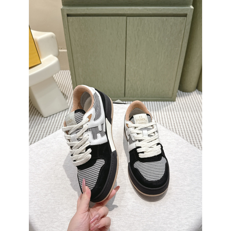 Fendi Match Trainers Low Tops In Black Suede With Houndstooth