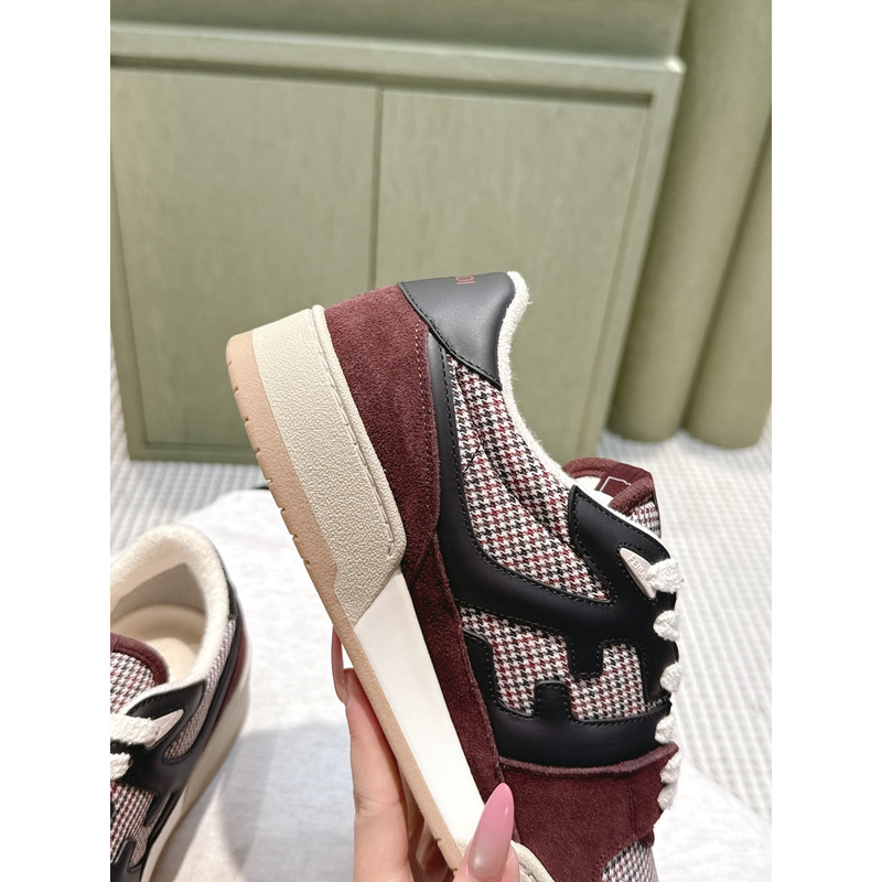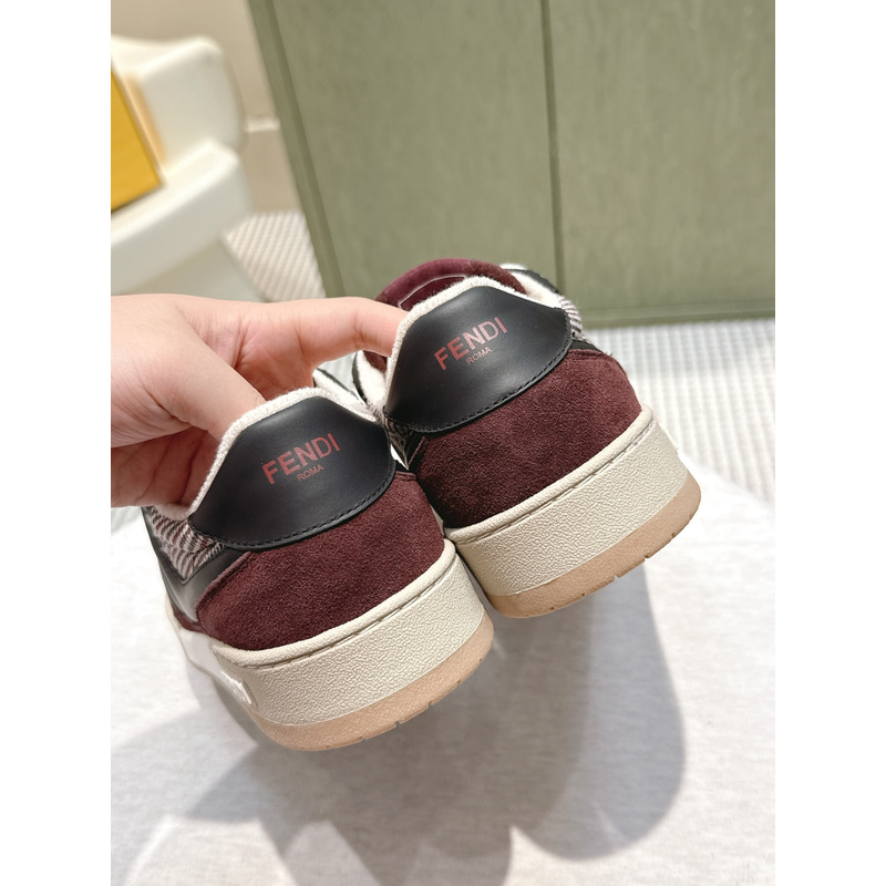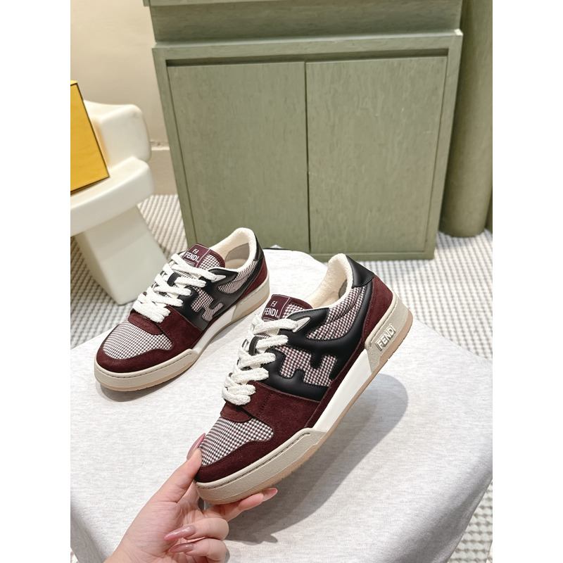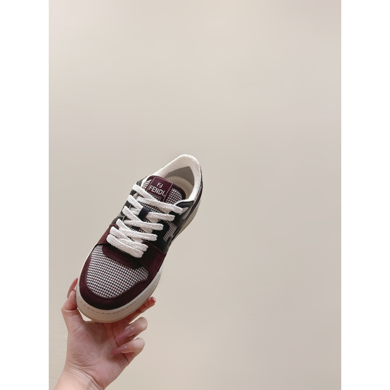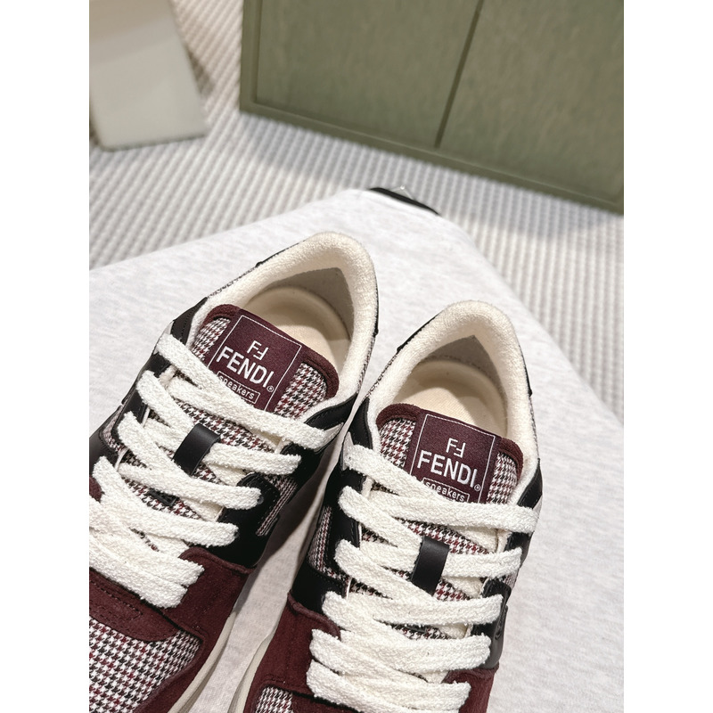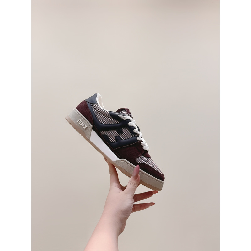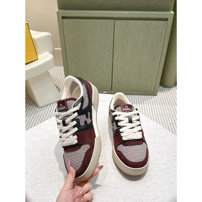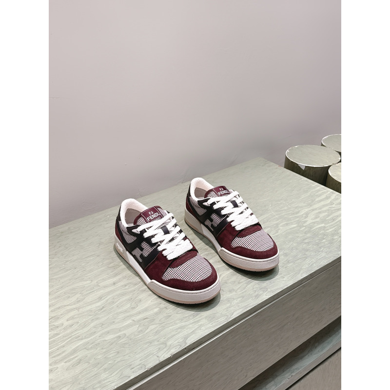 Fendi Match Trainers Low Tops In Red Suede With Houndstooth