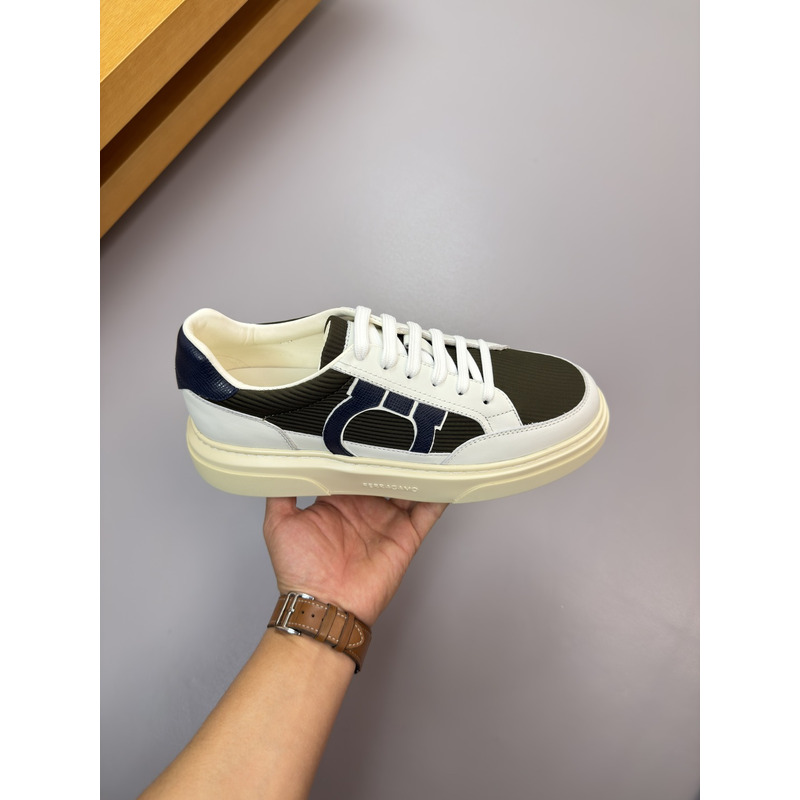 Ferragamo Gancini Low-Top Sneaker Olive Green/White