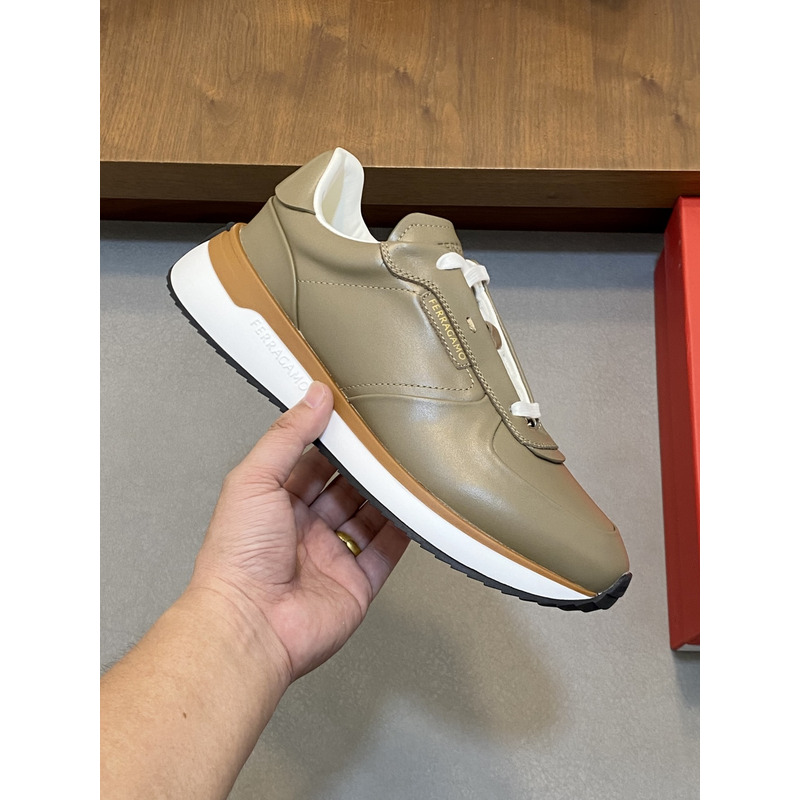 Ferragamo Low Cut Sneaker In Light Khaki
