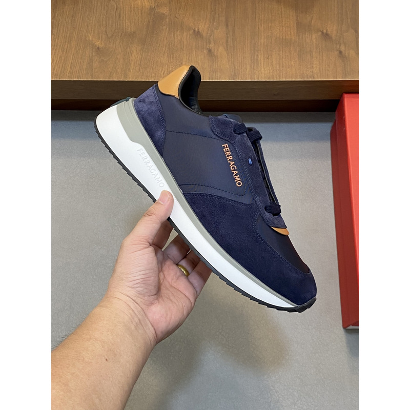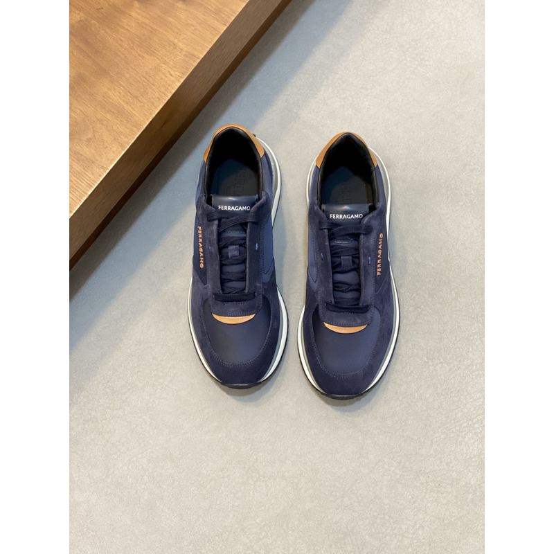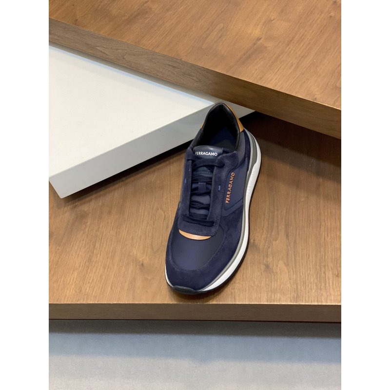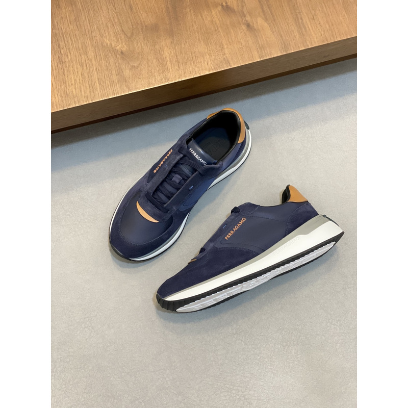 Ferragamo Low Cut Suede Sneaker Dark Blue