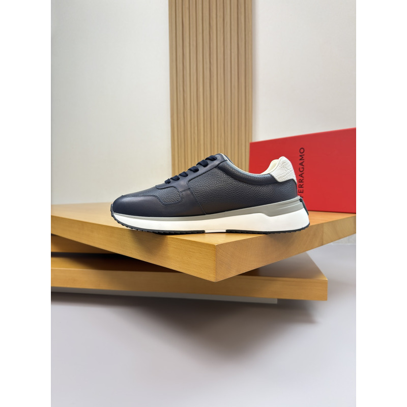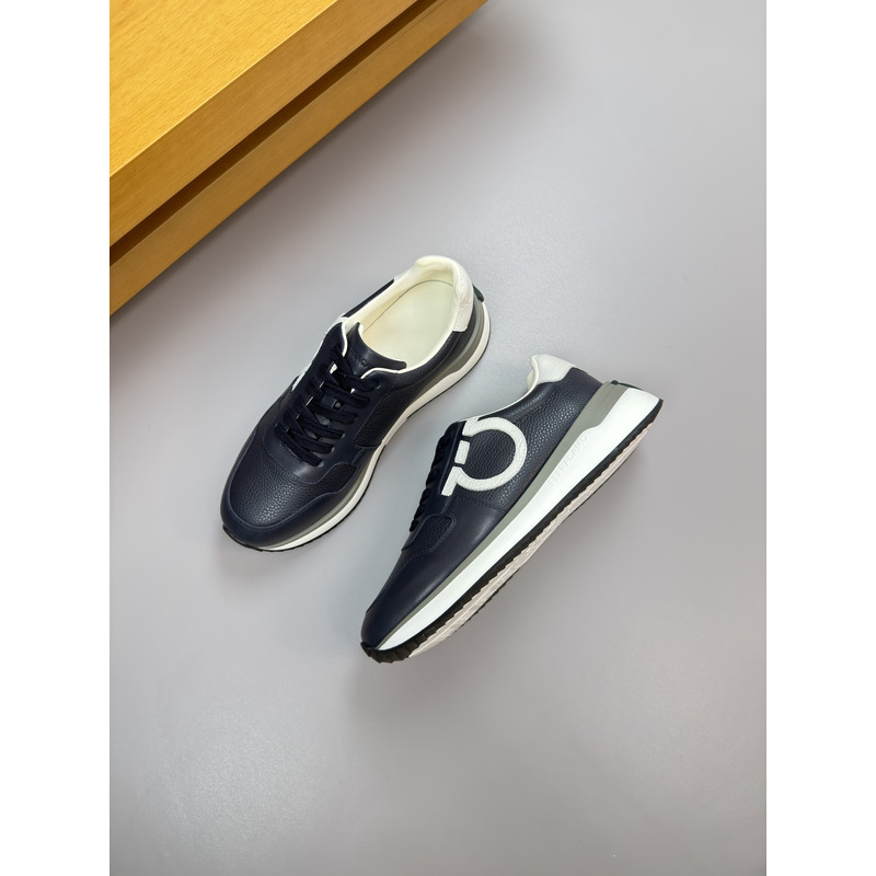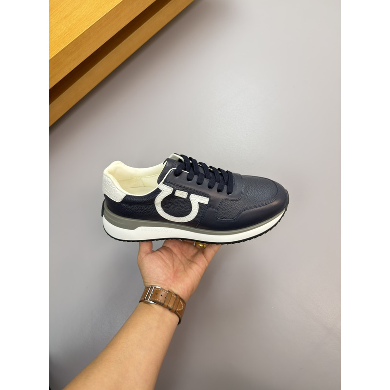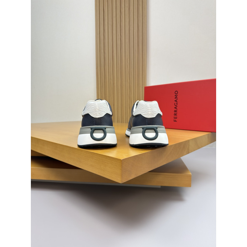 Ferragamo Low Top Sneaker With Gancini Ornament Sneaker In Navy Blue
