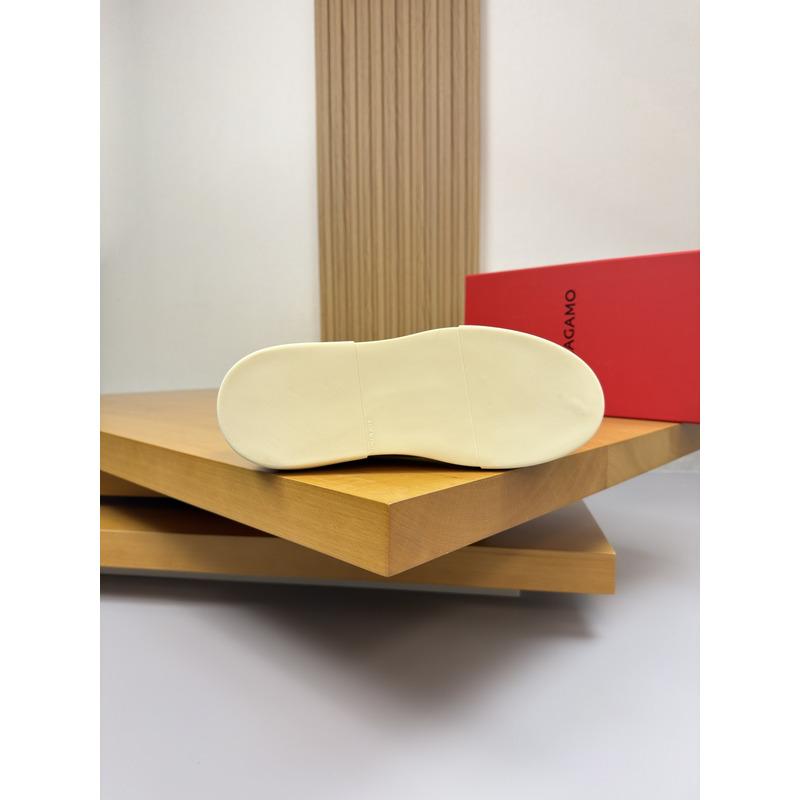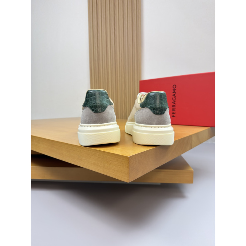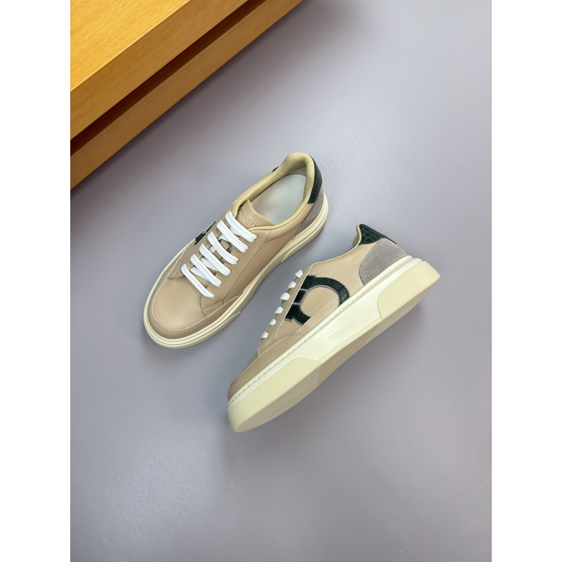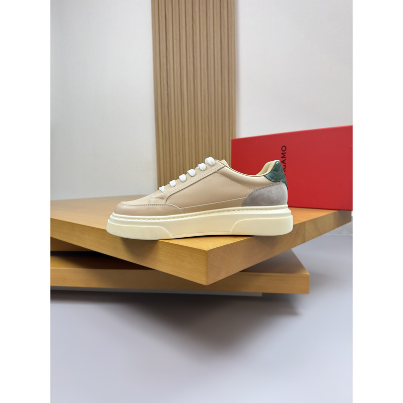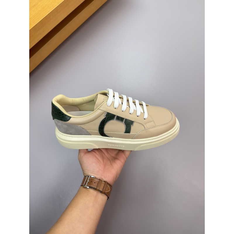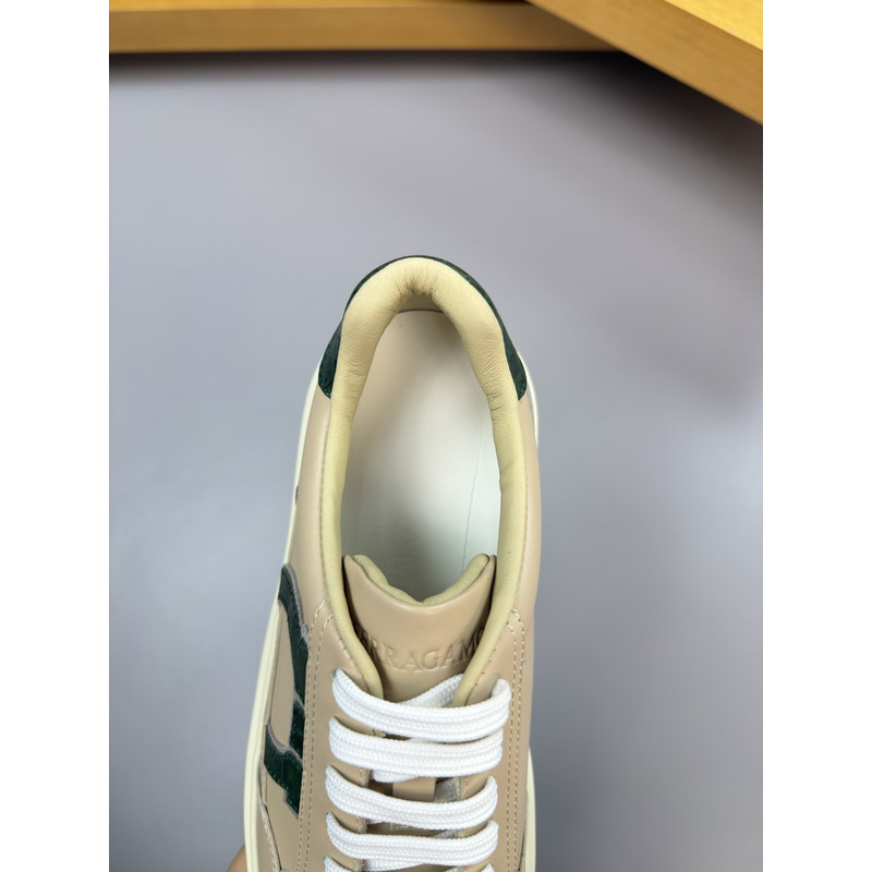 Ferragamo Low-Top Sneaker With Gancini Detail In Beige