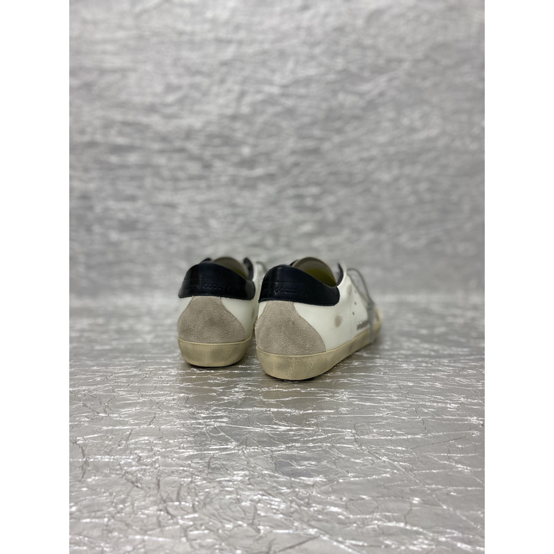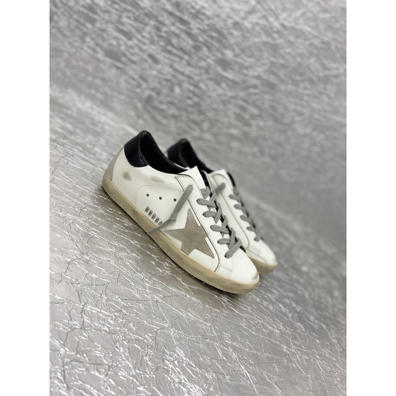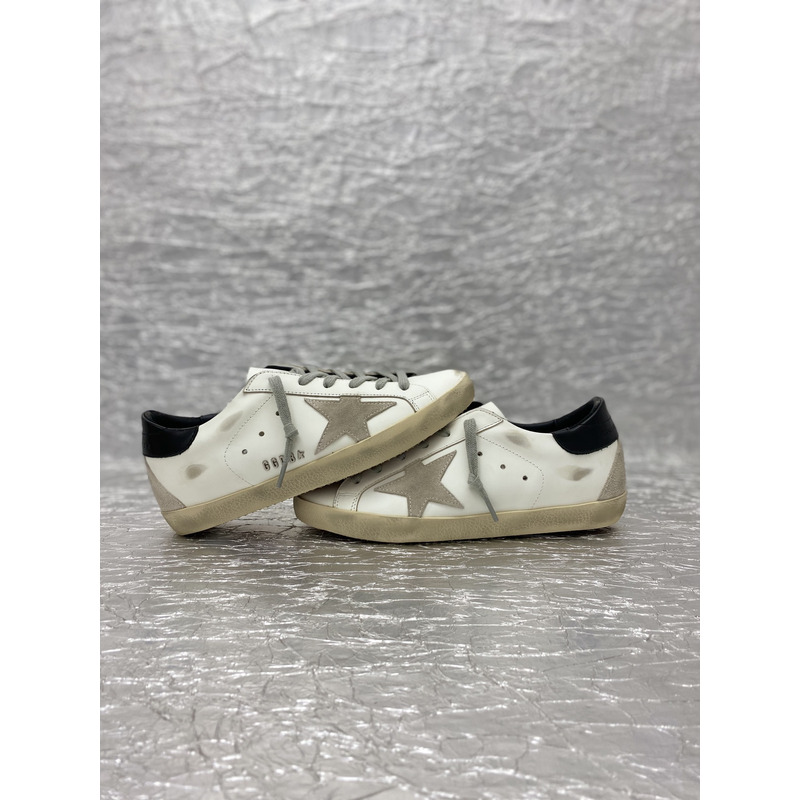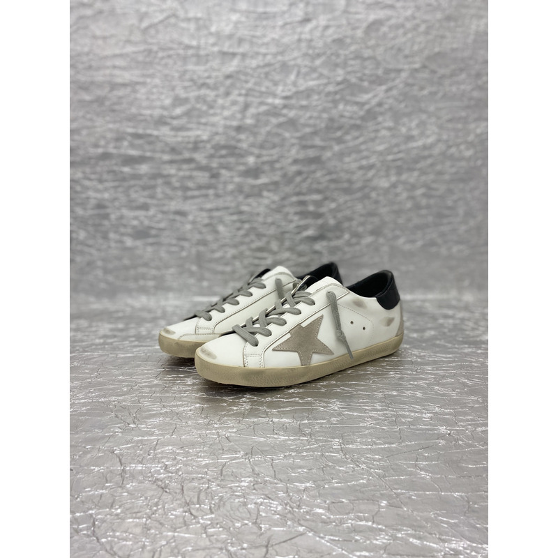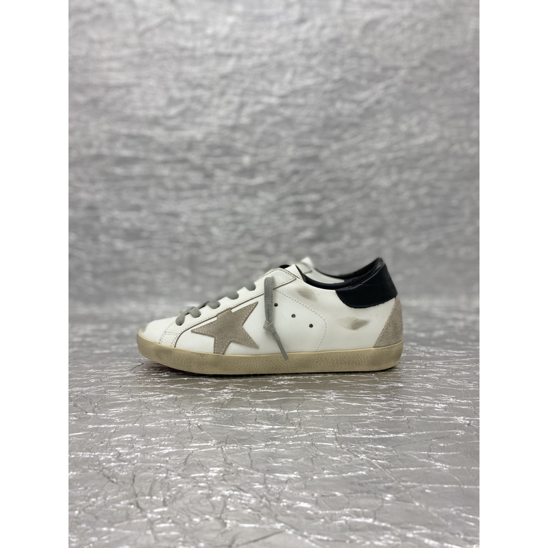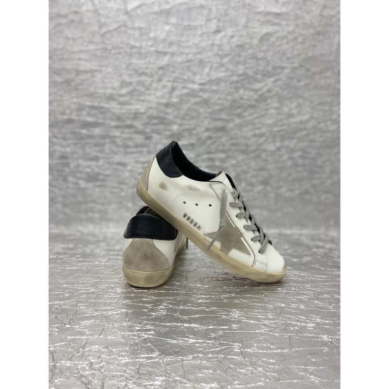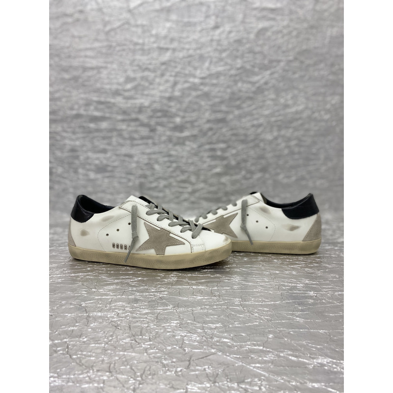 GGDB Super-Star Sneakers In White Leather with Black Heel Tab & Grey Star