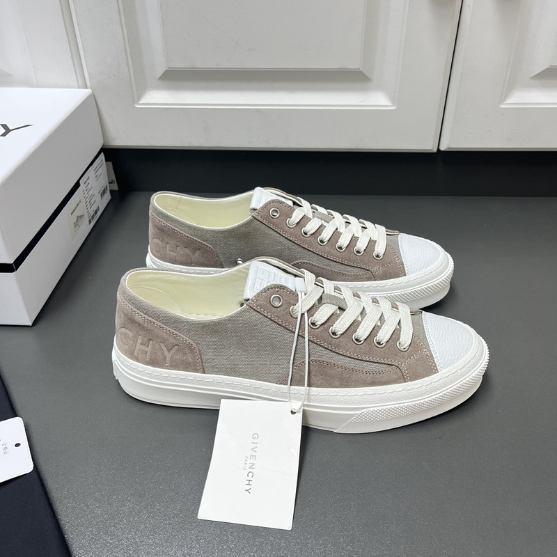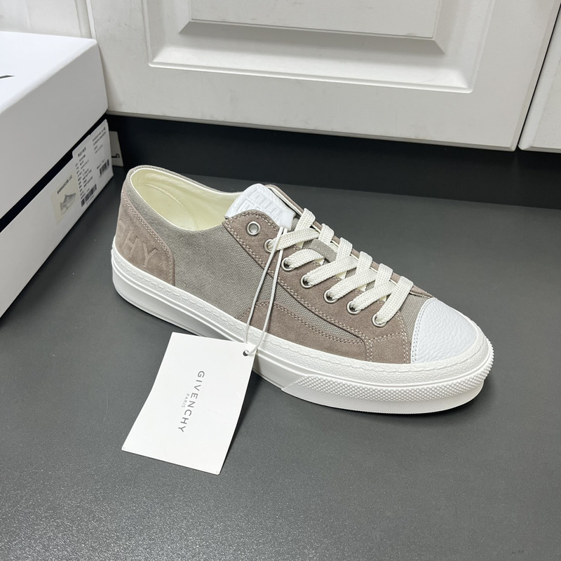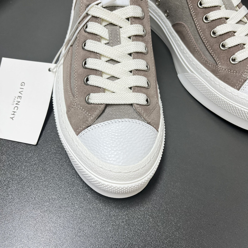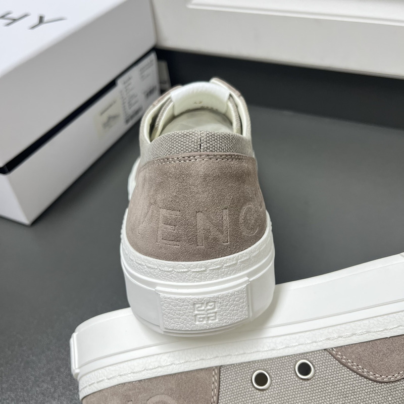 Givenchy City Suede-Trimmed Canvas Sneakers In Light Grey