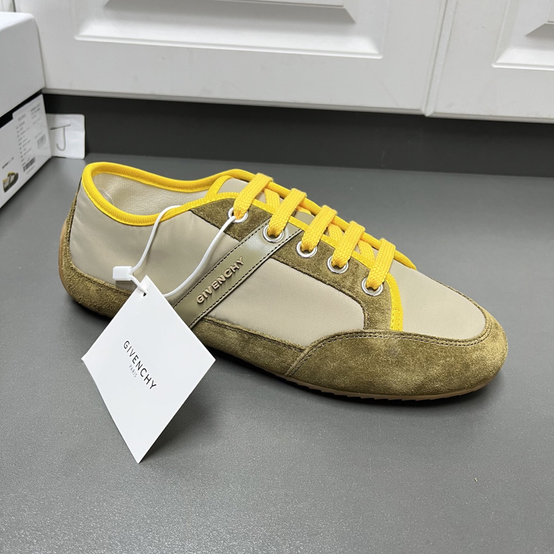 Givenchy Slim Sneakers In Nylon And Suede In Khaki/Yellow
