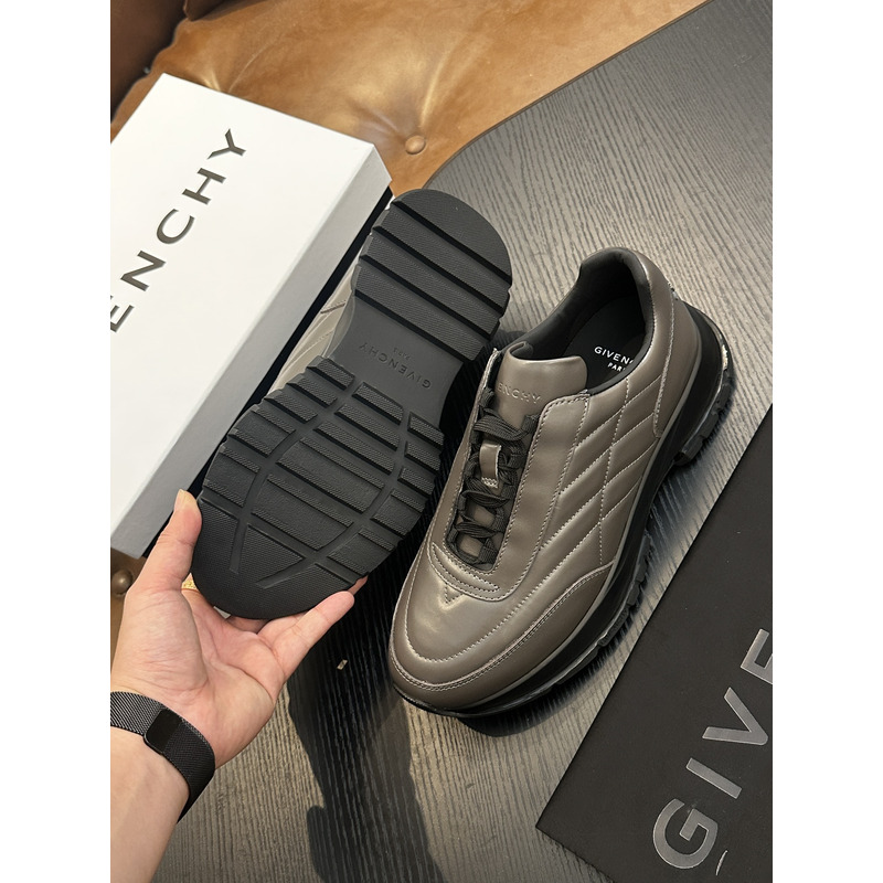 Givenchy Trainers Sneakers In Shiny Padded Leather In Metallic Silver Grey