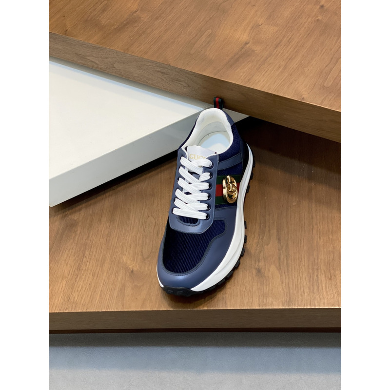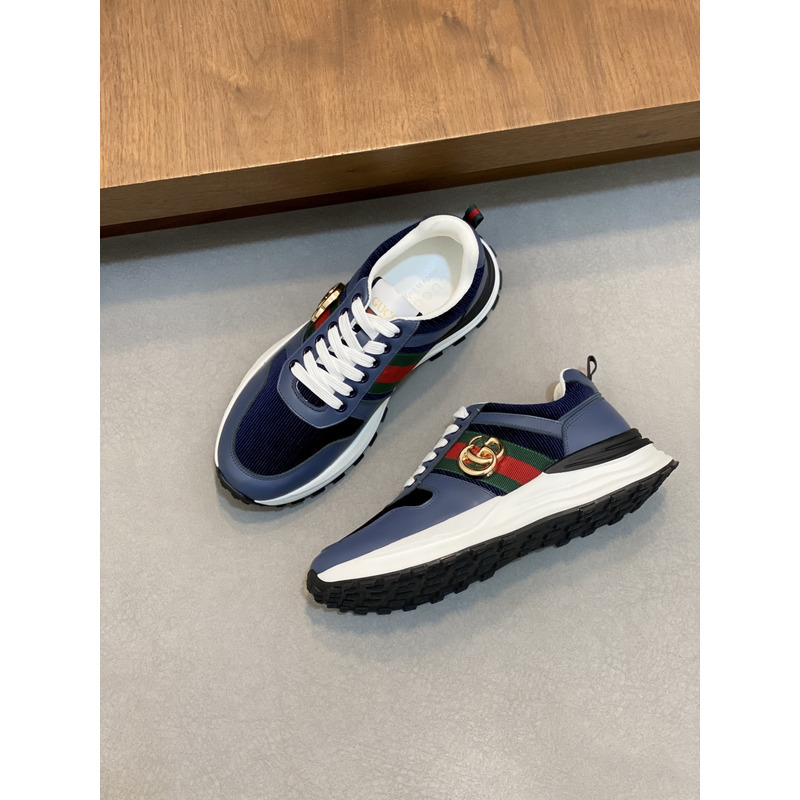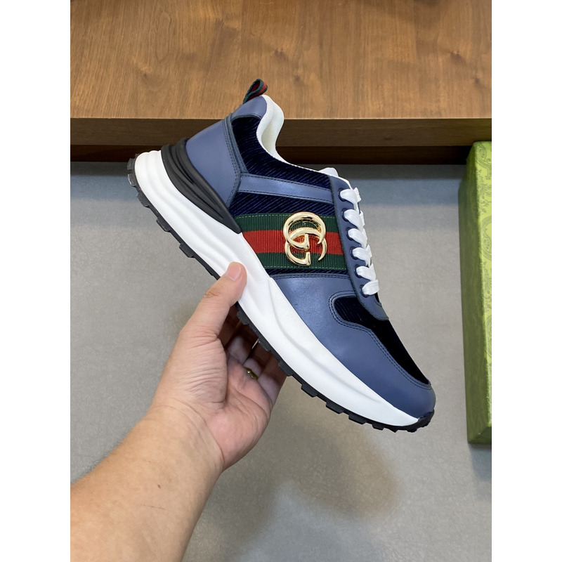 Gucci Blue Low - Top Sneakers With Web Stripe And GG