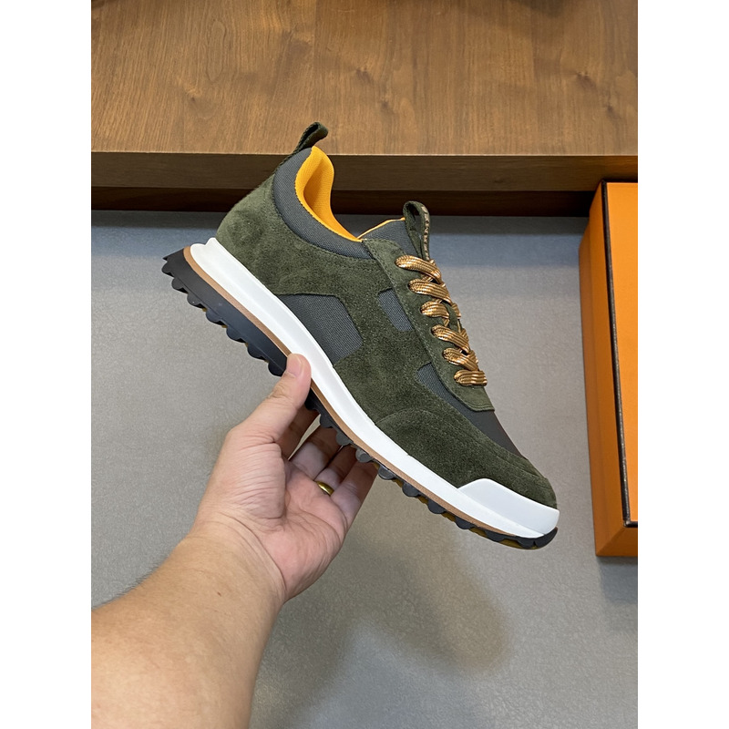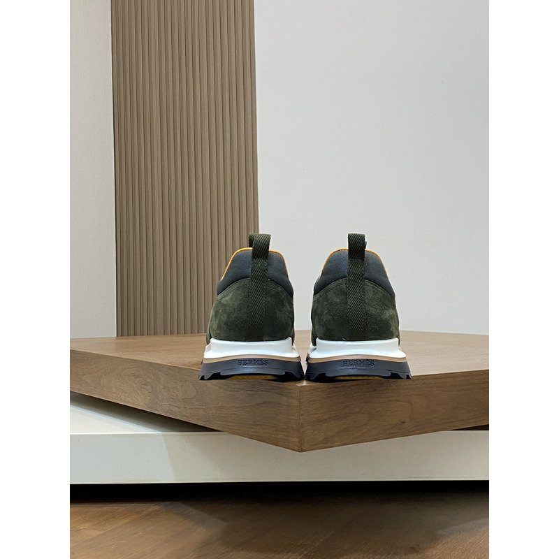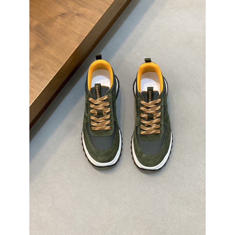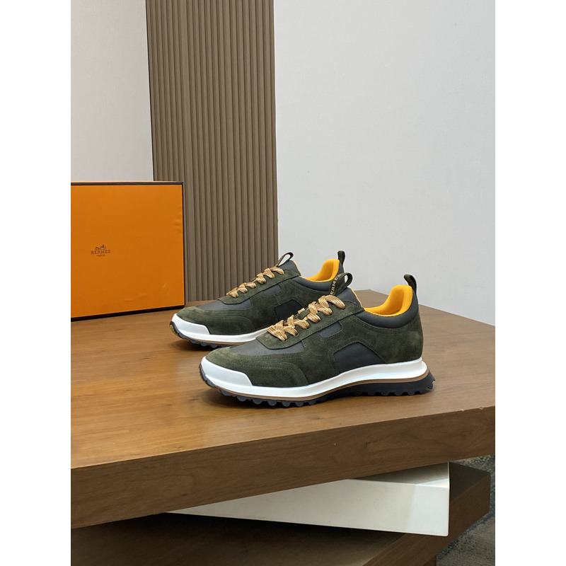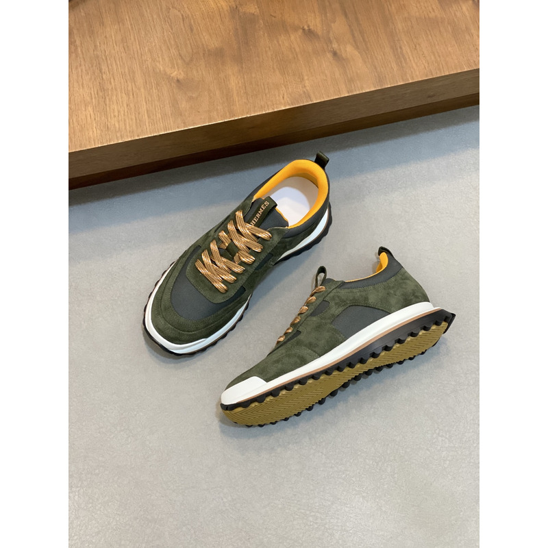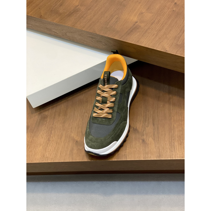 Hermès Bouncing Sneaker In Olive Green & Orange