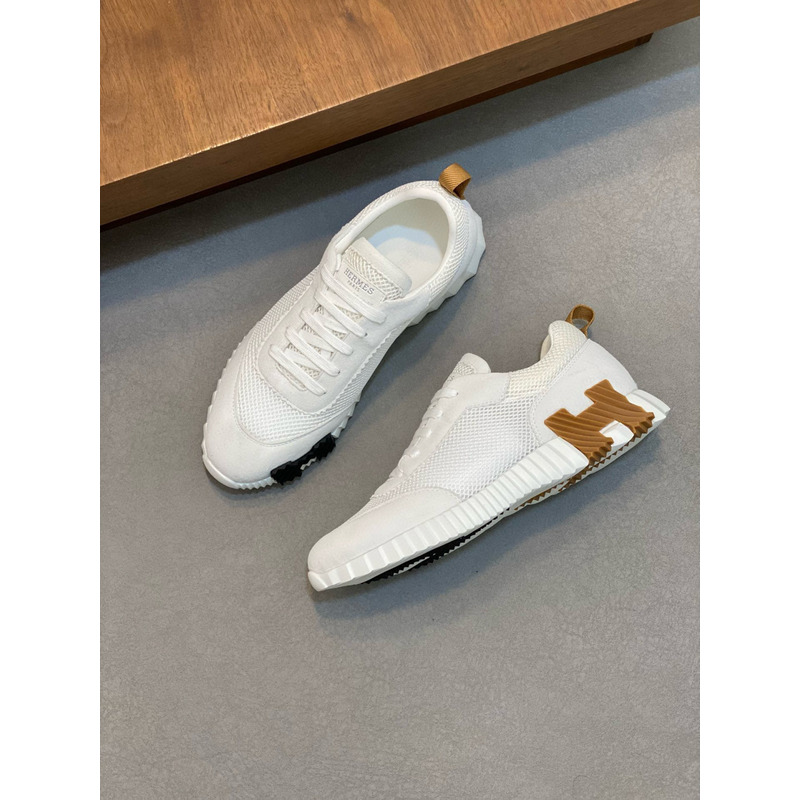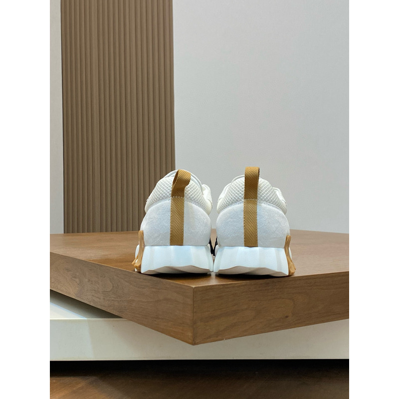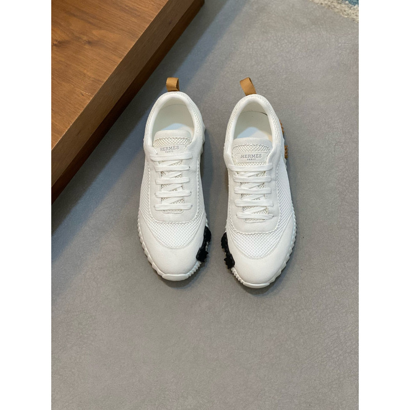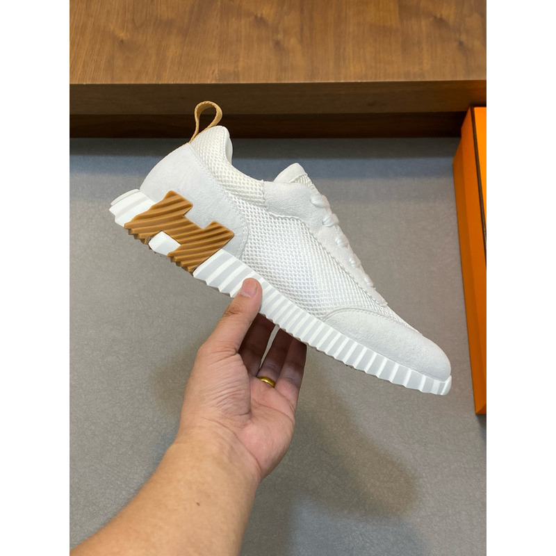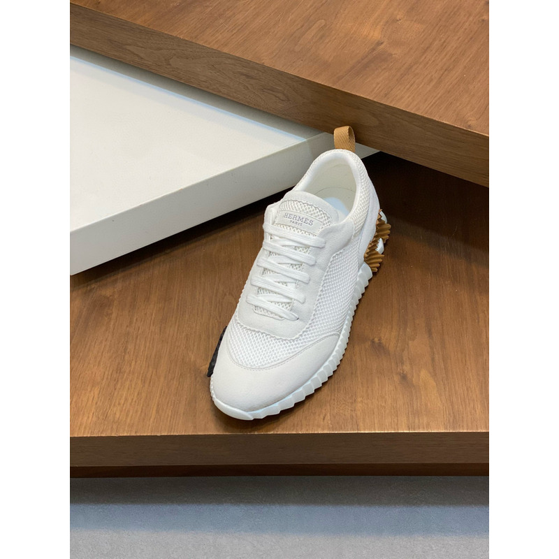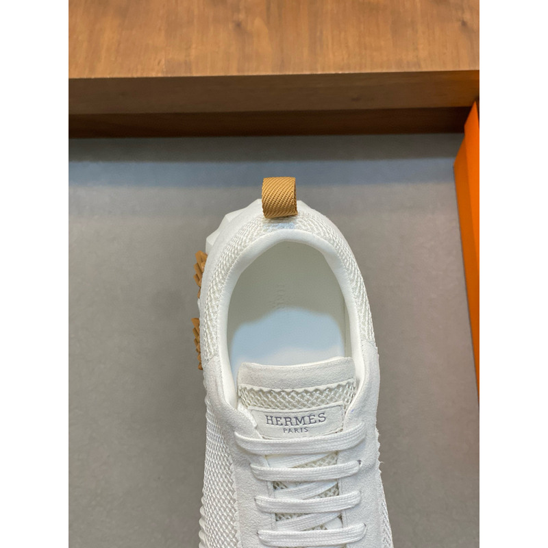 Hermès Bouncing Sneaker Textured Mesh And Suede In White / Brown