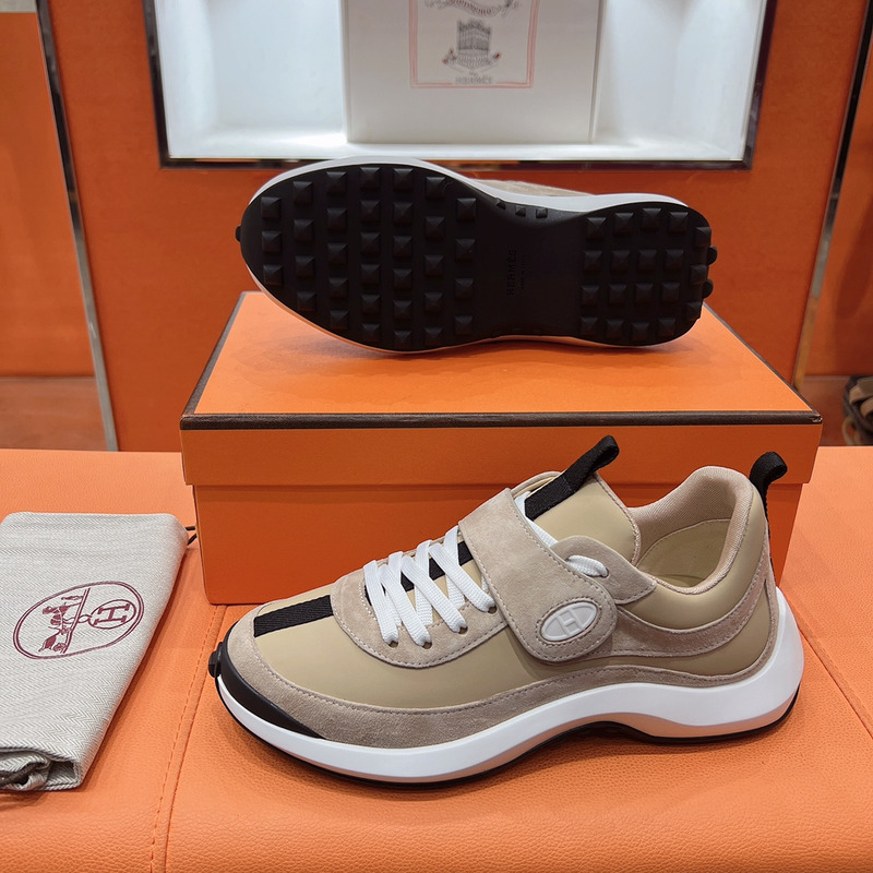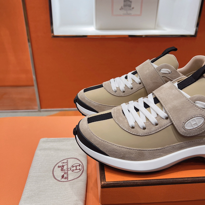 Hermès Loop Sneaker Brown Parachute Fabric And Suede Goatskin