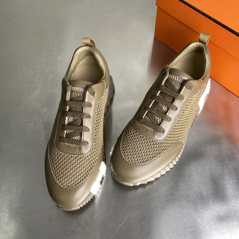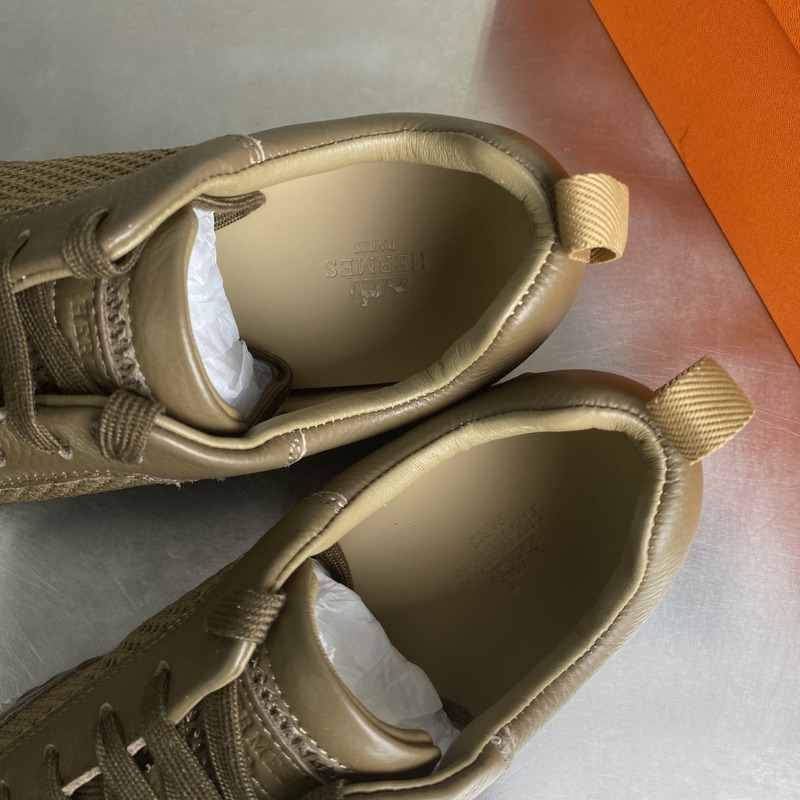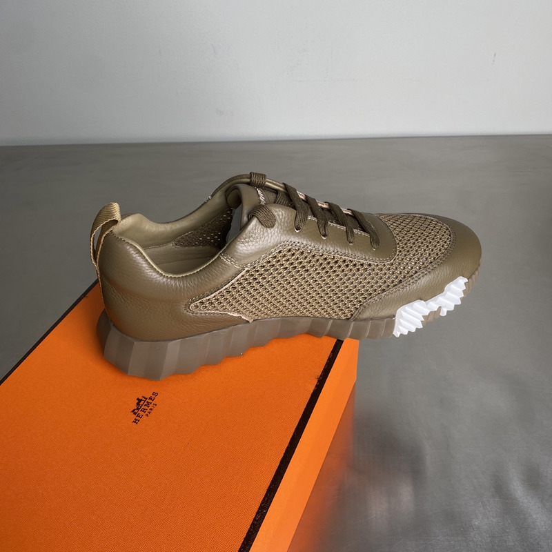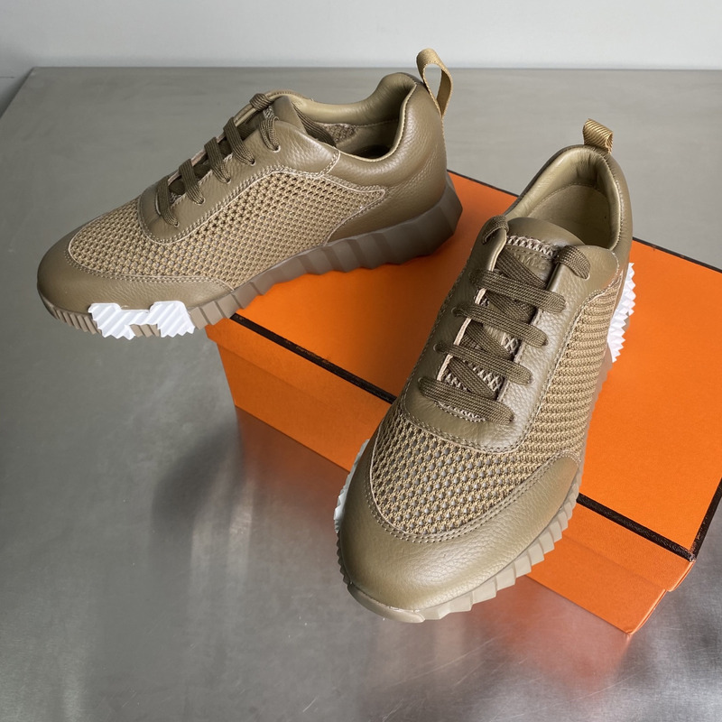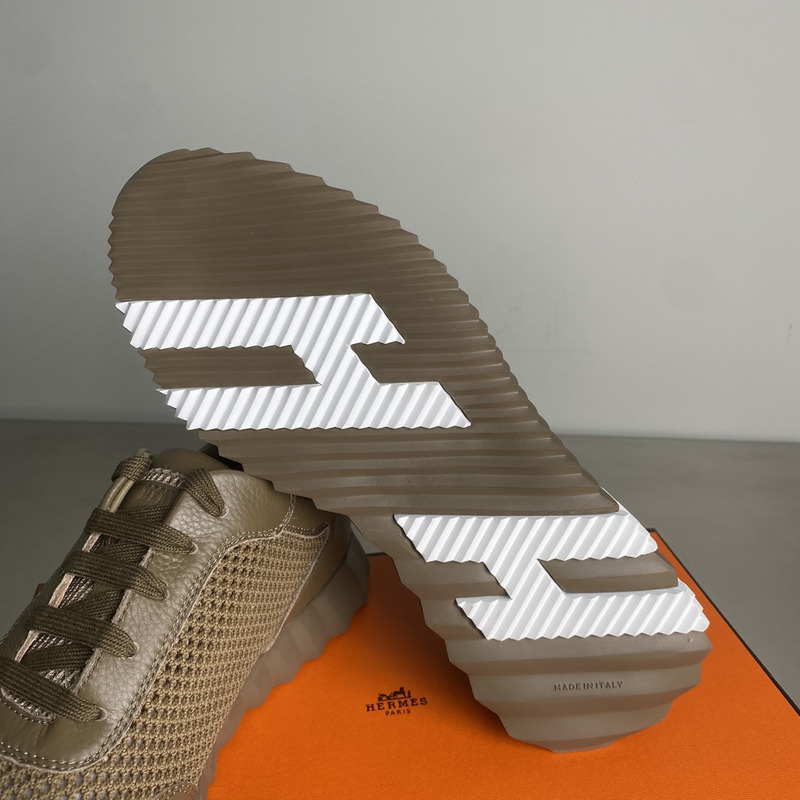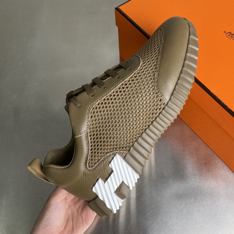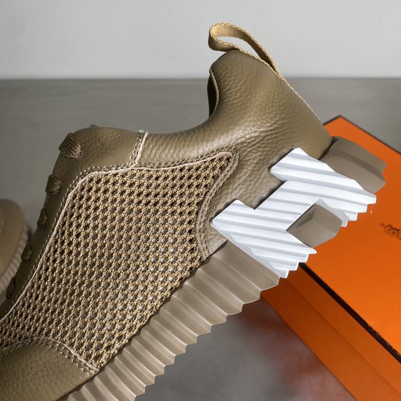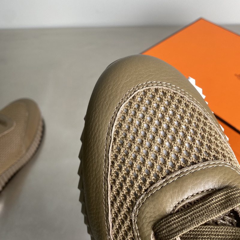 Hermes Bouncing Sneaker In Graphic Mesh And Suede Goatskin Khaki