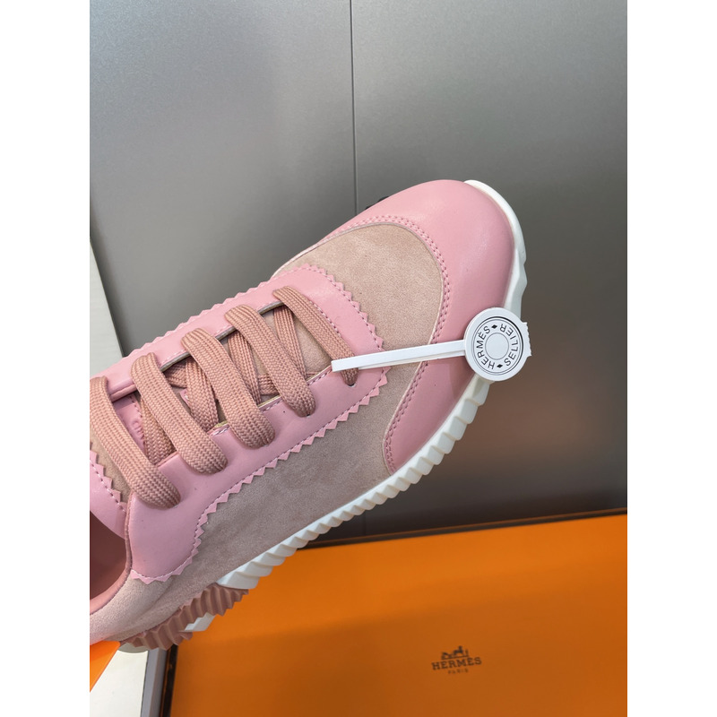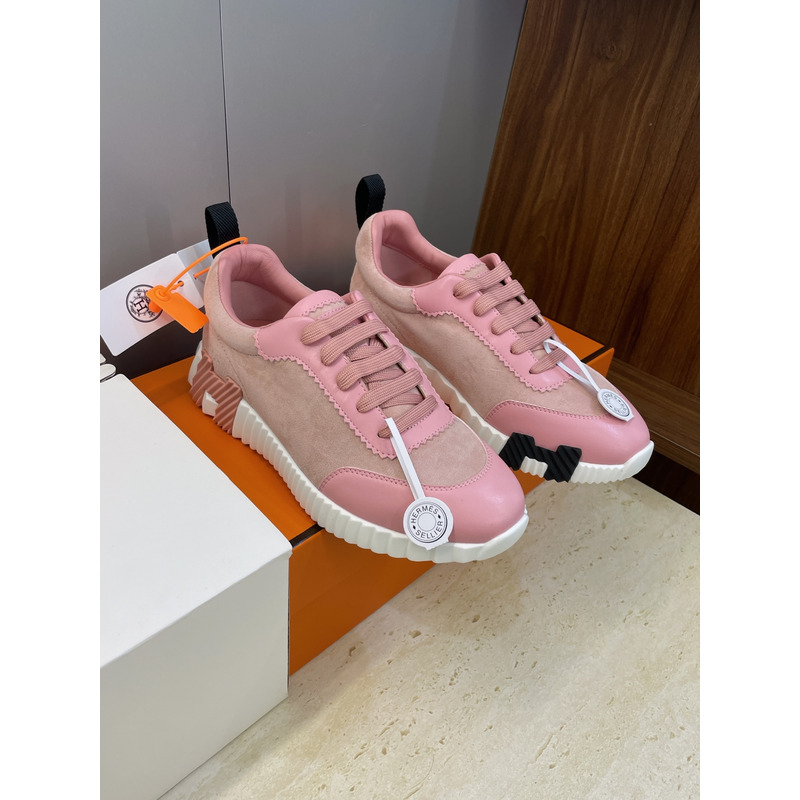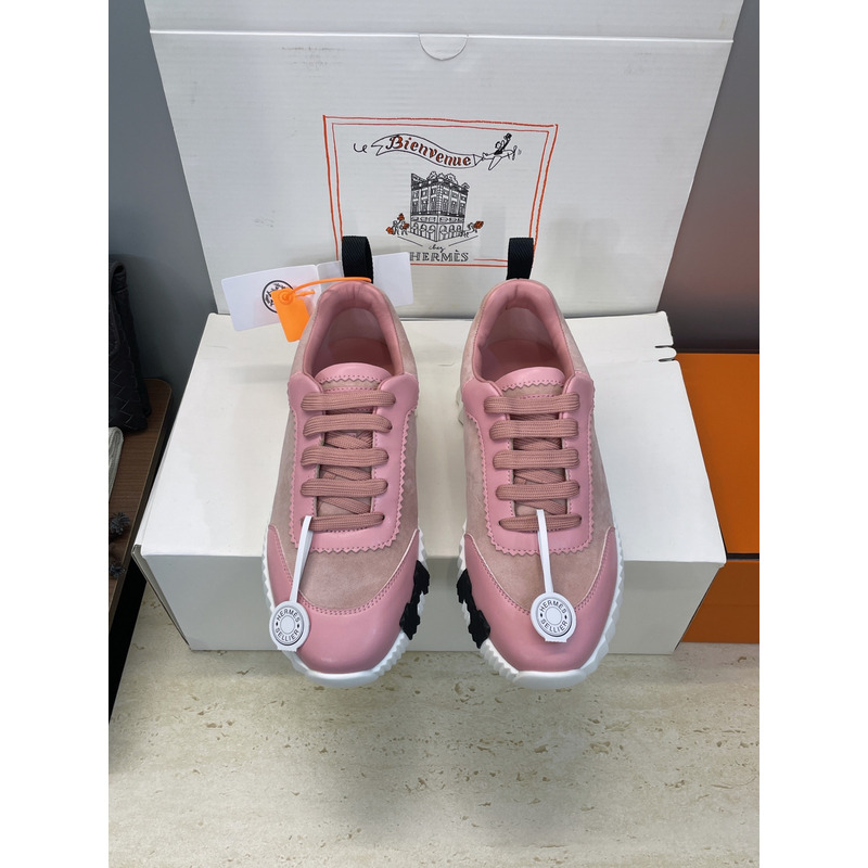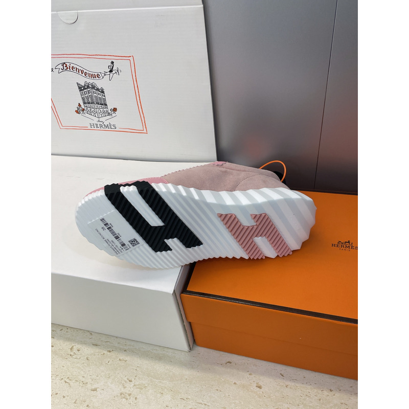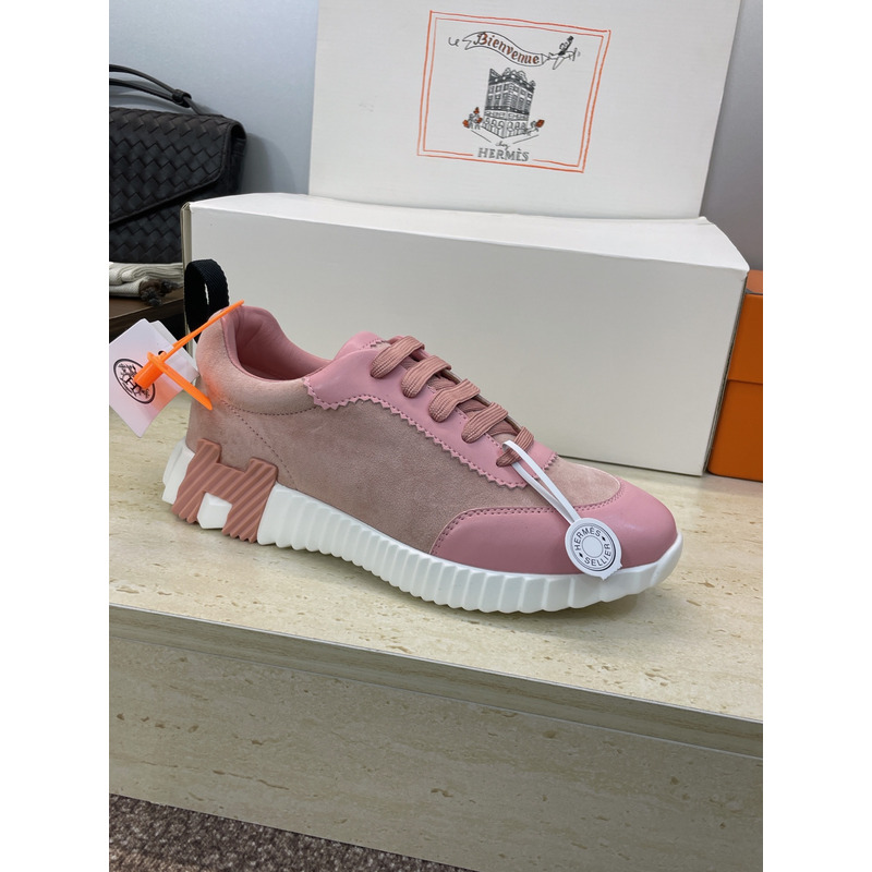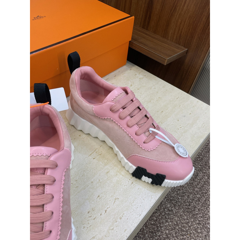 Hermes Bouncing Sneaker Pink Suede Goatskin Black Logo