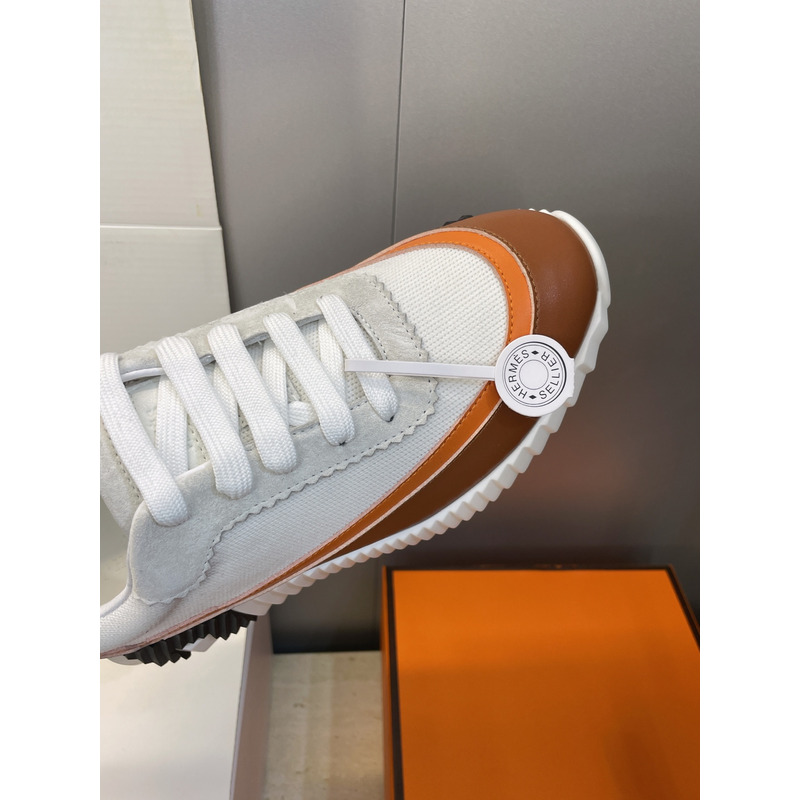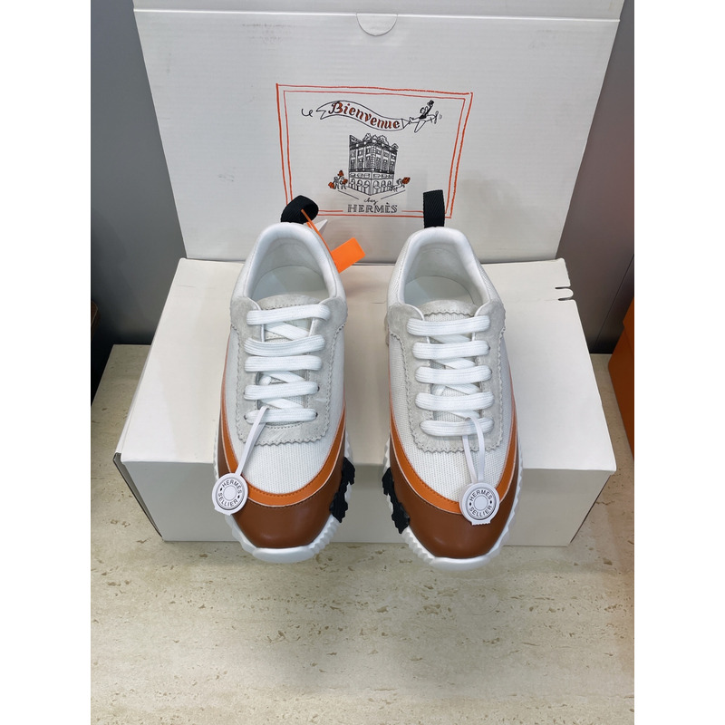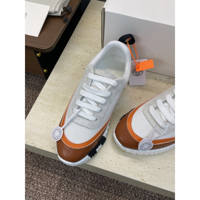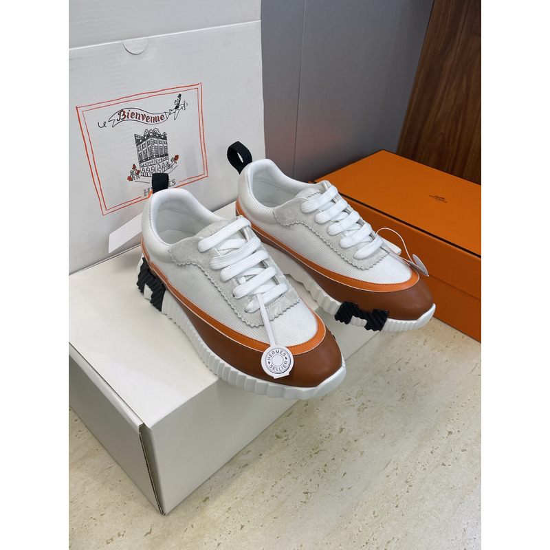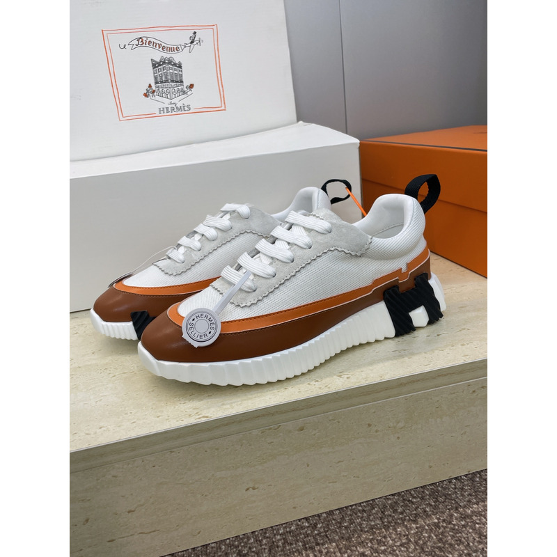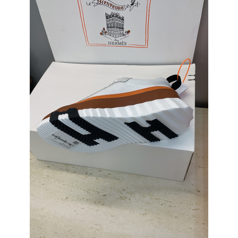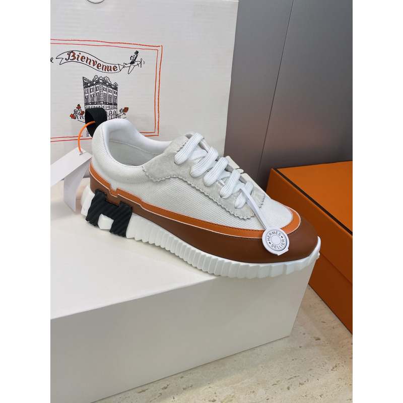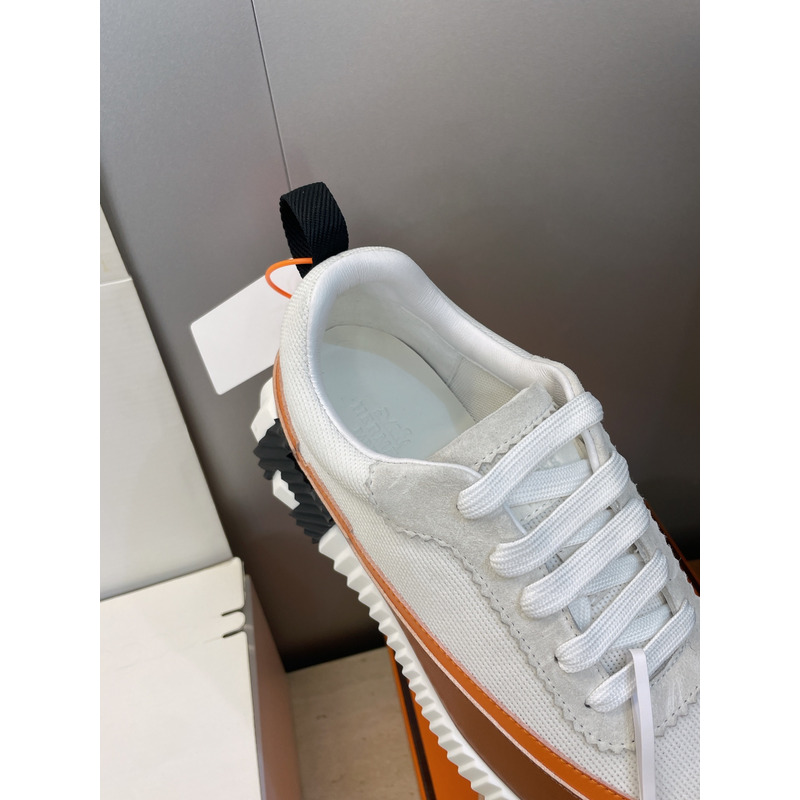 Hermes Bouncing Sneaker Suede Goatskin White And Brown