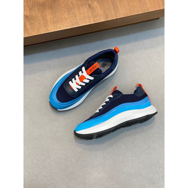 Hermes Gramme Sneaker In Technical Canvas And Calfskin Blue