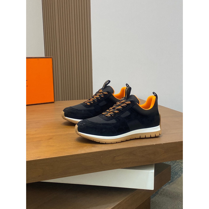 Hermes Jimmy Sneaker In Technical Canvas And Suede Goatskin Black