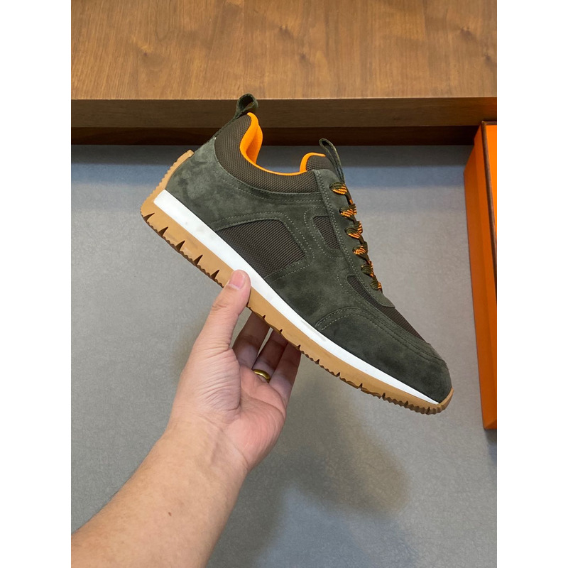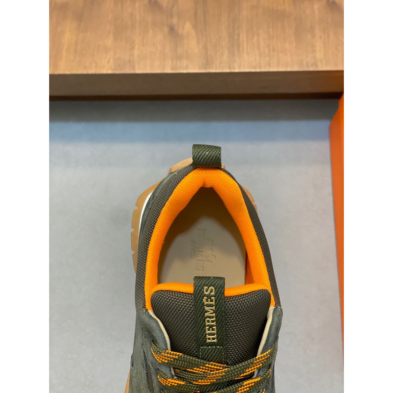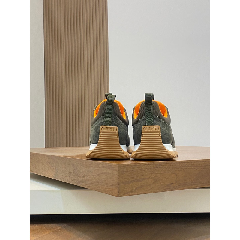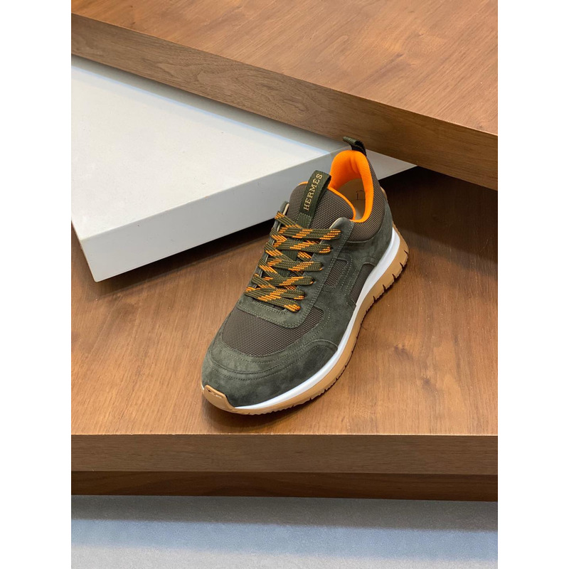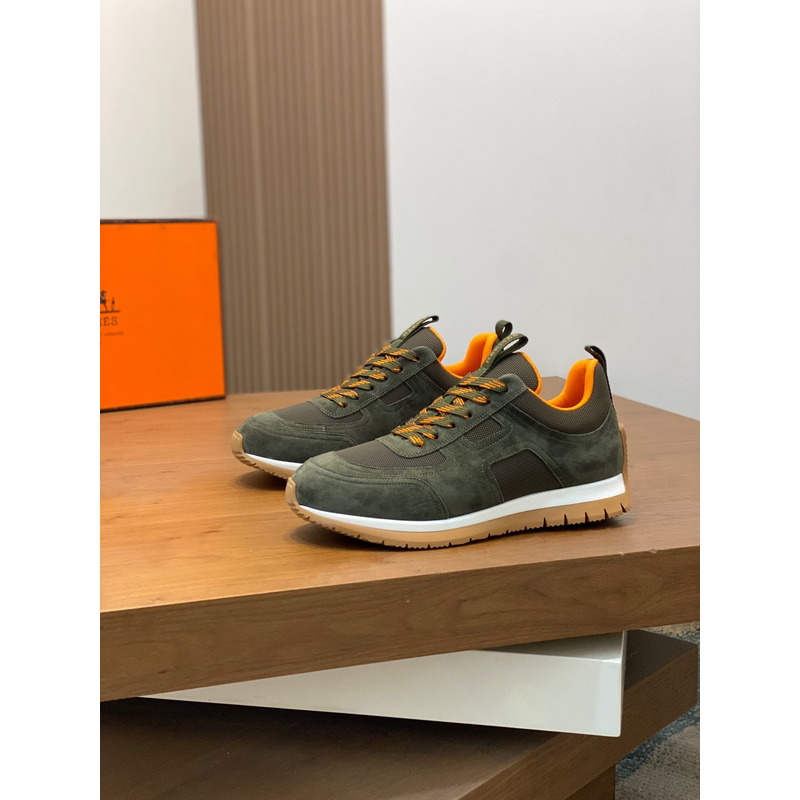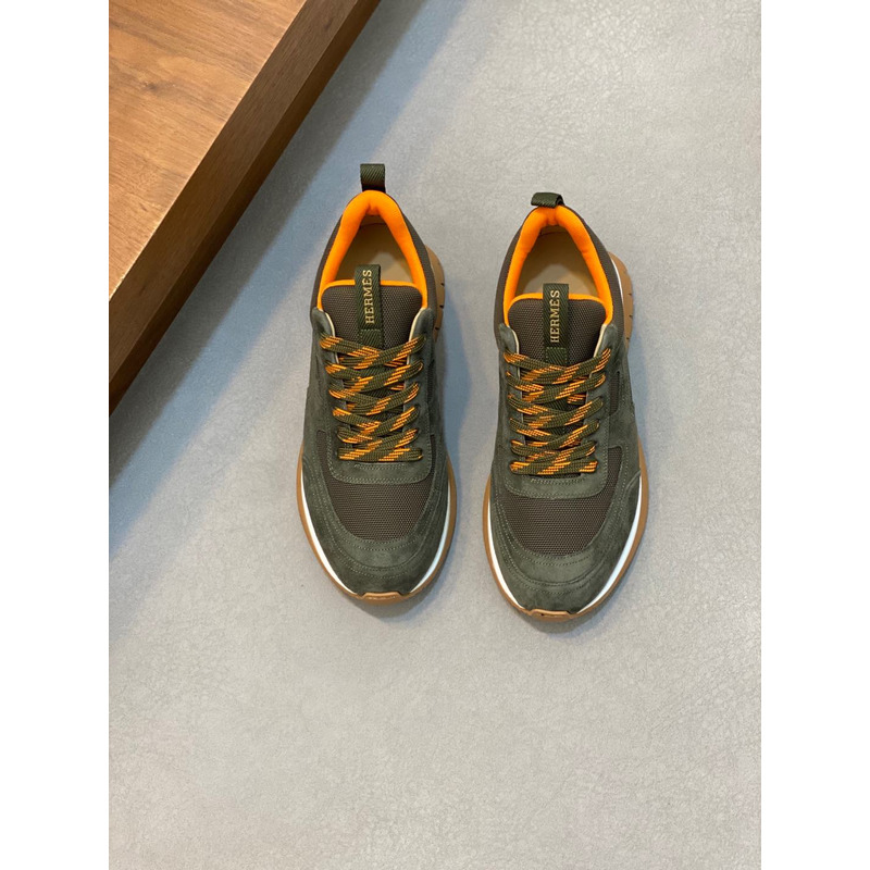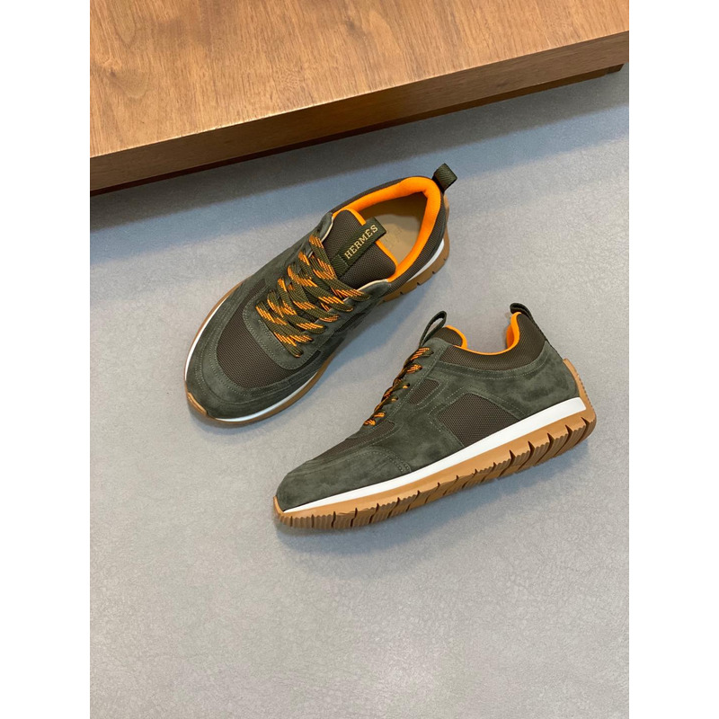 Hermes Jimmy Sneaker In Technical Canvas And Suede Goatskin Dark Green