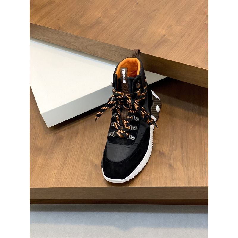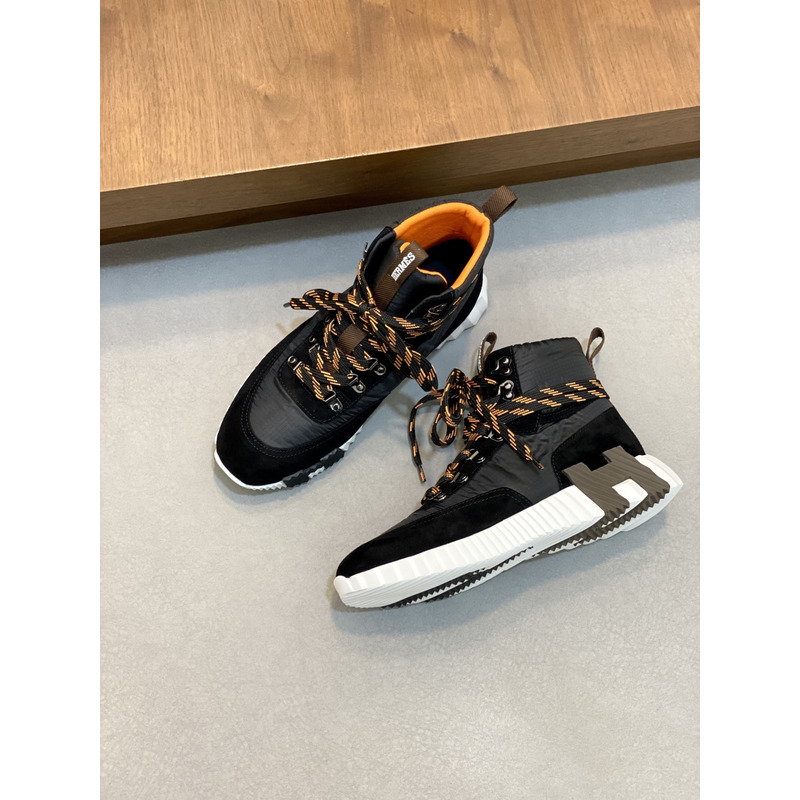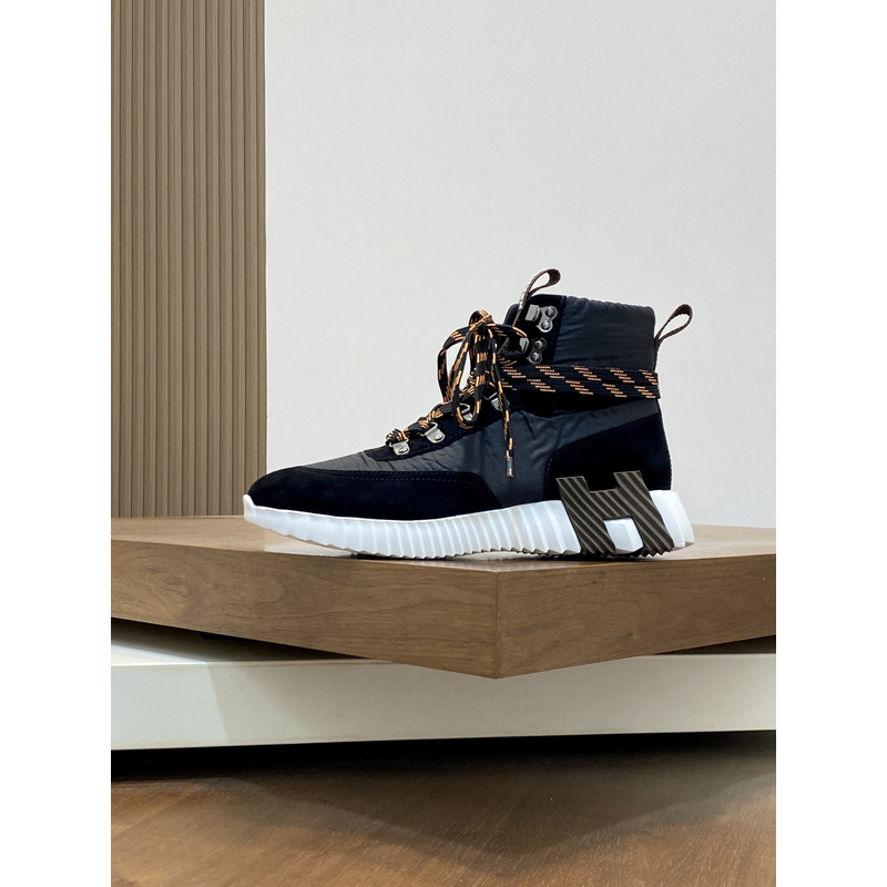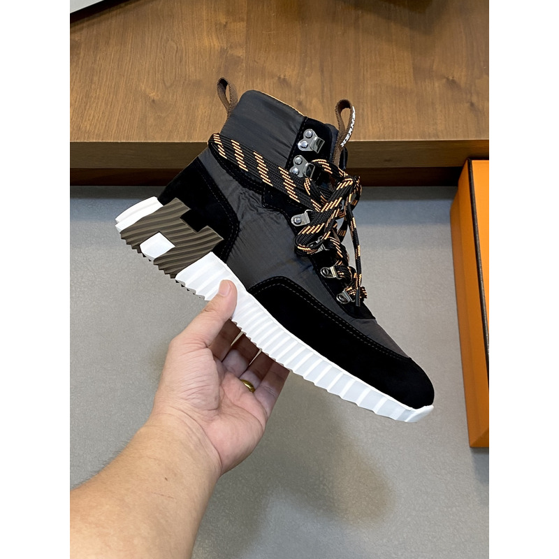 Hermes Klimb Sneaker Suede Goatskin And Ripstop Fabric Black And White