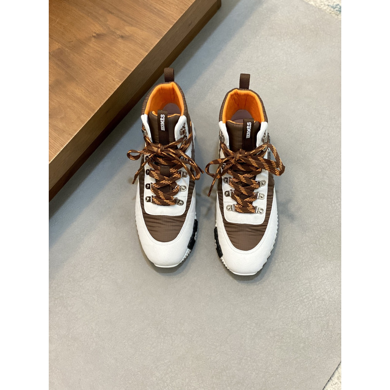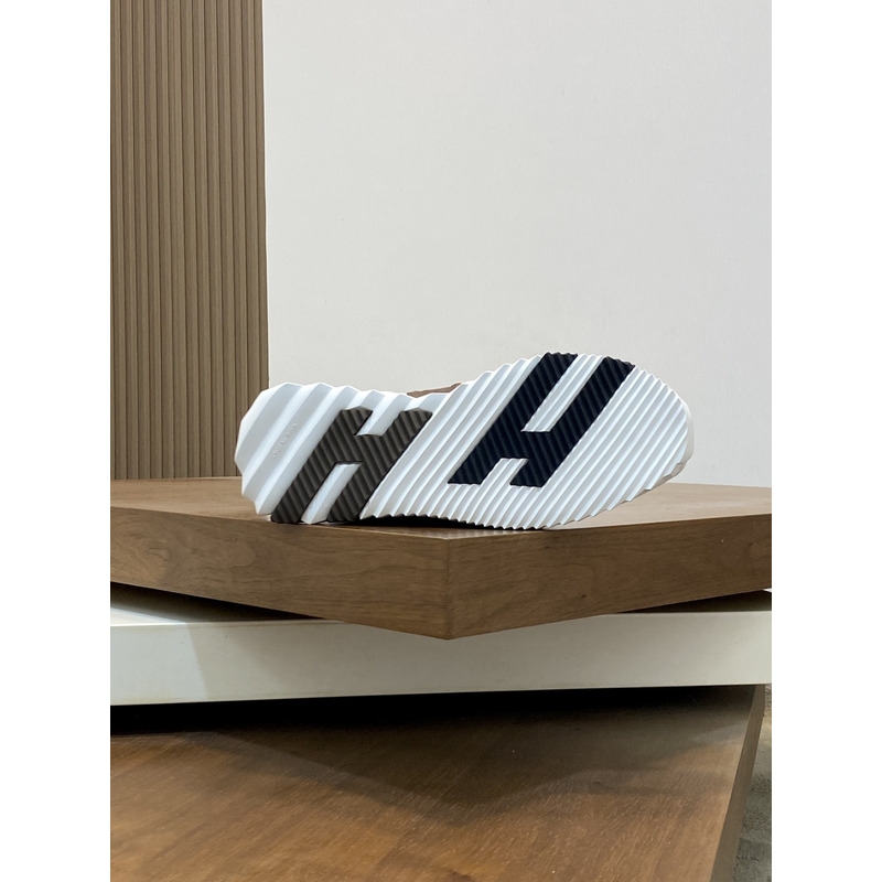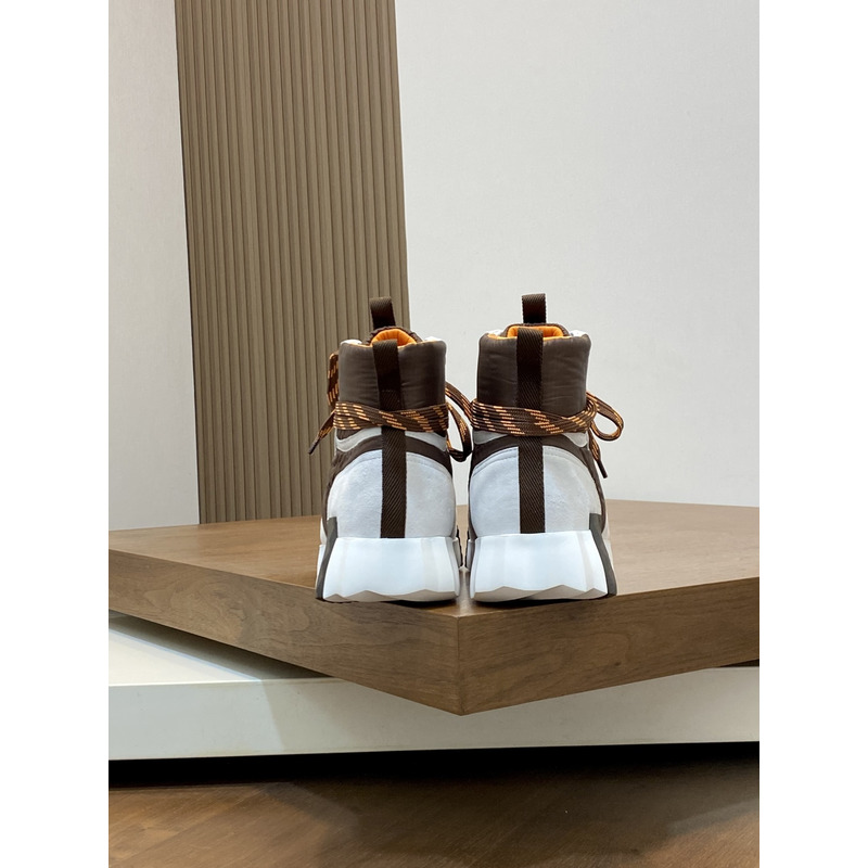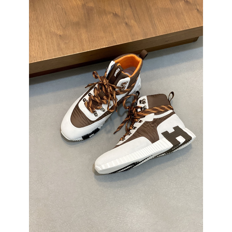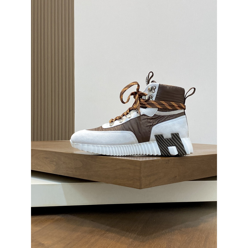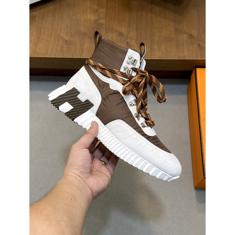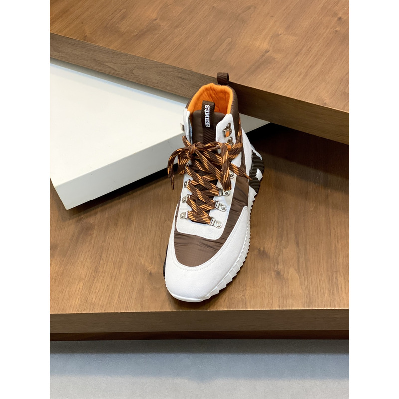 Hermes Klimb Sneaker White Suede Goatskin And Brown Ripstop Fabric