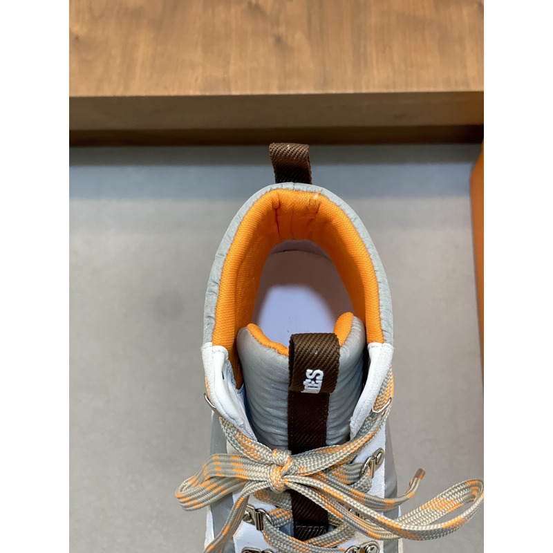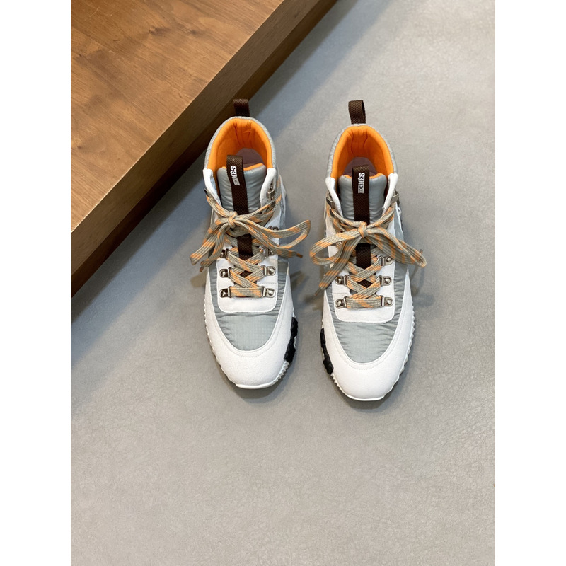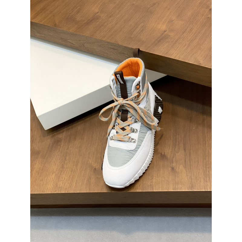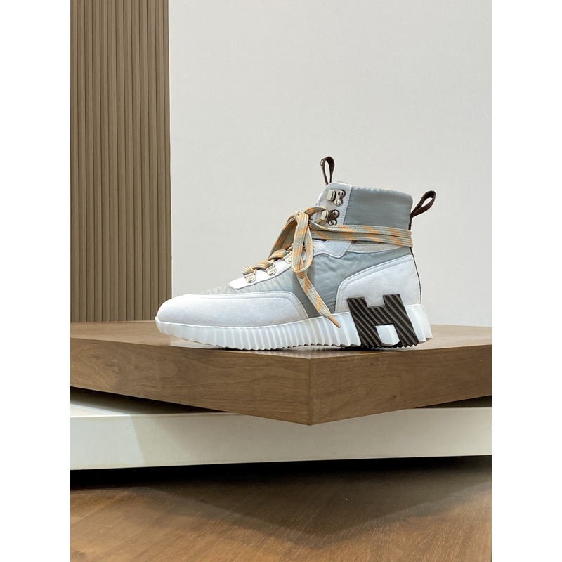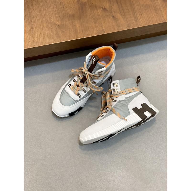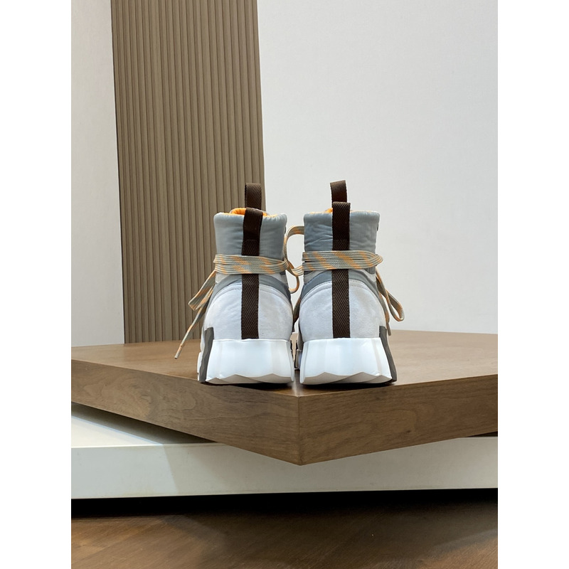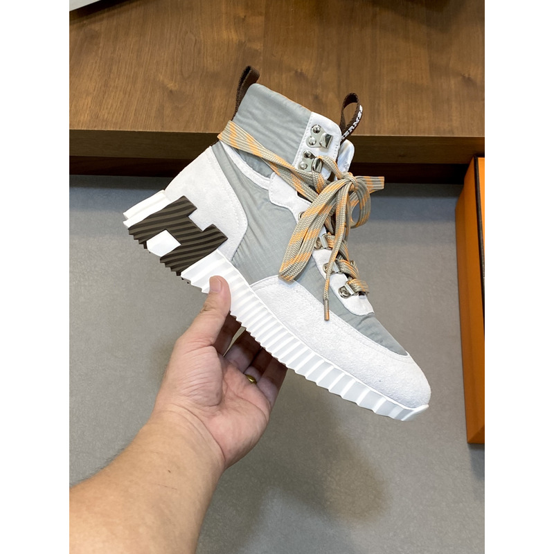 Hermes Klimb Sneaker White Suede Goatskin And Grey Ripstop Fabric