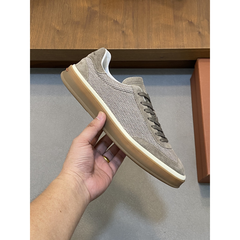 Loro Piana Tennis Walk Sneaker Suede Calf Split Light Grey