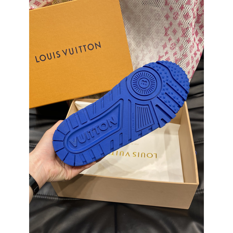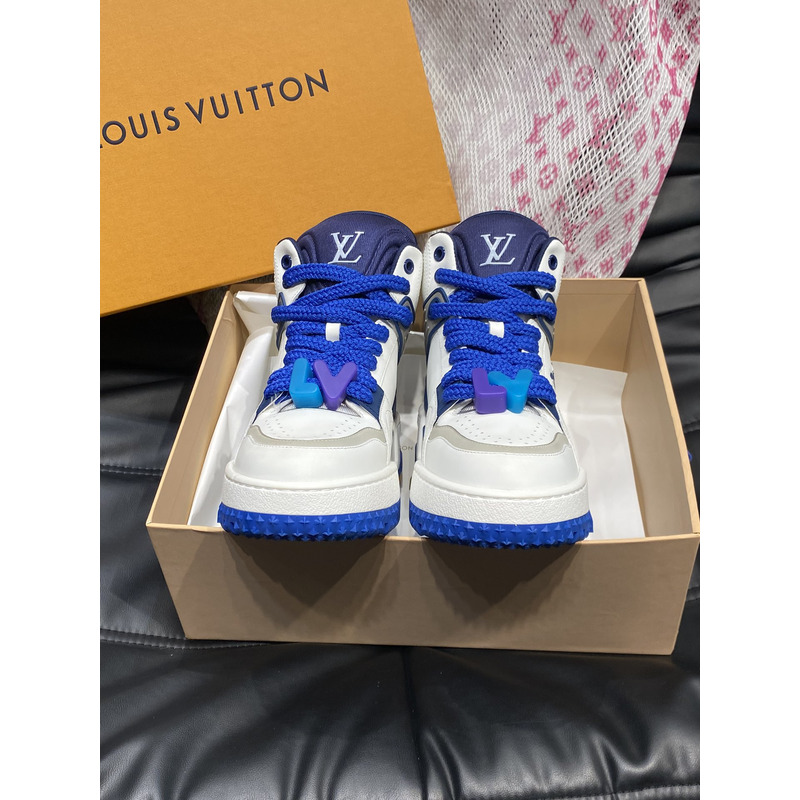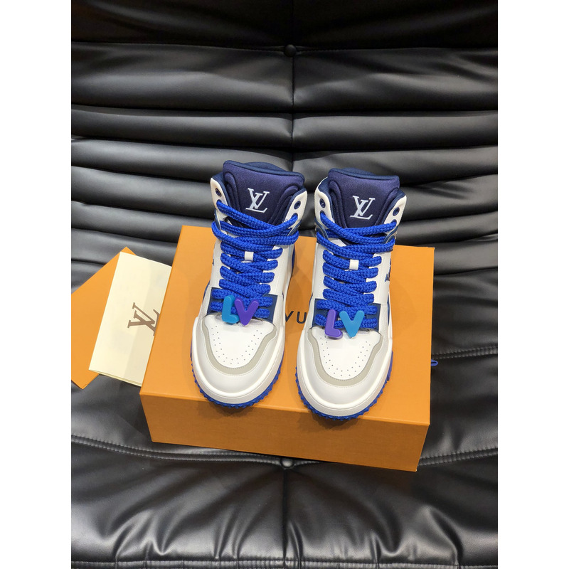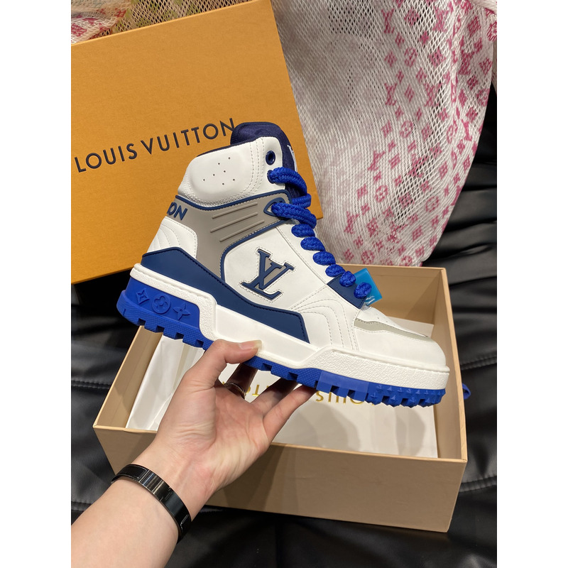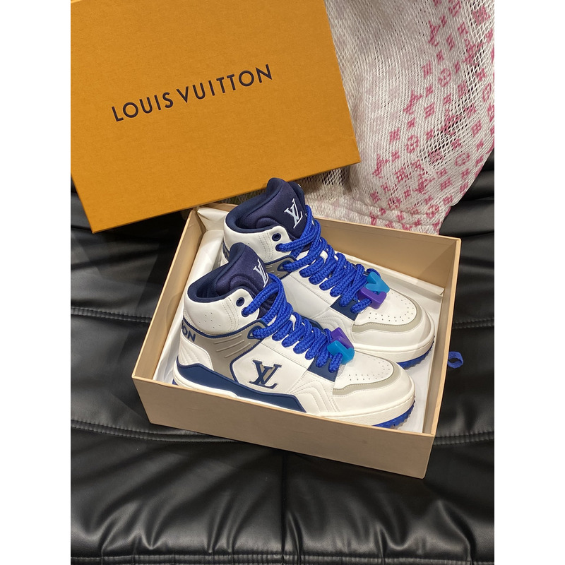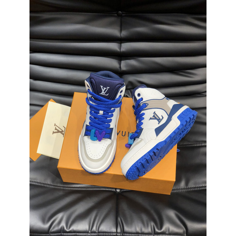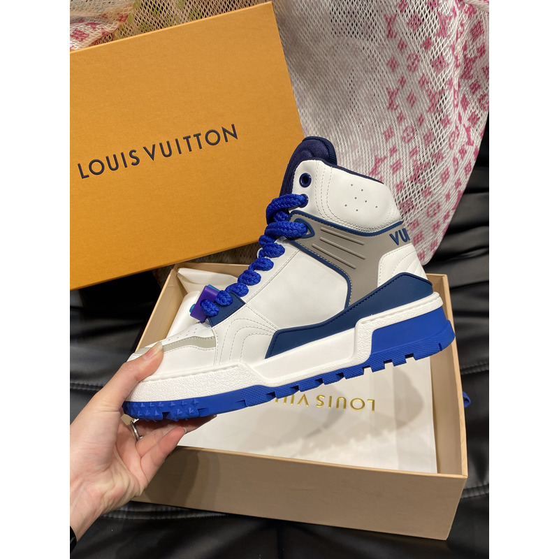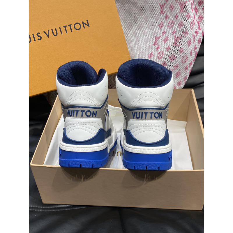 Louis Vuitton LV Trainer Mid Sneakers In White And Blue Leather