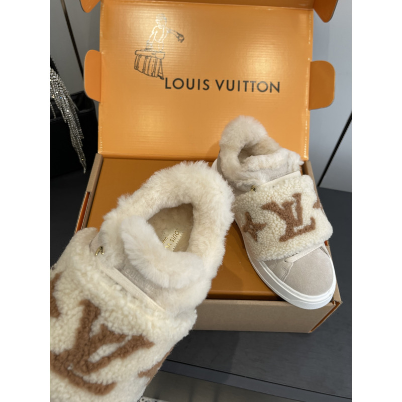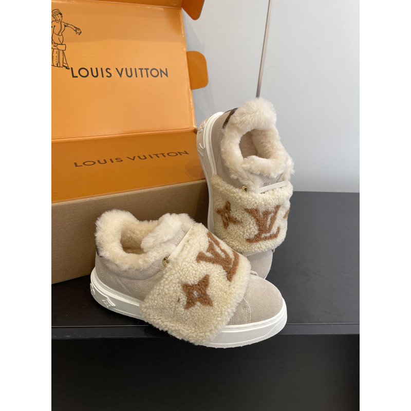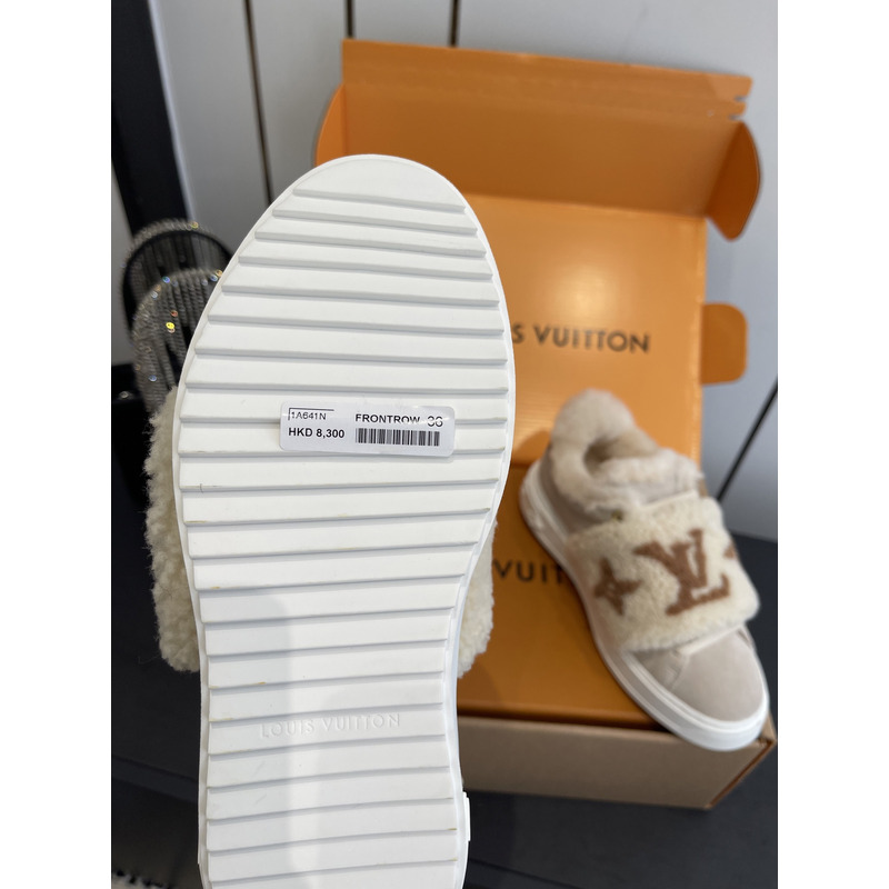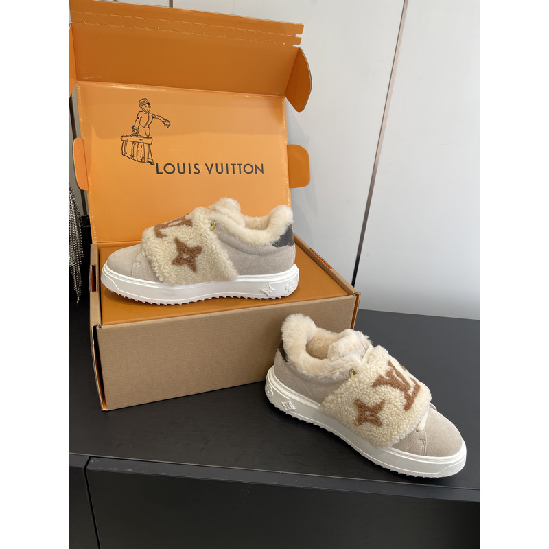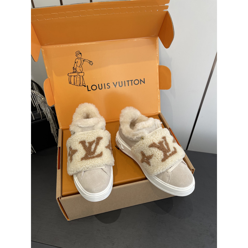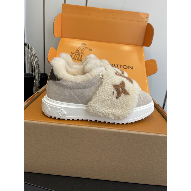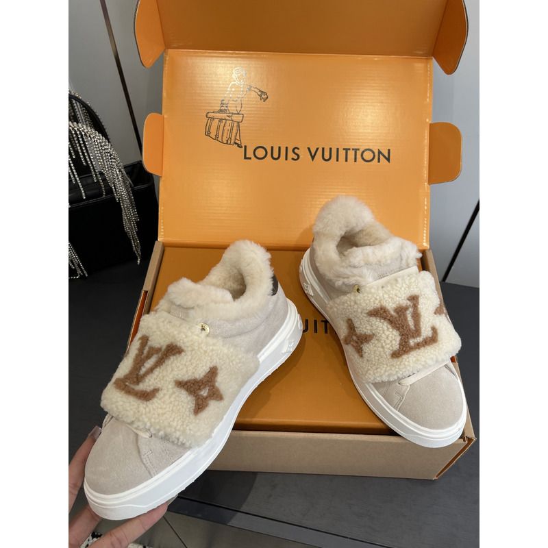 Louis Vuitton Shearling Trimmed Sneakers In Beige