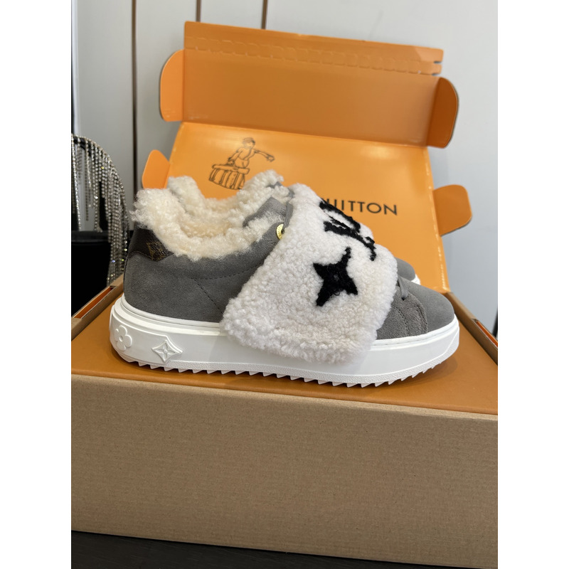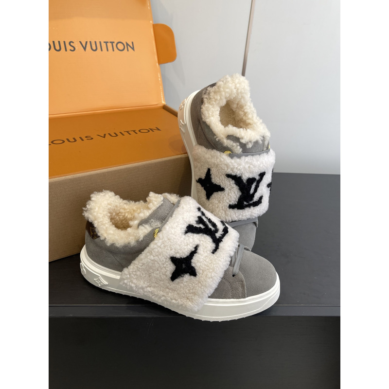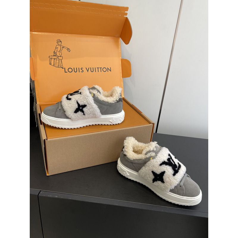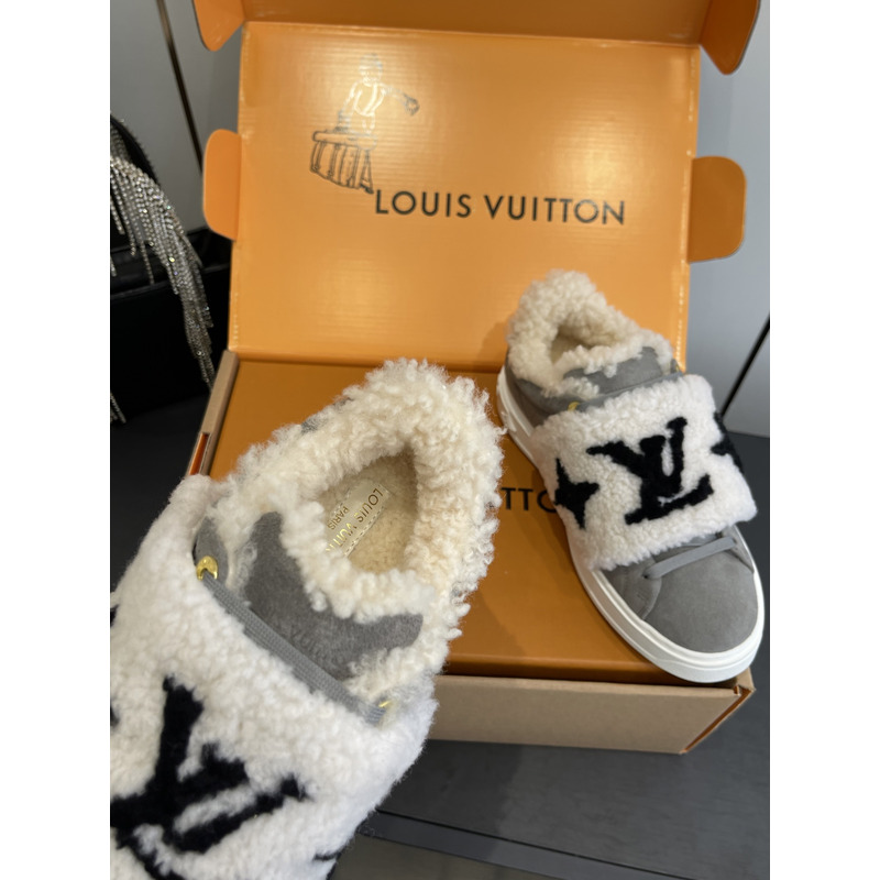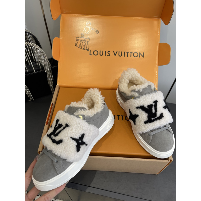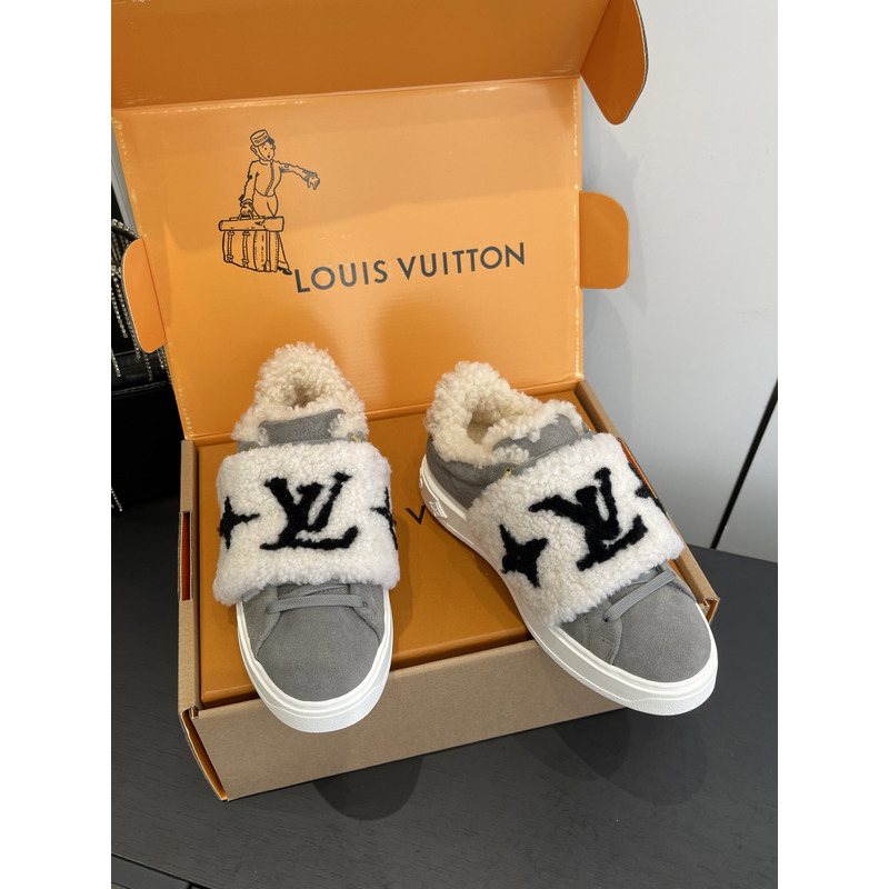 Louis Vuitton Shearling Trimmed Sneakers In Grey