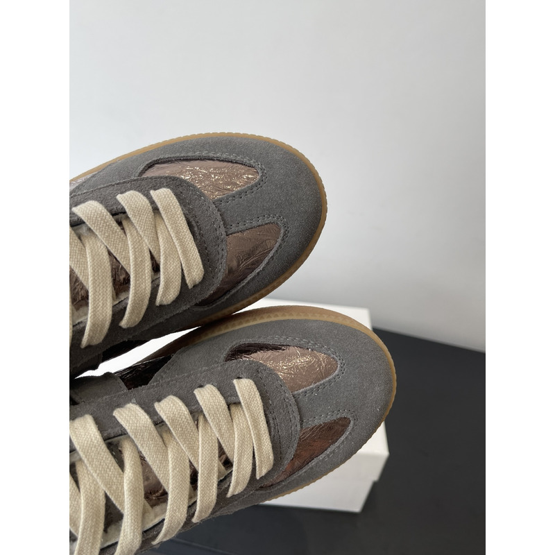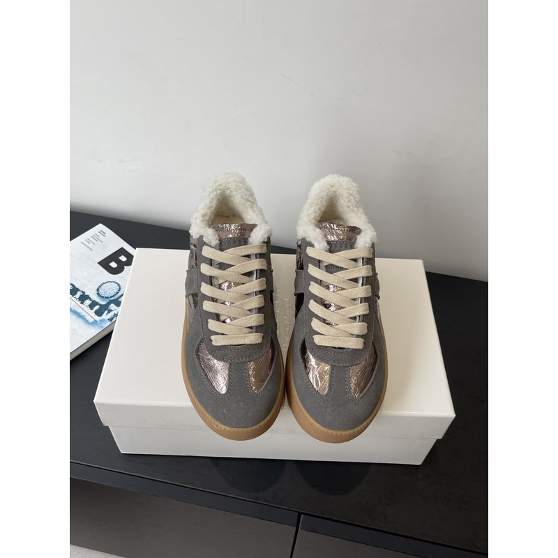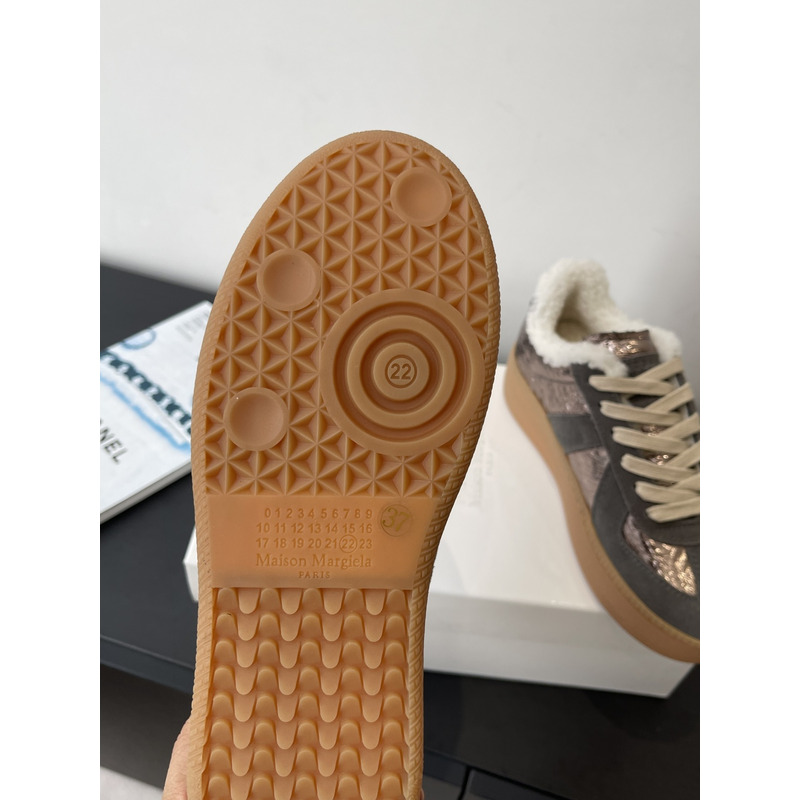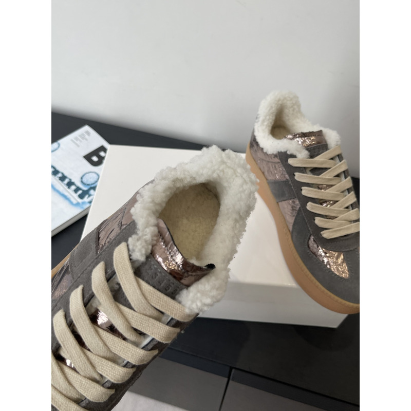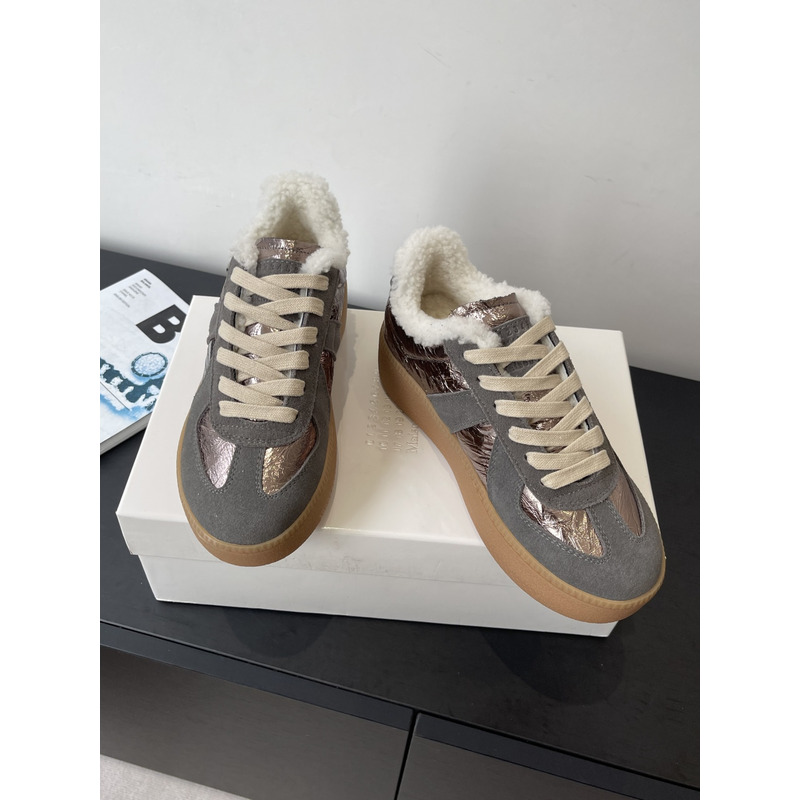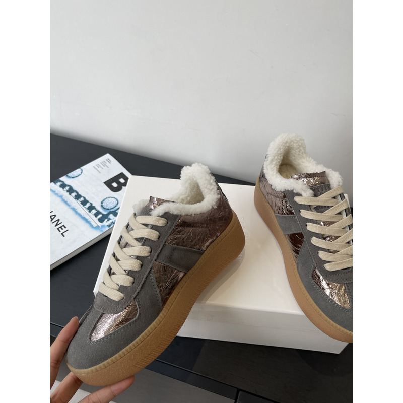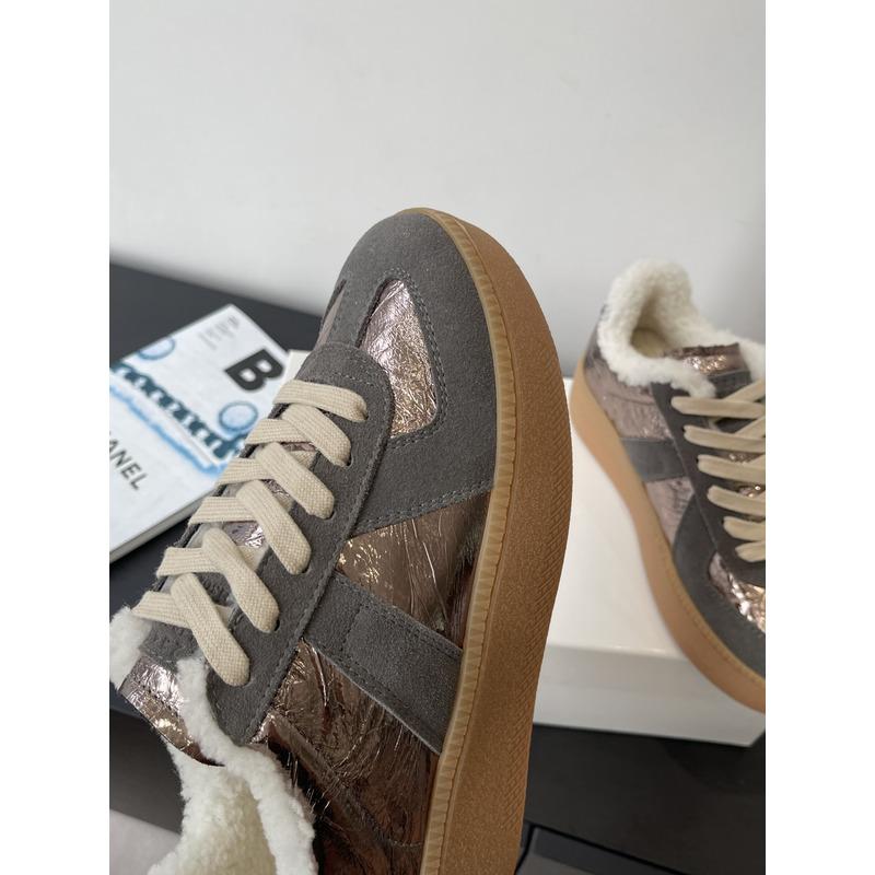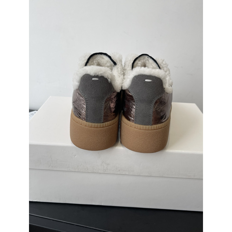 Maison Margiela Metallic Leather & Suede Shearling-Lined Platform Sneakers In Bronze/Grey