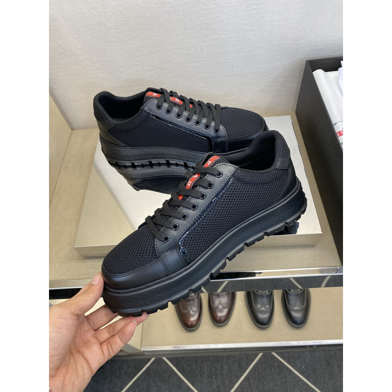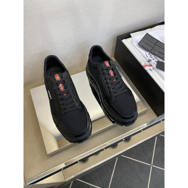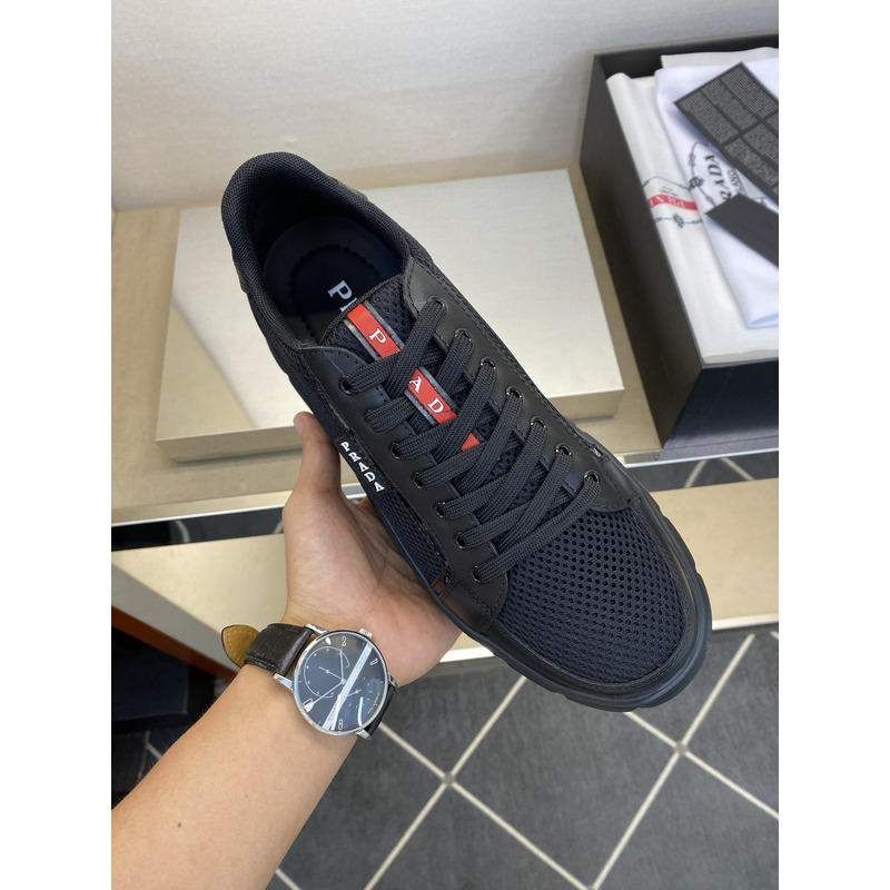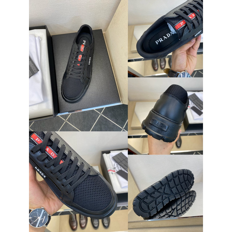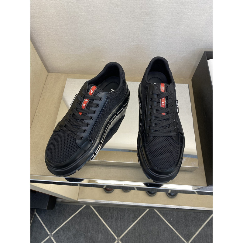 Prada America\'s Cup Mesh Sneakers in Black with Red Accent