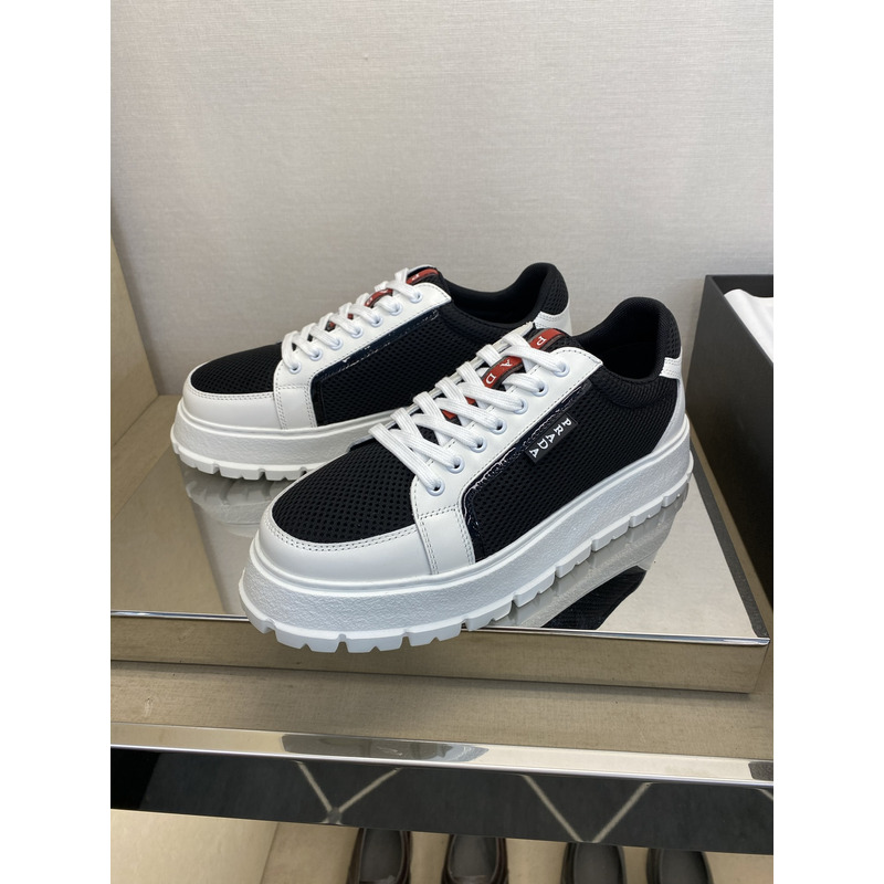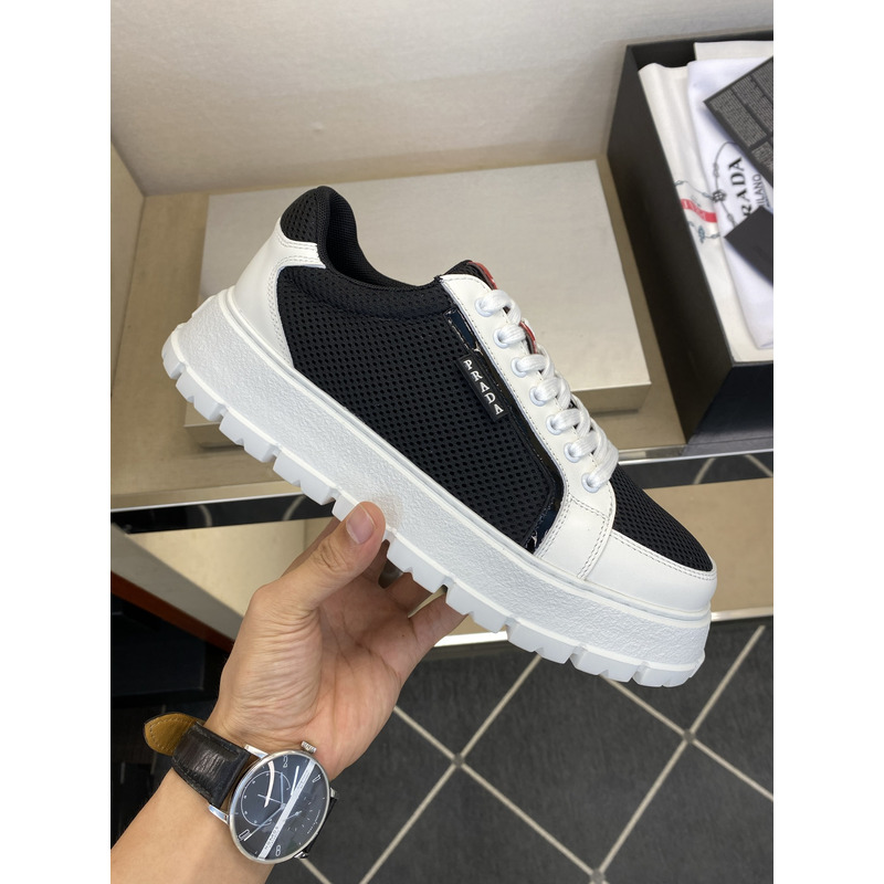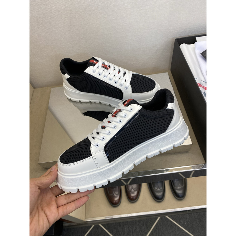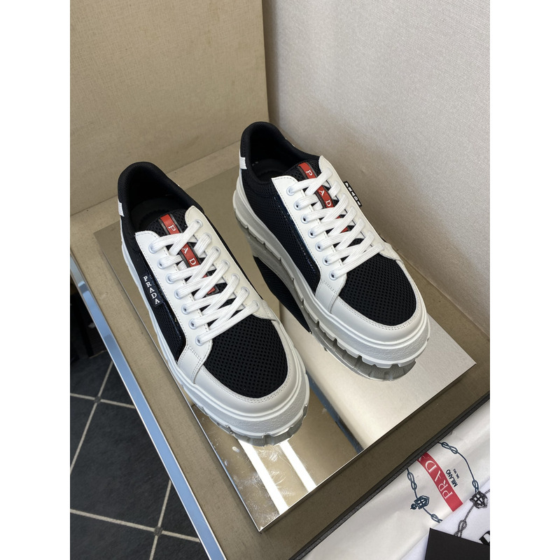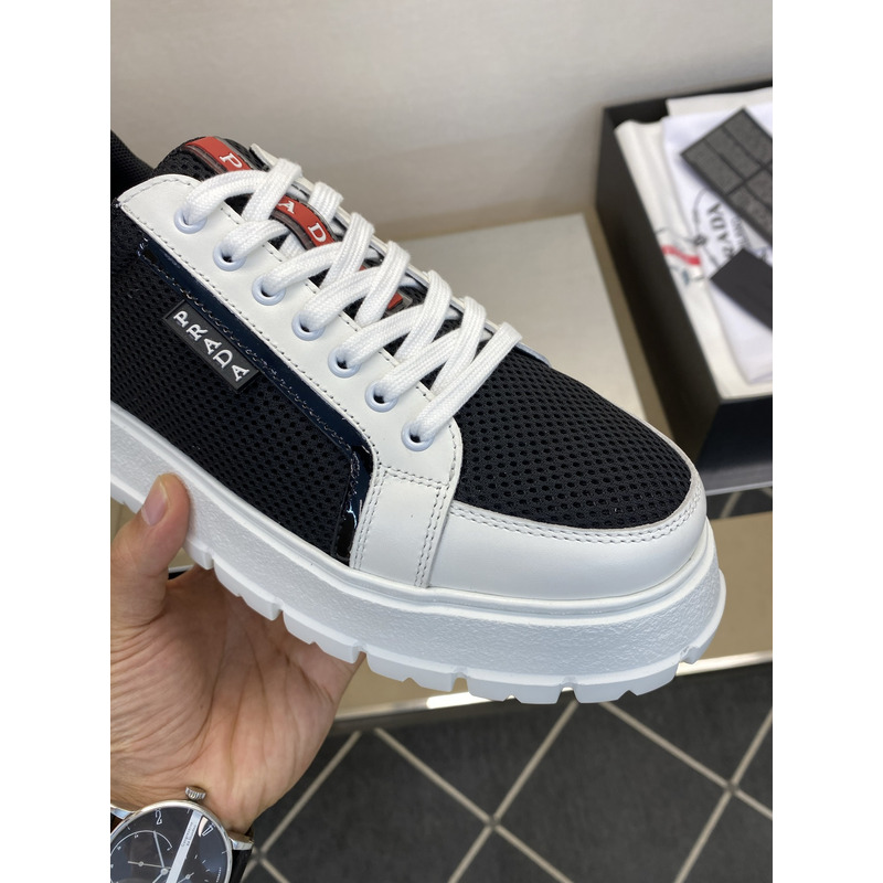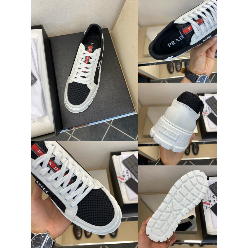 Prada America\'s Cup Mesh Sneakers In Black/White with Red Accents
