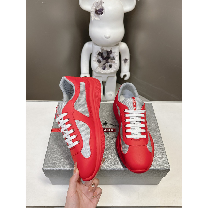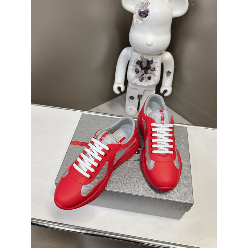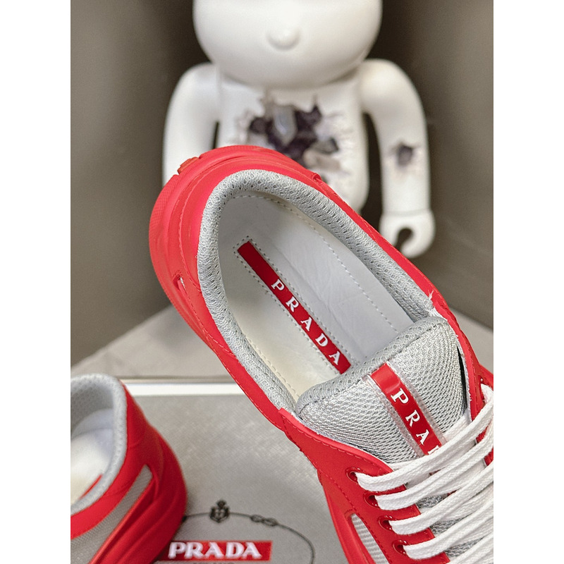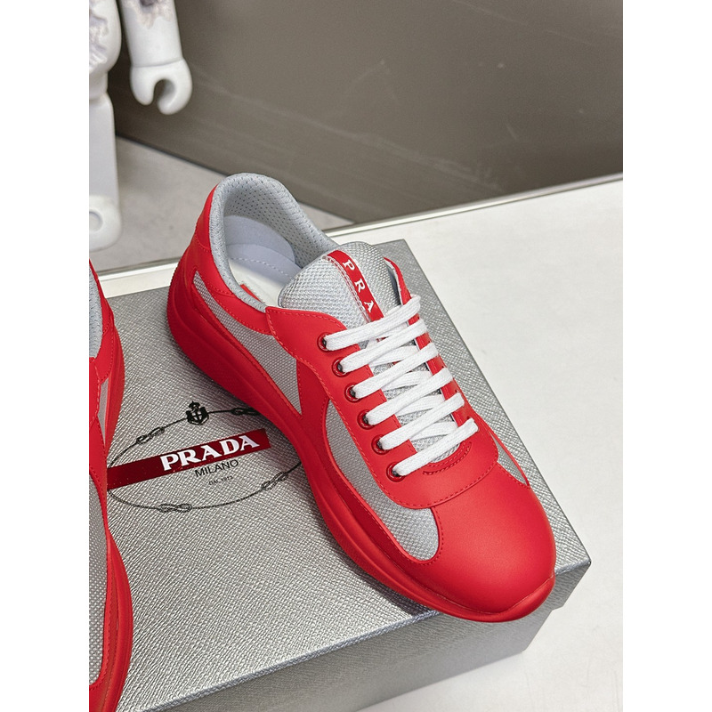 Prada Prada America\'s Cup Soft Rubber And Bike Fabric Sneakers In Red