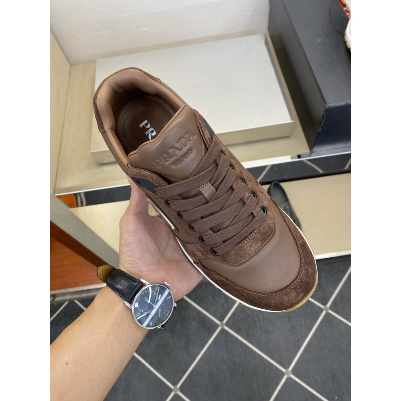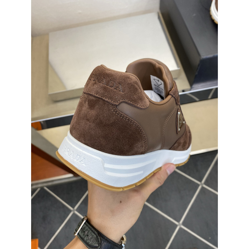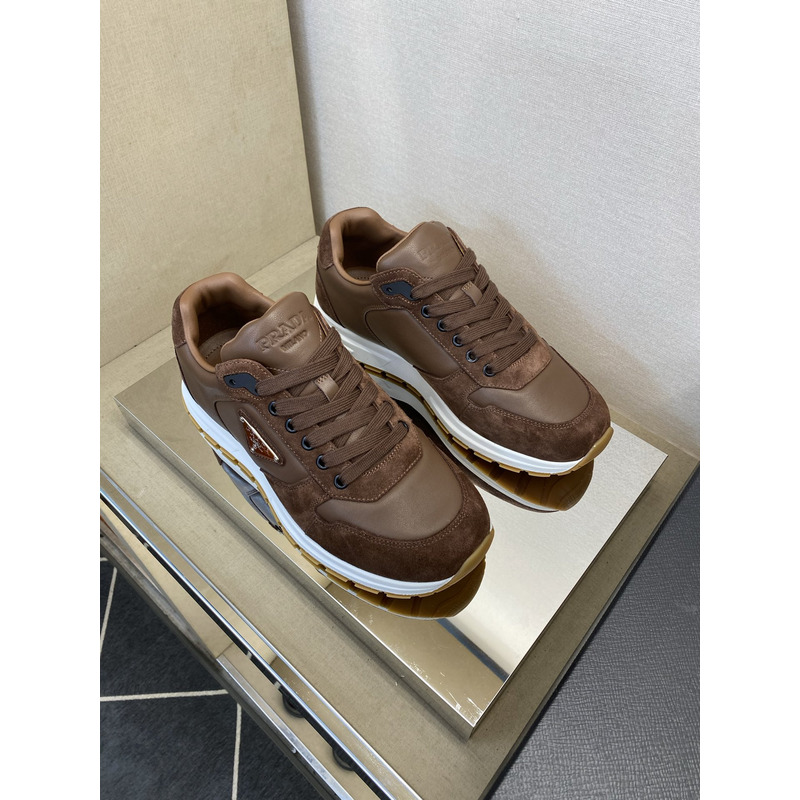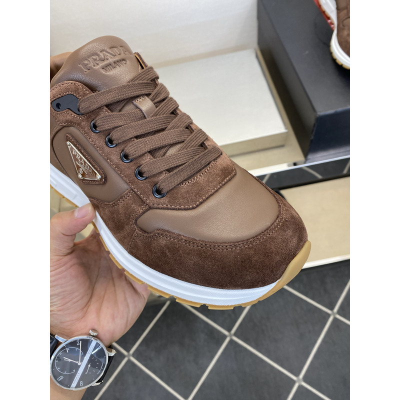 Prada PRAX 01 Re-Nylon & Suede Sneaker In Dark Brown