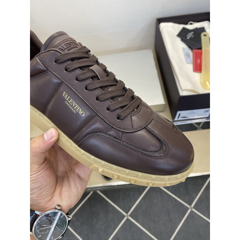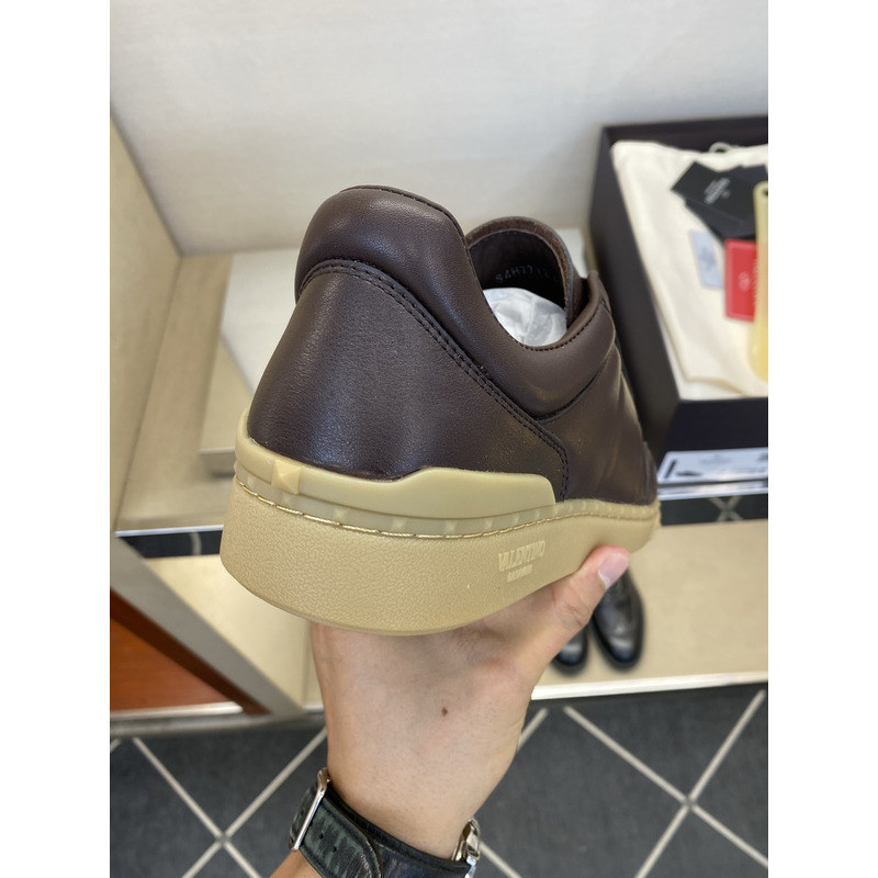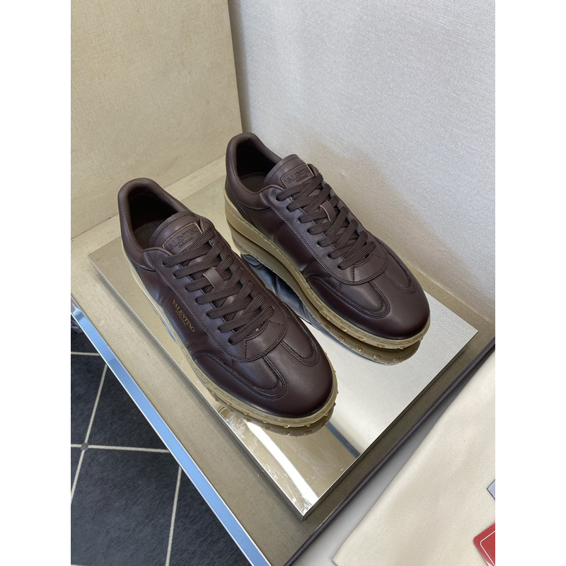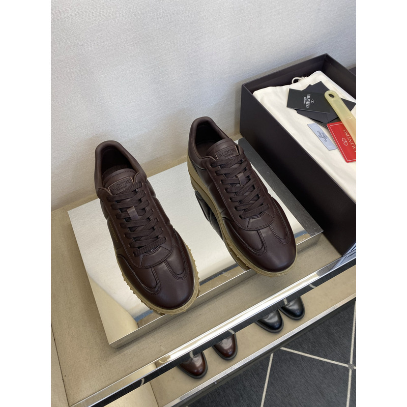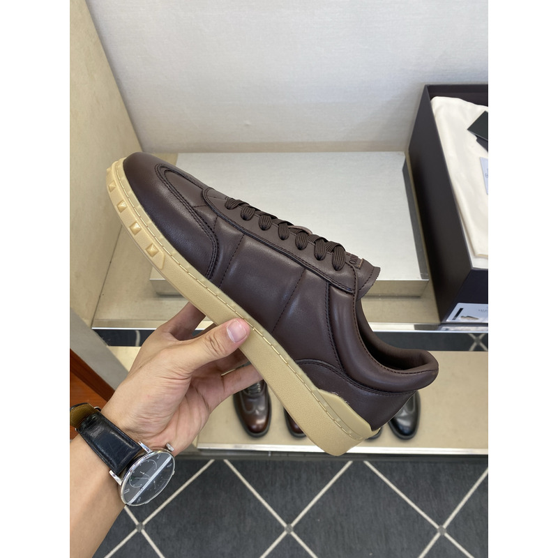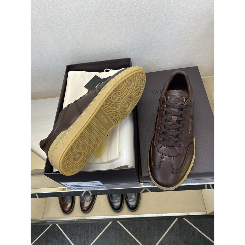Valentino Open Skate Sneakers In Chocolate Brown Leather