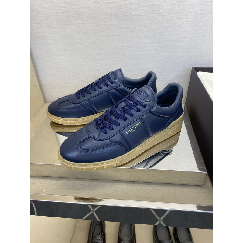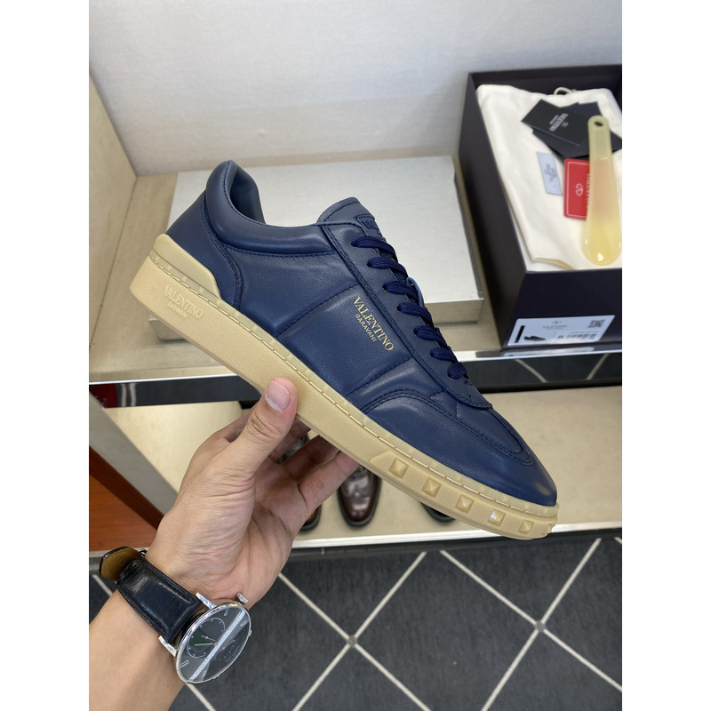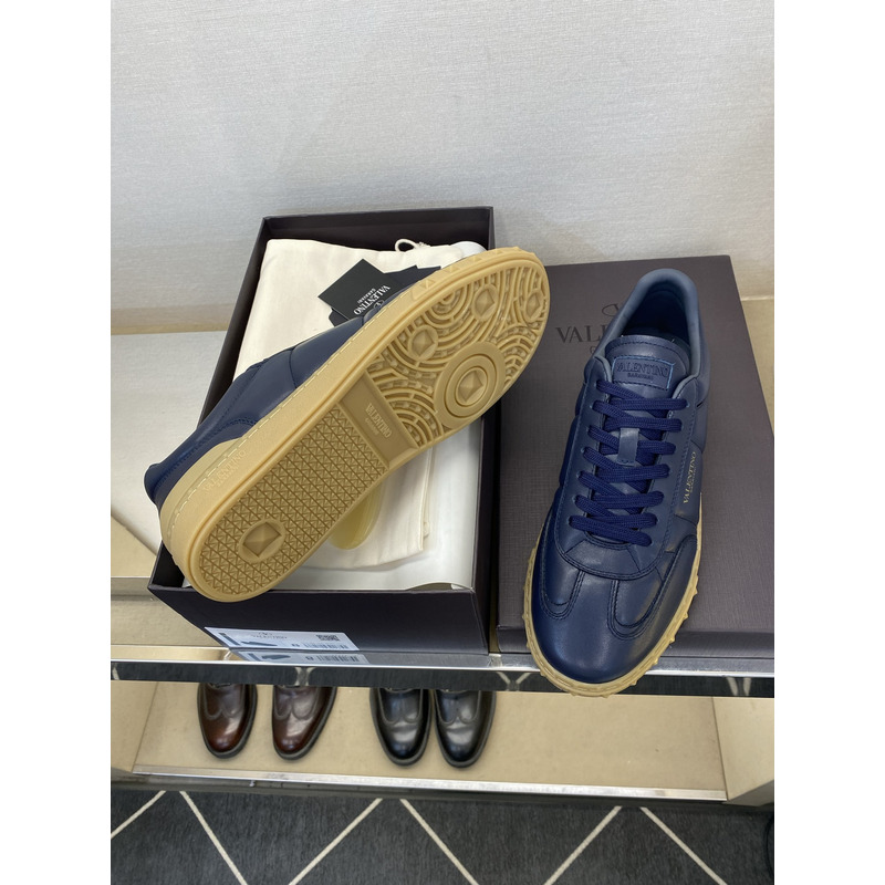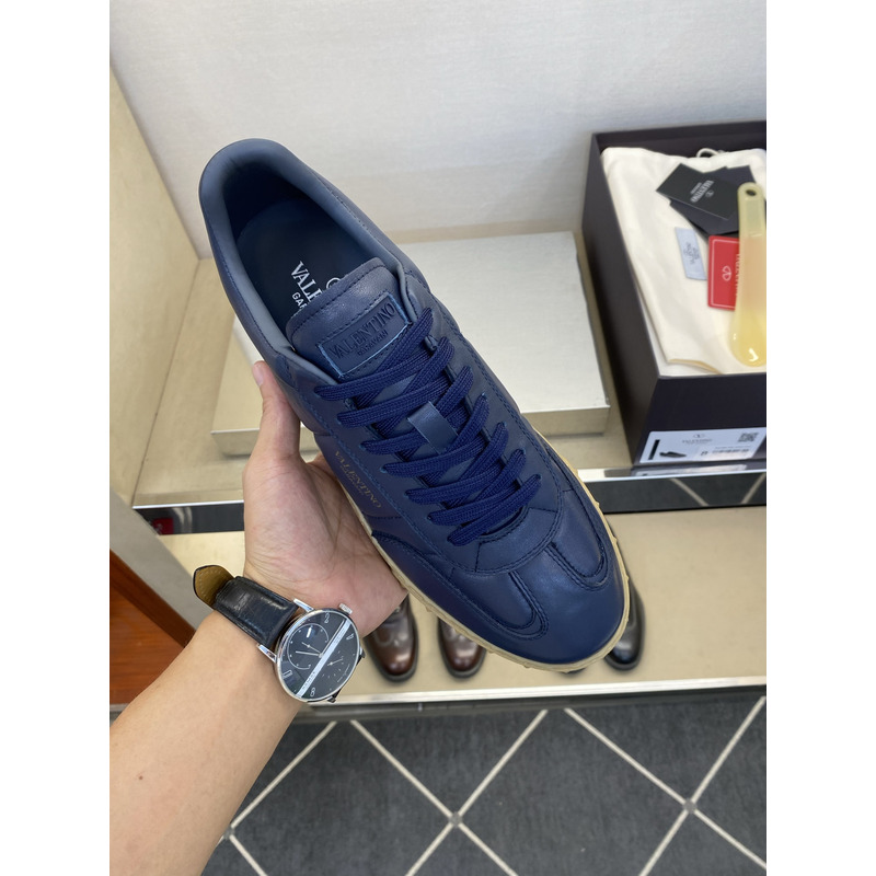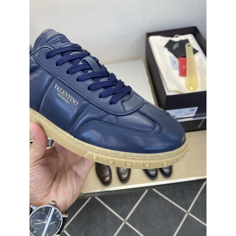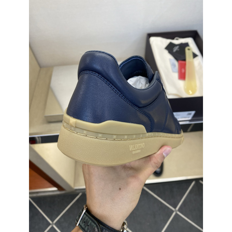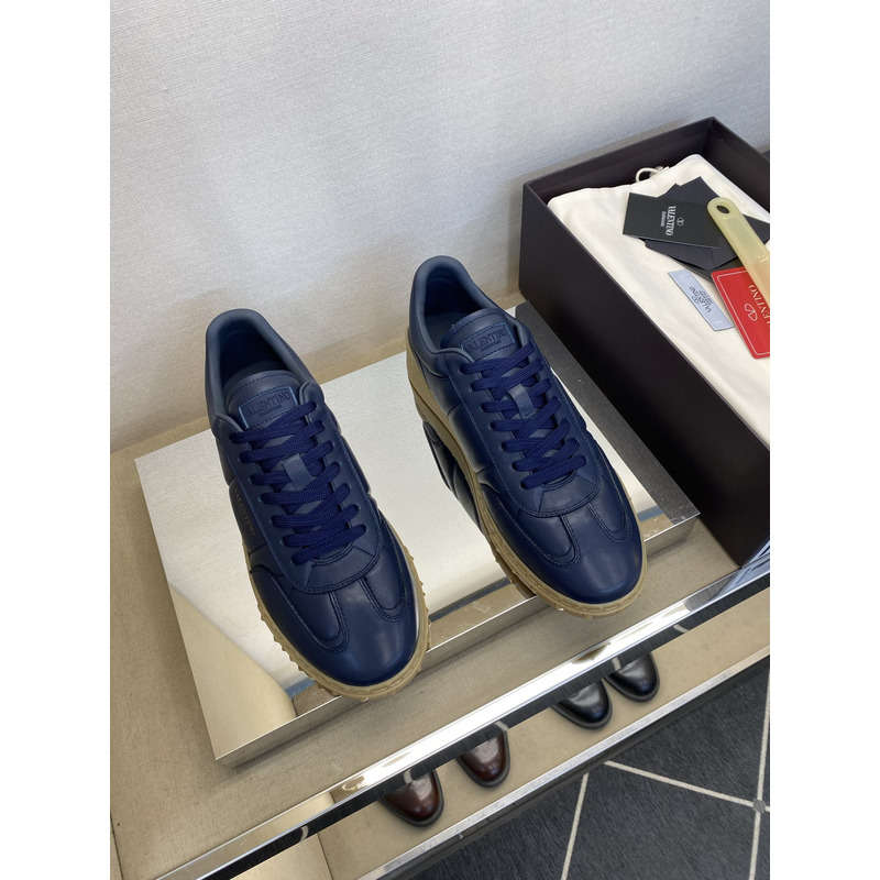 Valentino Open Skate Sneakers In Navy Blue Leather