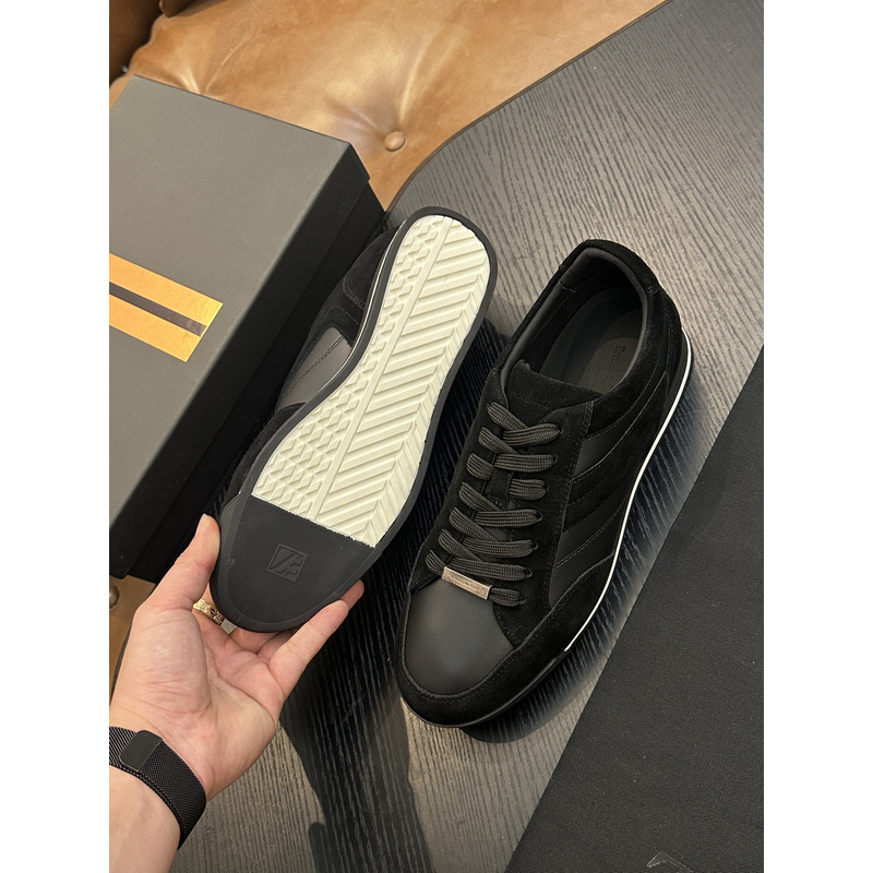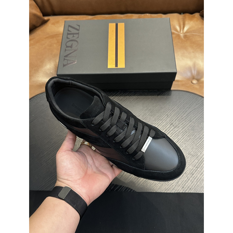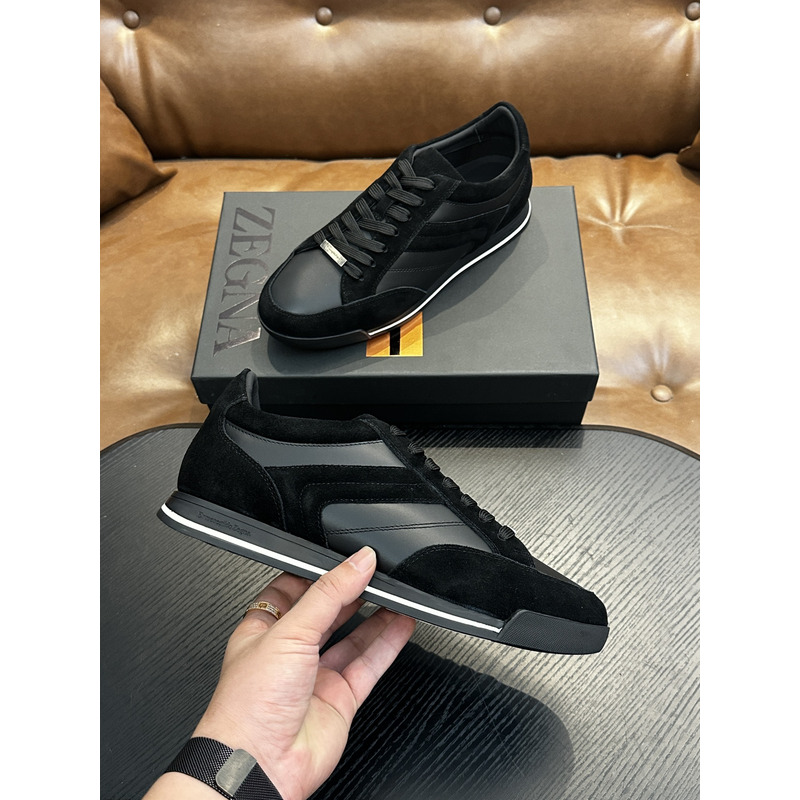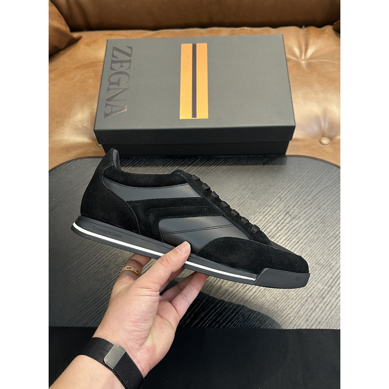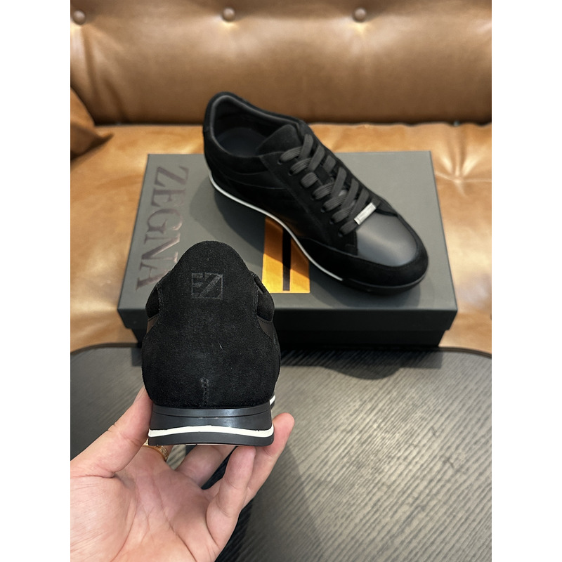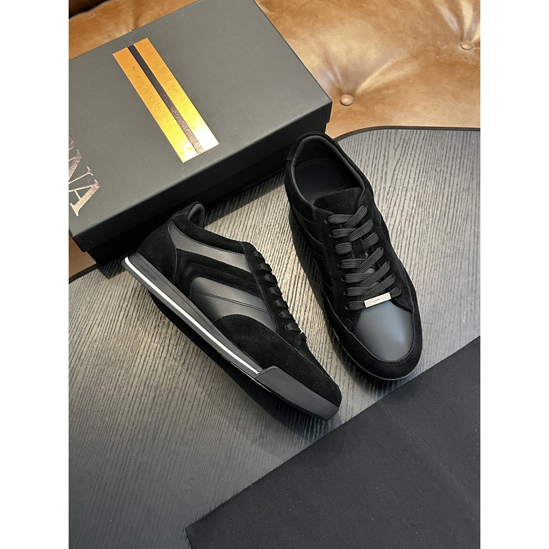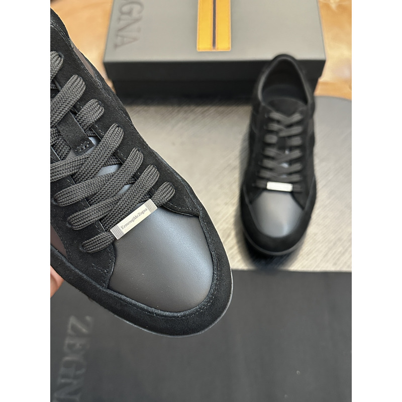 Zegna Black Suede And White Leather Low-Top Sneakers